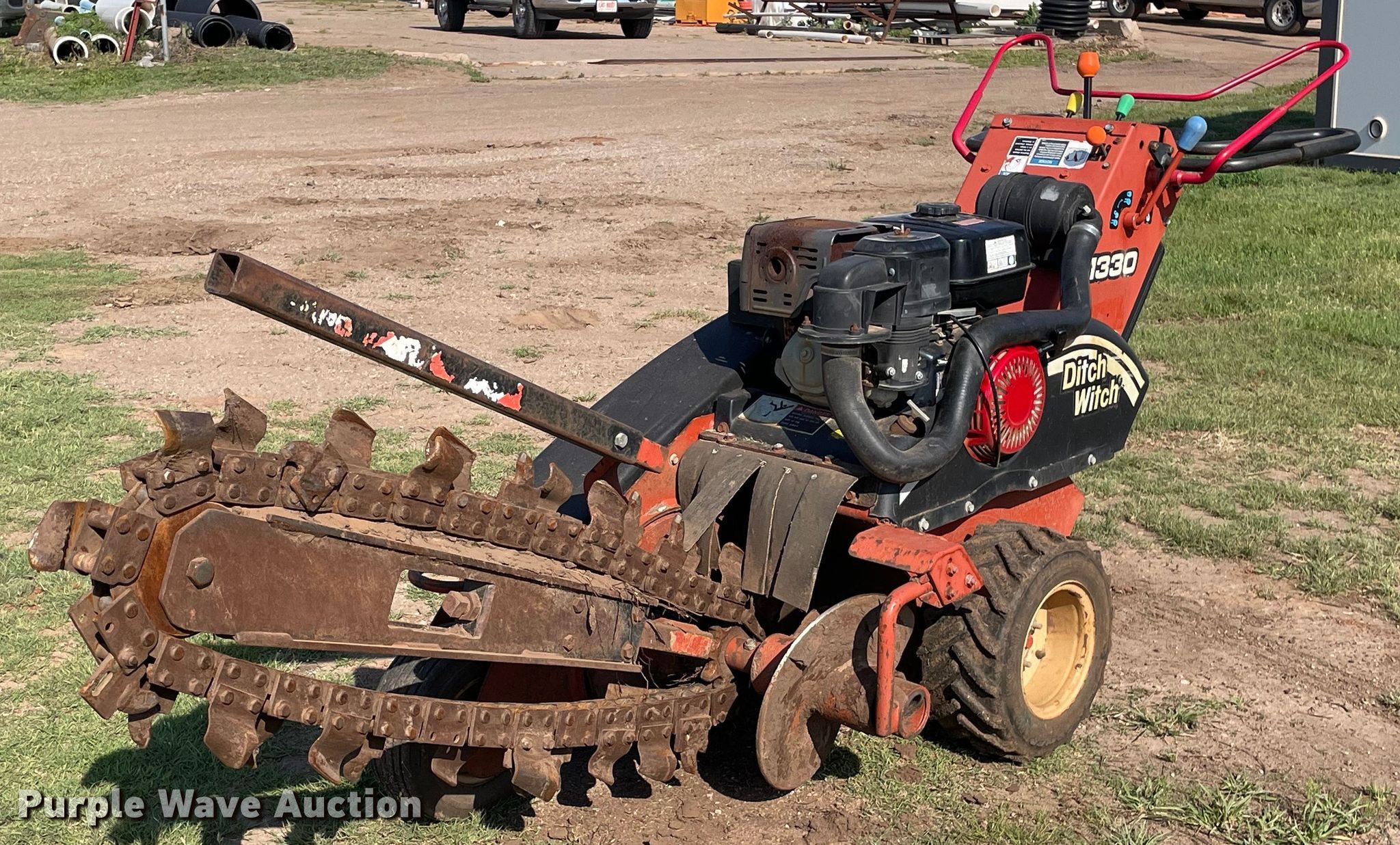 Purple Wave is selling a used Trencher or Rock Saw in Kansas. This item is a 2008 Ditch Witch 1330 trencher with the following: Serial: CMW1330HA80001522
