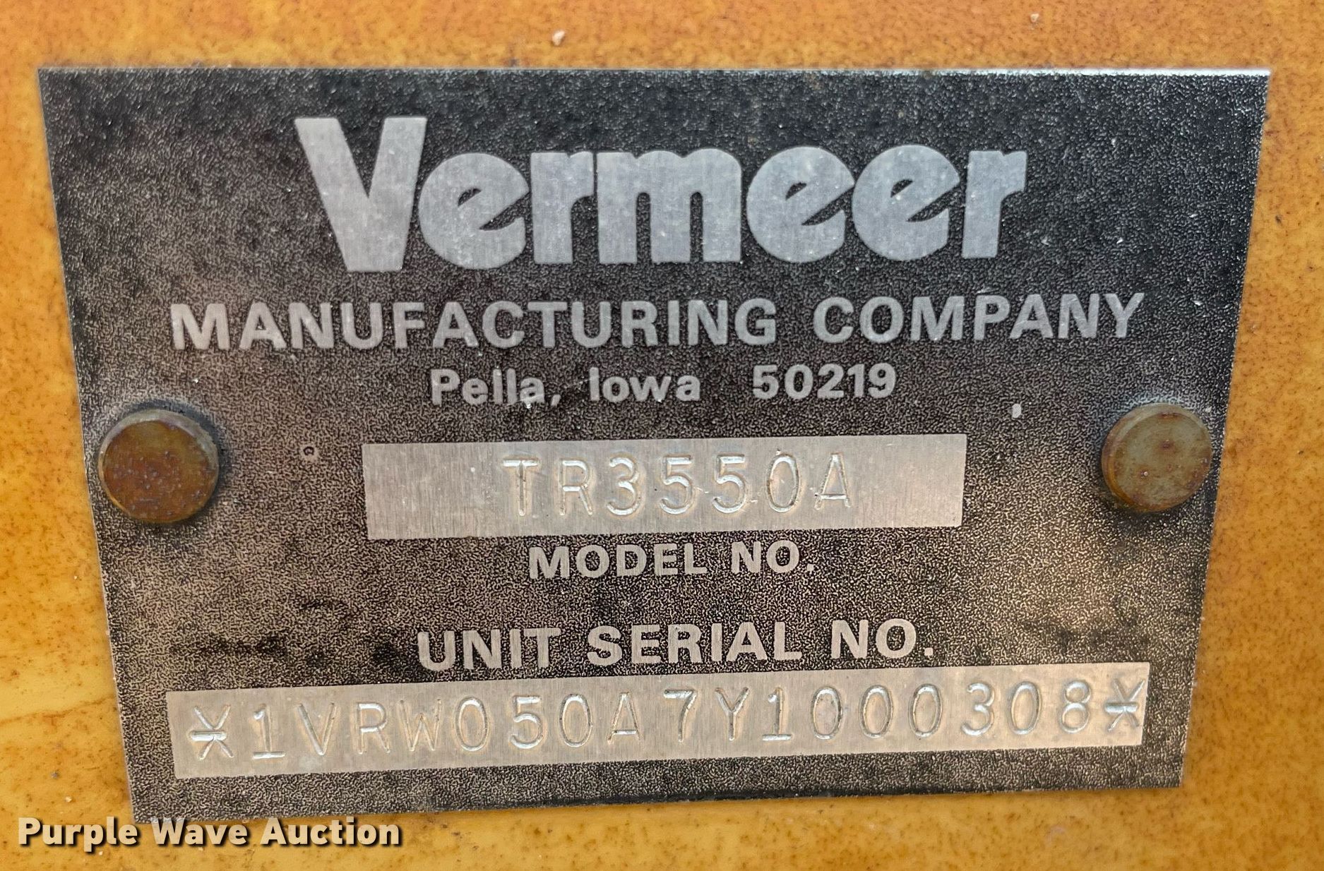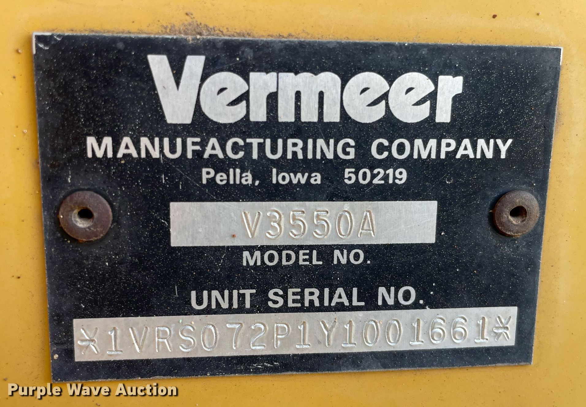 Purple Wave is selling a used Trencher or Rock Saw in Kansas. This item is a 2000 Vermeer V3550A trencher with the following: Hours: 1,942 on meter, Serial: 1VRS072P1Y1001661