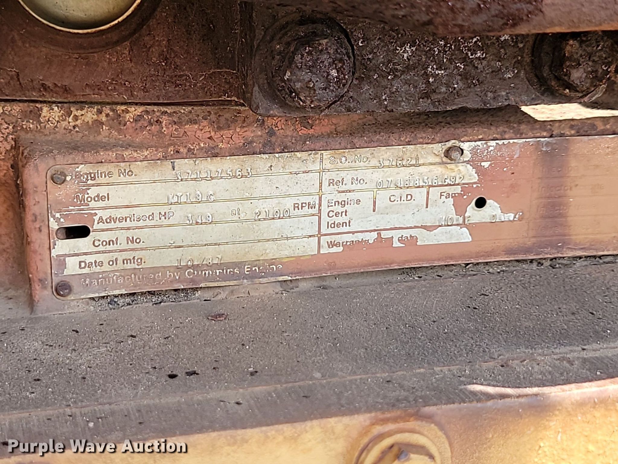 1988 Dresser TD25G dozer. Hours: 5,481 on meter, Serial: 4370007U002434. Engine Cummins KT19C, Cylinders: 6, Fuel type: Diesel. Transmission Powershift, 3F - 3R. Operators station Enclosed cab, AC, Heat, Steering: Clutch brake. Features Dozer blade Type: Semi-U, Single-tilt, Width: 13' 3" W, Attachments Ripper Shanks: 1.. Tracks Width: 28", Grouser pads: Single, Bottom rollers: 7. Notes AC compressor belt missing, Non-operational AC compressor. 39711 South Dakota 44. Armour, SD 57313