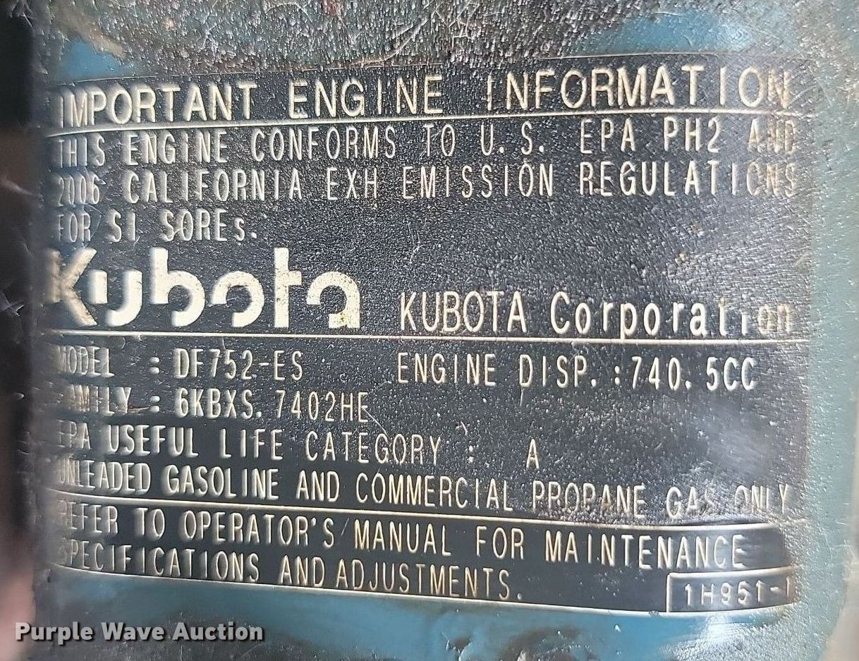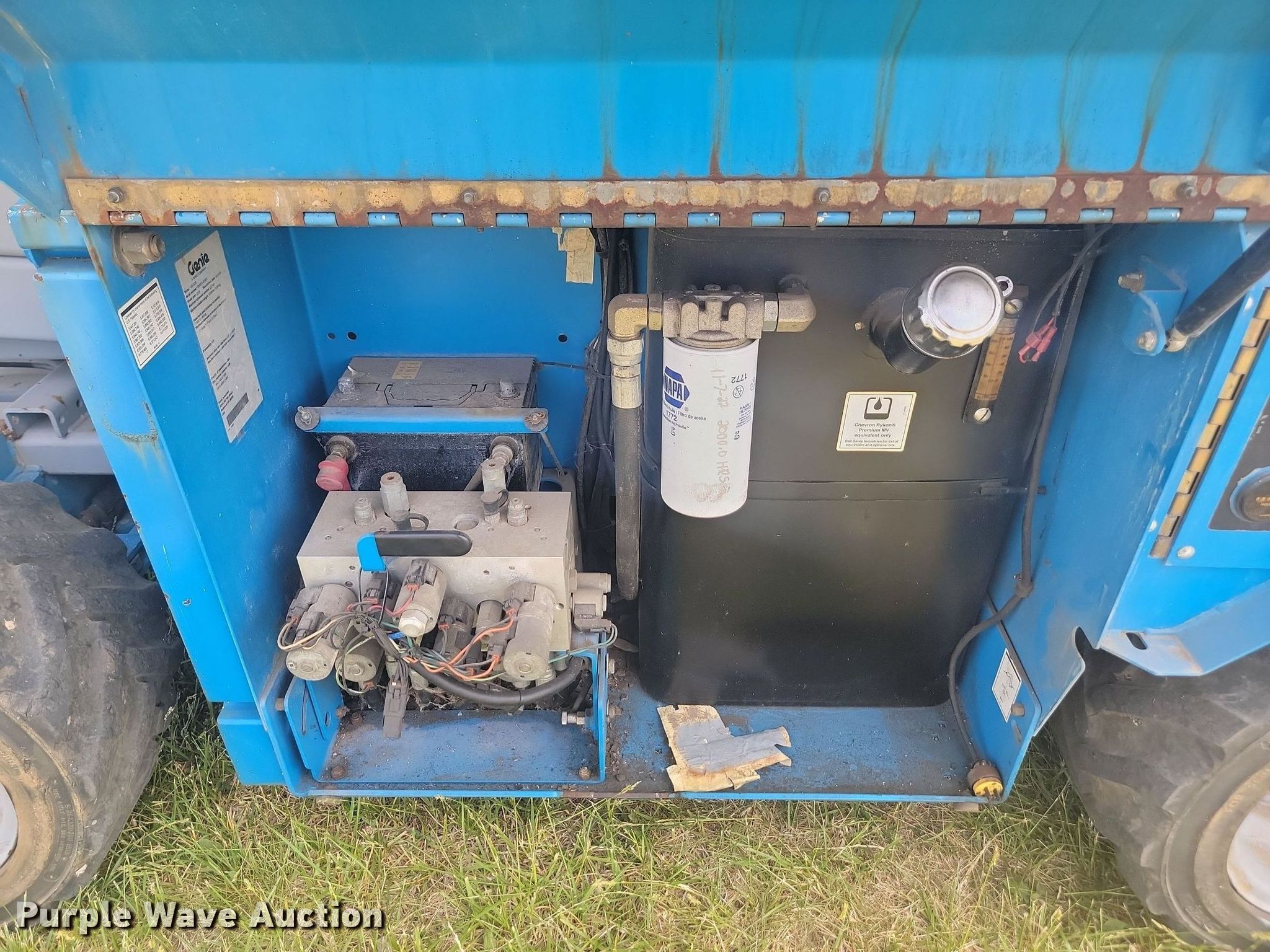 2006 Genie GS-3268 scissor lift. Hours: 2,010 on meter, Serial: 47424. Engine Kubota DF752-ES, Displacement: 740.5 CC, Cylinders: 3, Fuel type: Dual fuel. Chassis Four wheel drive. Features Rough terrain, Maximum lift capacity: 1,000 lbs, Maximum lift height: 32', Hydraulic outriggers, Hydraulic leveling, Platform: 96" L x 60" W, Controls: Platform, Ground, Platform extensions: Manual. Tires Tire size: 26x12-D389, Foam filled. Sioux Falls, SD 57107