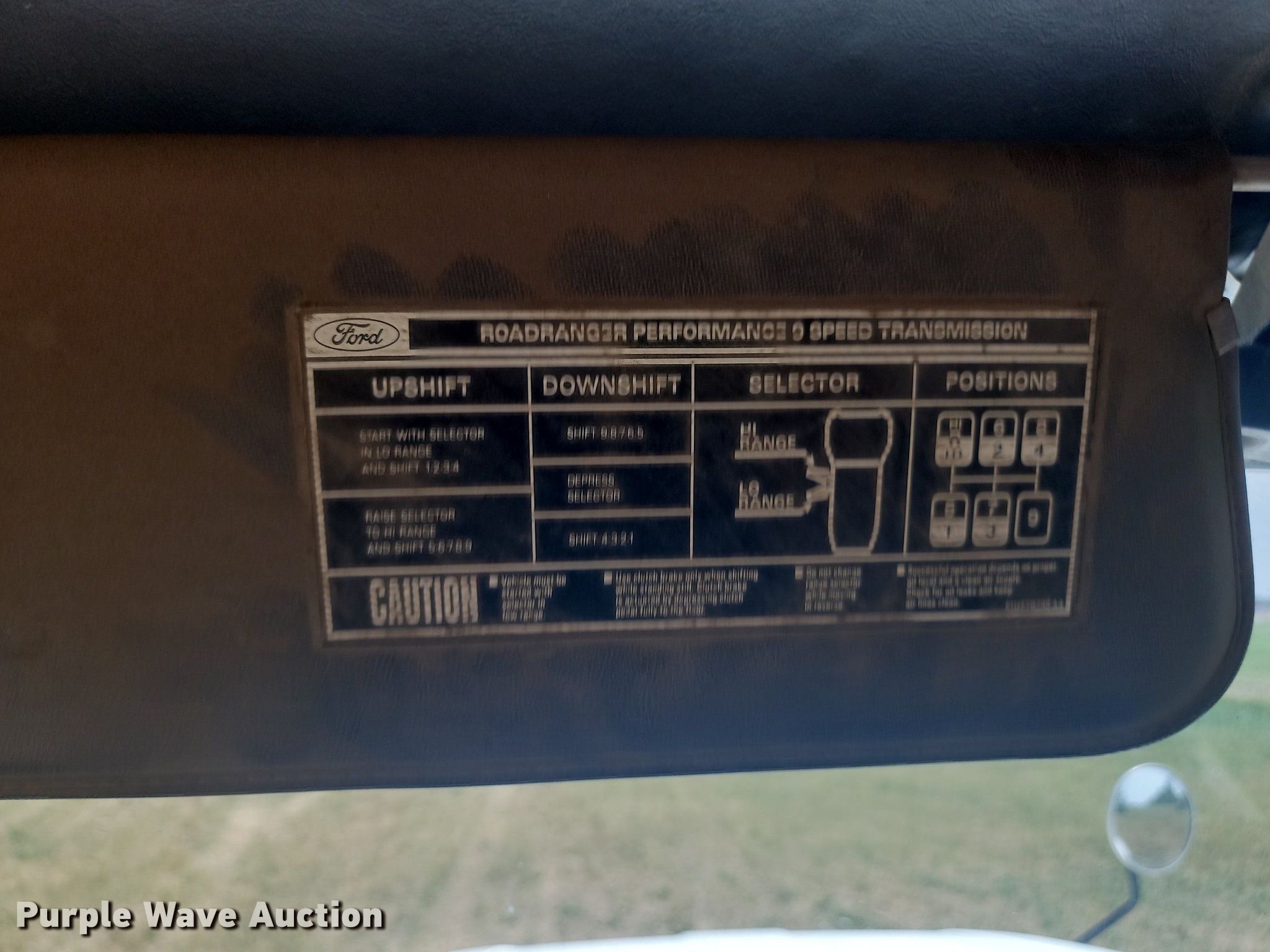 1993 Ford LTL9000 dump flatbed truck. Miles: 287,680 on odometer, VIN: 1FDYA95R8PVA19724. Engine Cummins N14, Displacement: 14.0L, Cylinders: 6, Fuel type: Diesel. Transmission Road Ranger, Manual, Speed: 9. Chassis Axles: Tandem, Differential lock: Inter-axle, Suspension: Air, Brakes: Air, PTO, GVWR: 48,000 lbs FAWR: 12,000 lbs, RAWR: 36,000 lbs. Interior AC, Heat, Heated mirrors. Features Dump bed 16' L x 96" W, Side height: 14", Side board height: 6", Bed type: Steel, Ram: Single , End gate: Manual. Tires Front: 295/80R22.5, Rear: 295/75R22.5. Notes Windshield chipped or cracked, In-frame engine overhaul completed July 2019. View repairs. South Dakota title. Title distribution may be delayed up to 30 days from verification of funds. Sioux Falls, SD 57107
