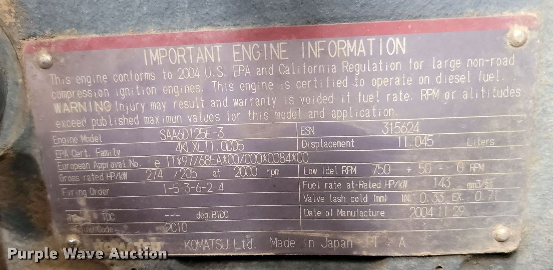 - Komatsu SAA6D125E-3