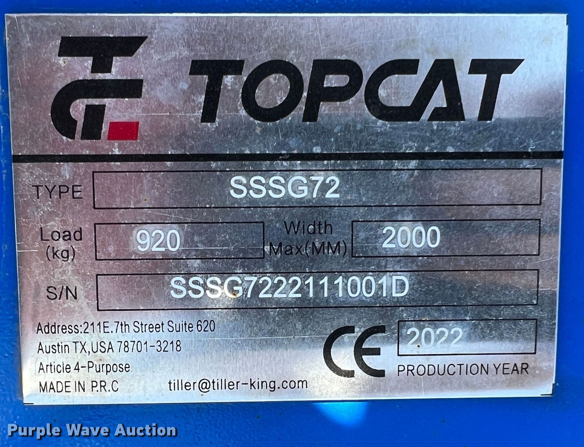 This 2022 TopCat SSSG72 skid steer grader will sell to the highest bidder regardless of price.