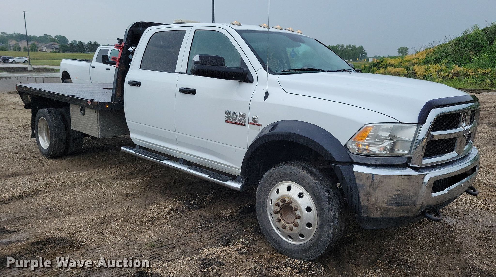 Purple Wave is selling a used Flat Bed Truck in Iowa. This item is a 2014 Dodge Ram 5500HD Crew Cab flatbed truck with the following: Miles: 173,584 on odometer, VIN: 3C7WRNFL9EG214599, Unit #: C-11805