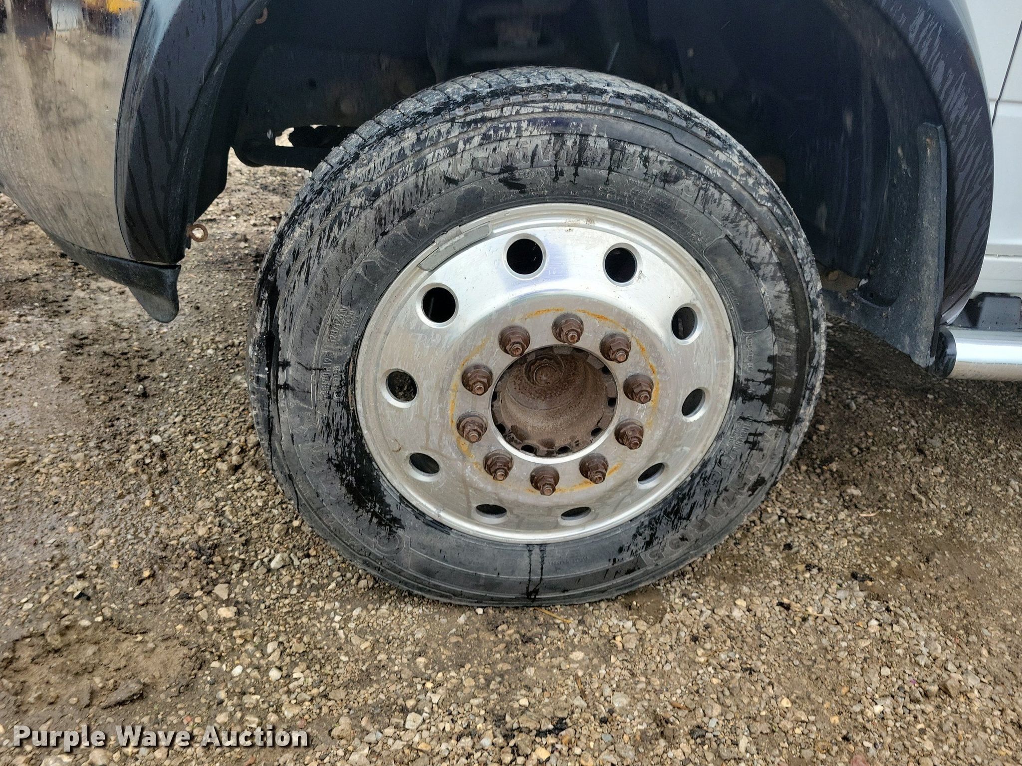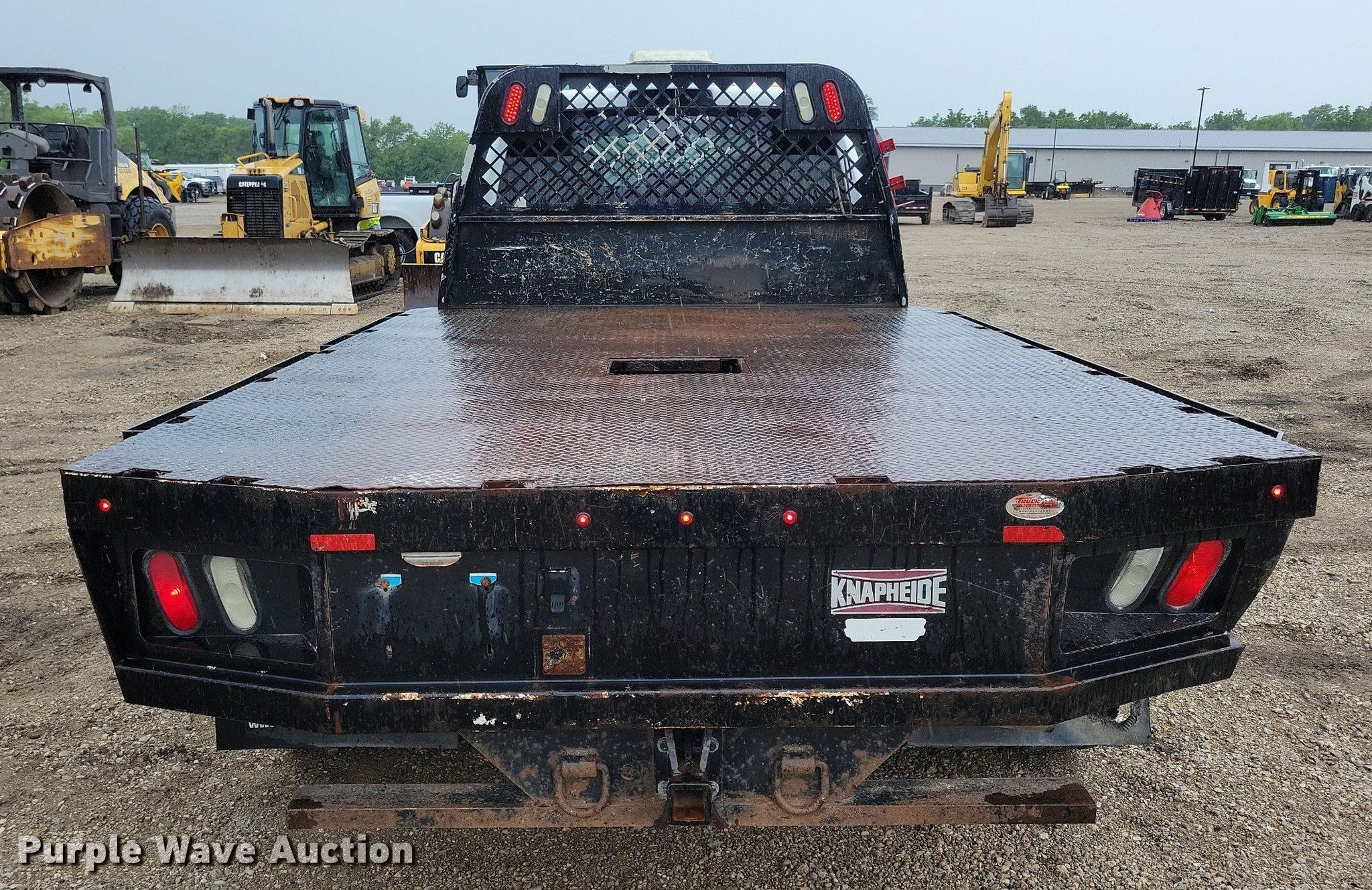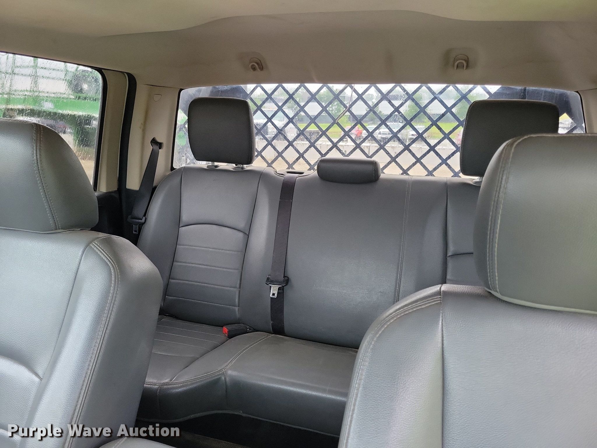 2014 Dodge Ram 5500HD Crew Cab flatbed truck. Miles: 173,584 on odometer, VIN: 3C7WRNFL9EG214599, Unit #: C-11805. Engine Cummins, Displacement: 6.7L, Cylinders: 6, Fuel type: Diesel. Transmission Automatic. Chassis Four wheel drive, Axles: Single, Suspension: Spring, Brakes: Hydraulic, GVWR: 19,500 lbs. Interior AC, Heat, Heated mirrors, Power windows, Power locks, Cruise control, Auxiliary controls, Brake controller. Features Flatbed Knapheide, 11' 7" L x 96" W, Auxiliary fuel tank. Tires Size: 225/70R19.5. Notes DPF deleted. Iowa title. Title distribution may be delayed up to 14 days from verification of funds. Absolute Group Company. 1201 W. 6th Ave. Slater, IA 50244