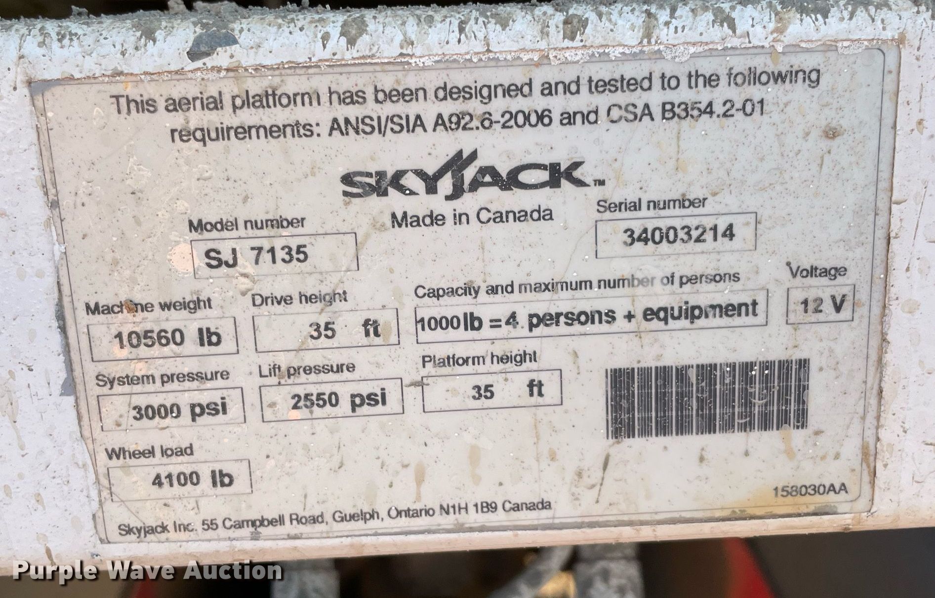 Purple Wave is selling a used Scissor or Vertical Lift in Oklahoma. This item is a Skyjack SJ7135 scissor lift with the following: Hours: 2,089 on meter, Serial: 34003214