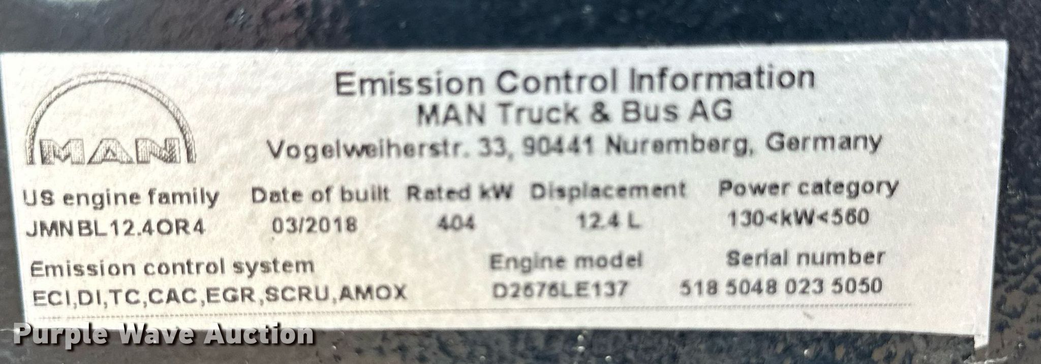Purple Wave is selling a used Engine in Kansas. This item is a MAN D2676LE137 engine with the following: Displacement: 12.4L, Cylinders: 6, Fuel type: Diesel, Serial: 51850480235050