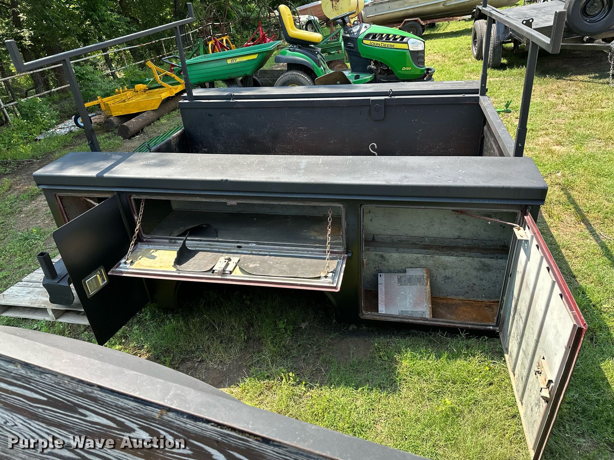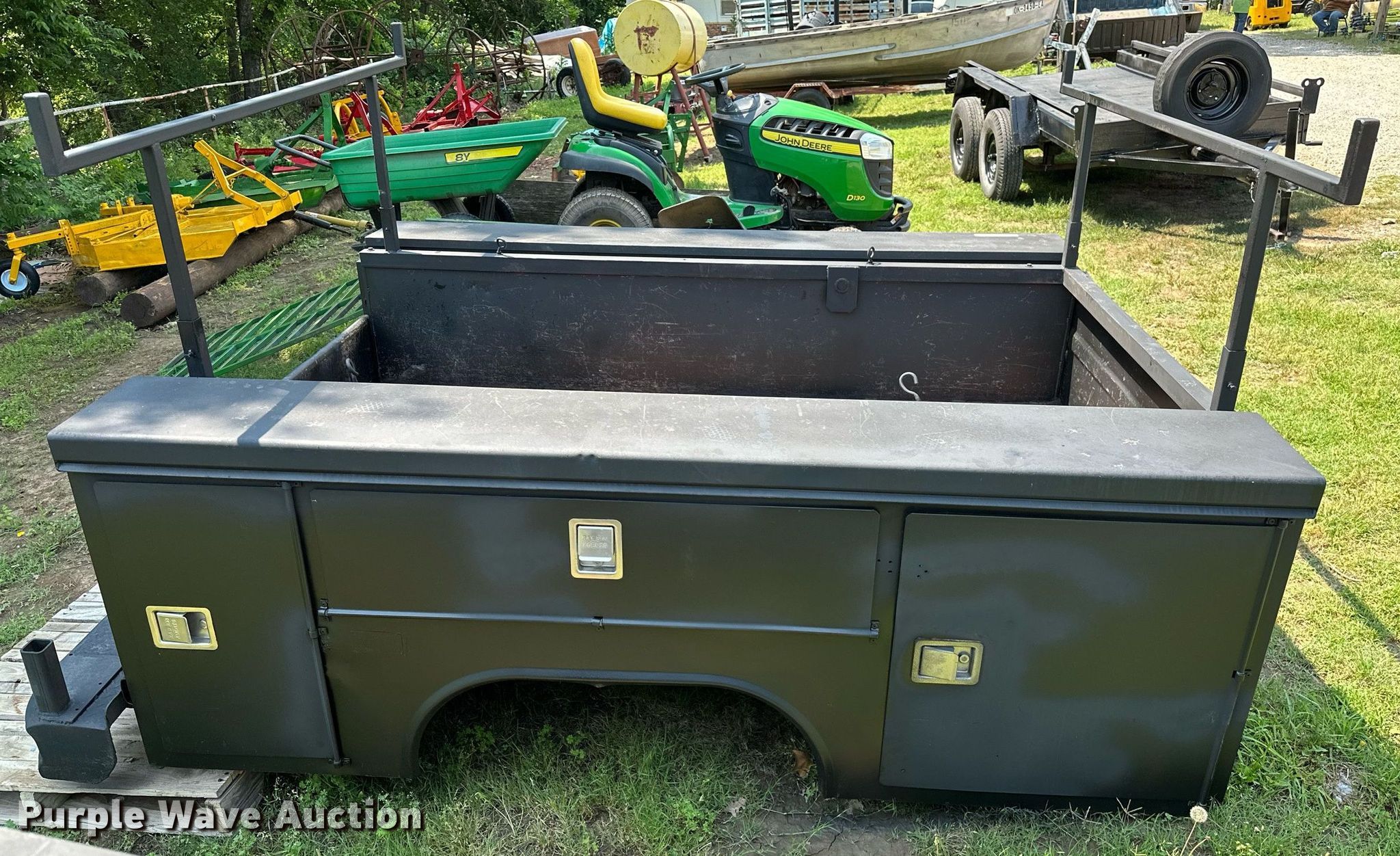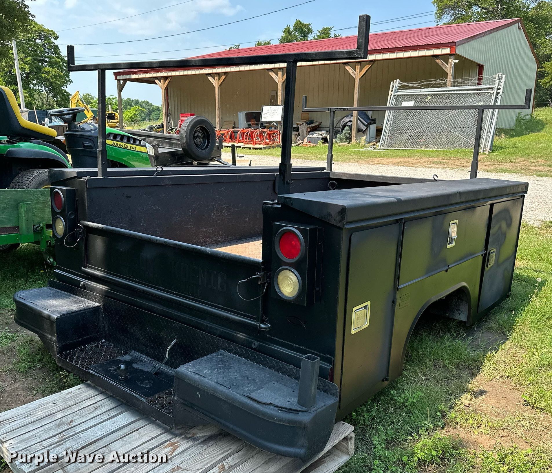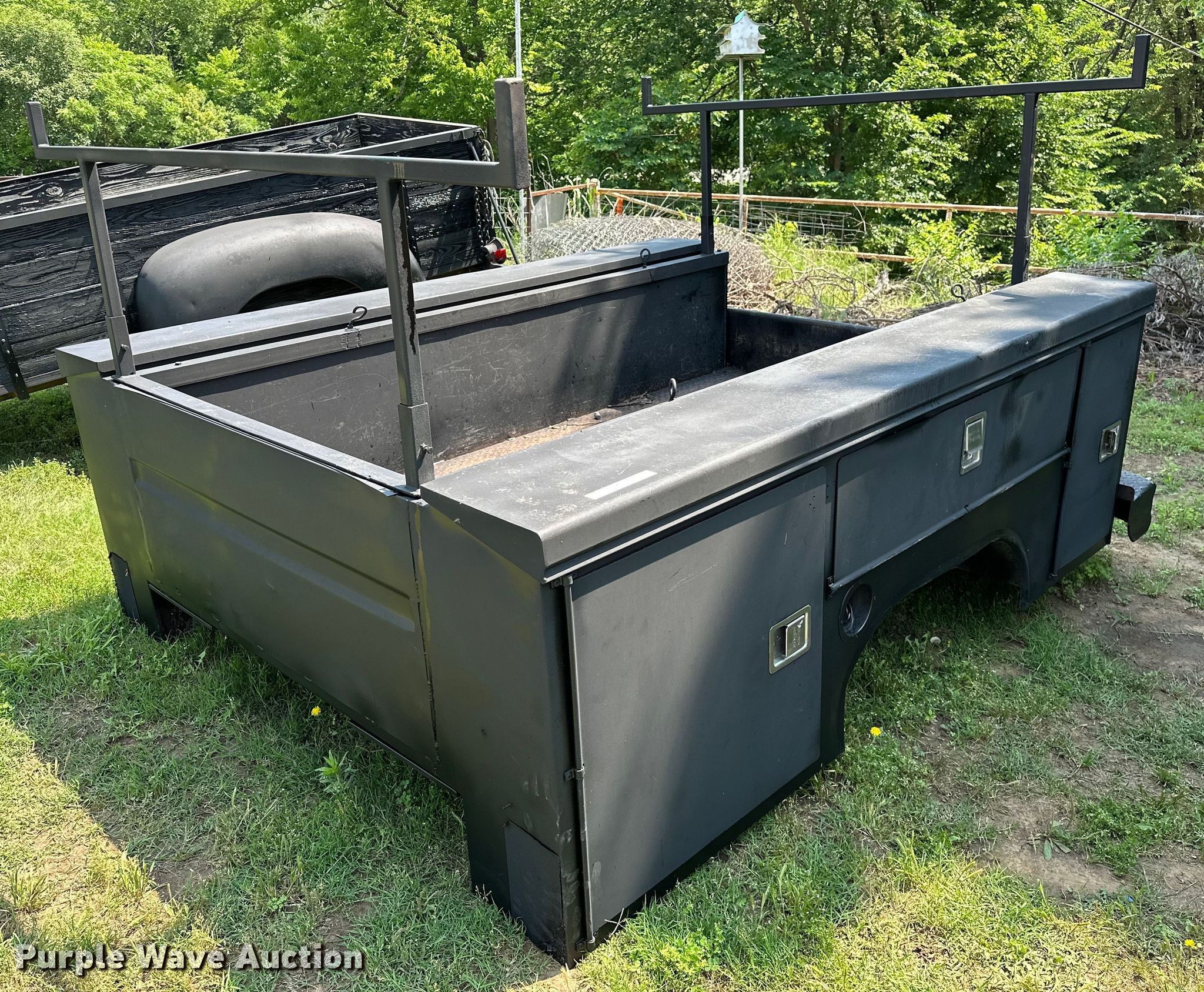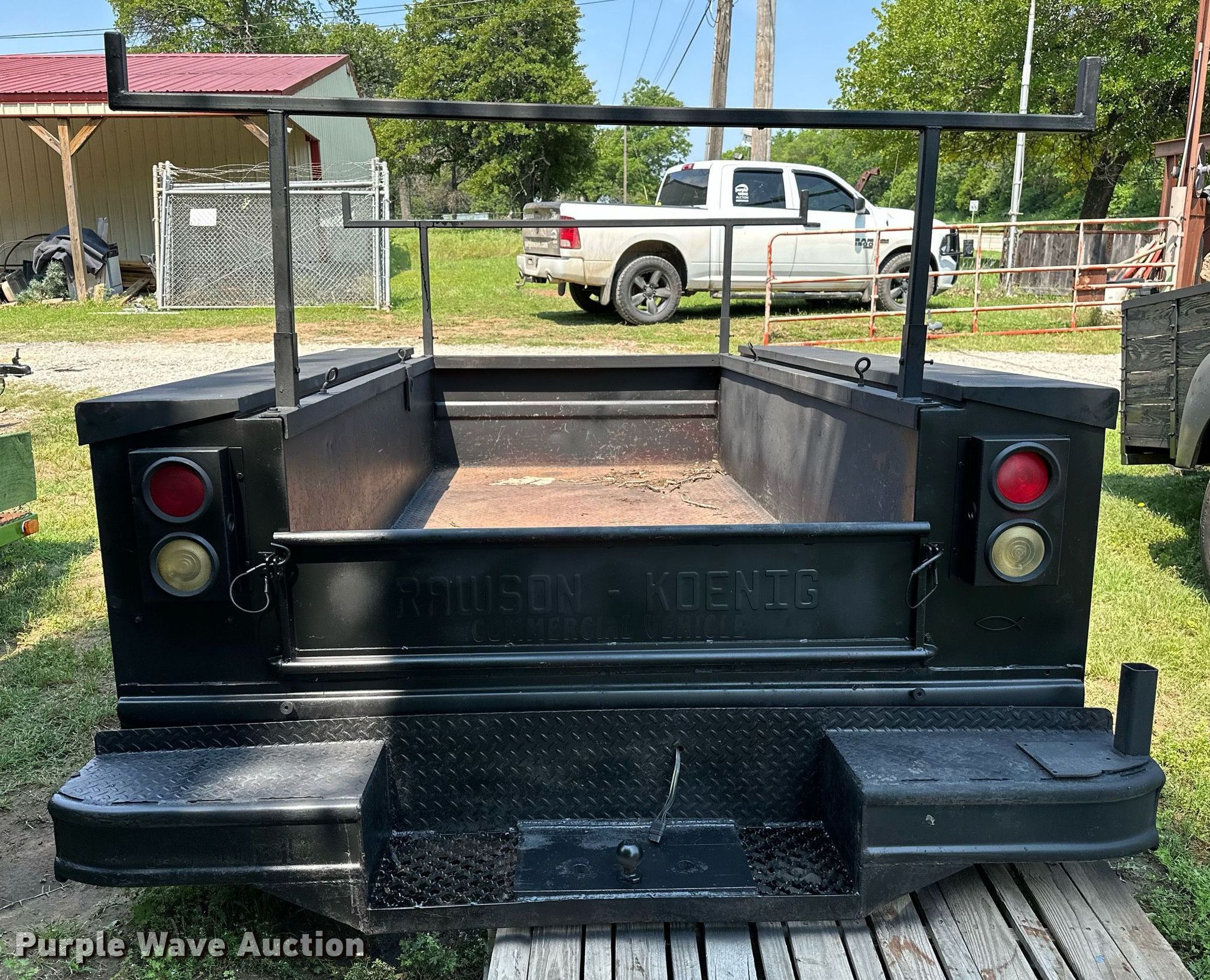 Rawson-Koenig utility bed. Features. 9' L x 80" W. Notes Compartment issues, jammed. Ponca City, OK 74601