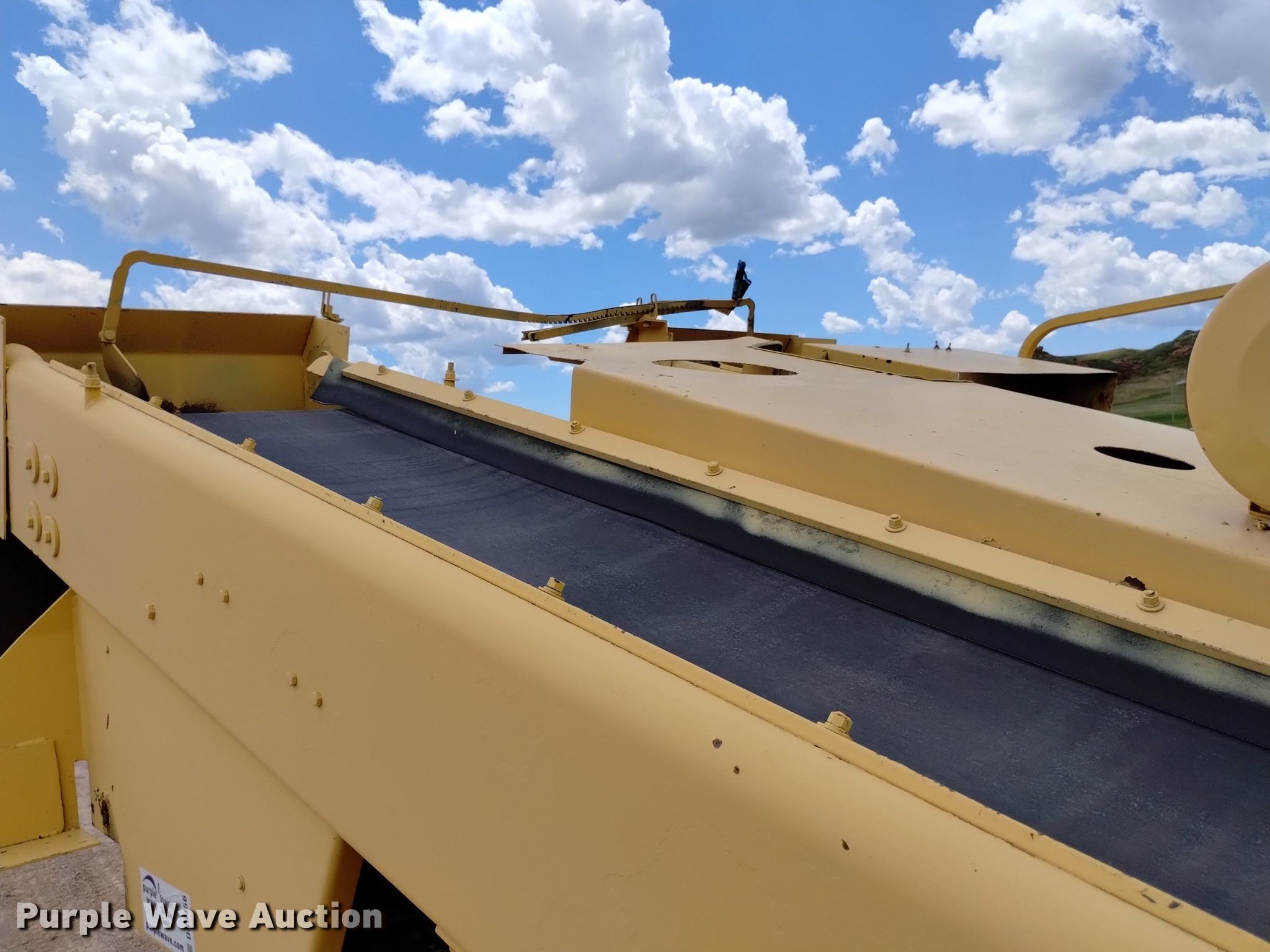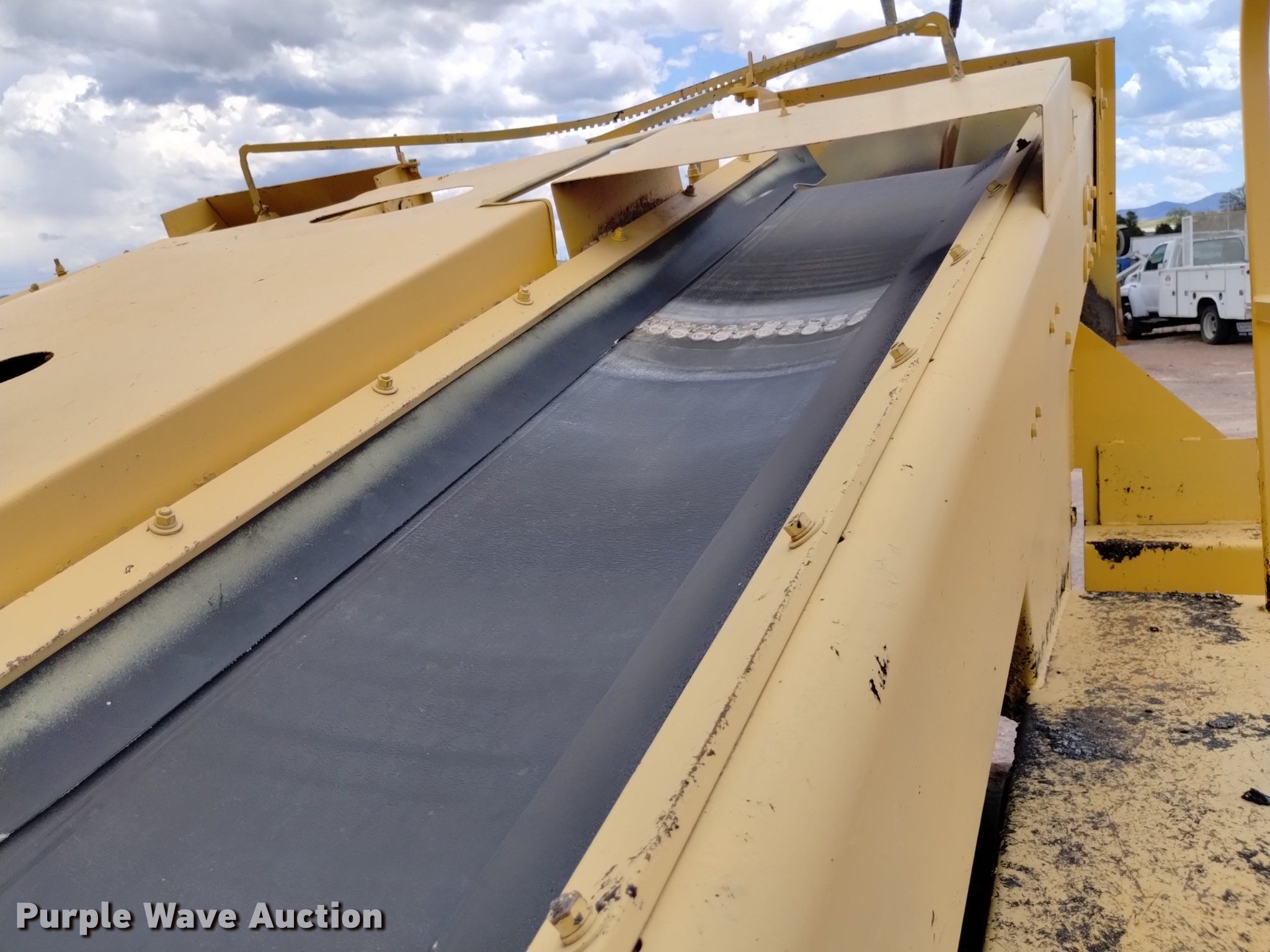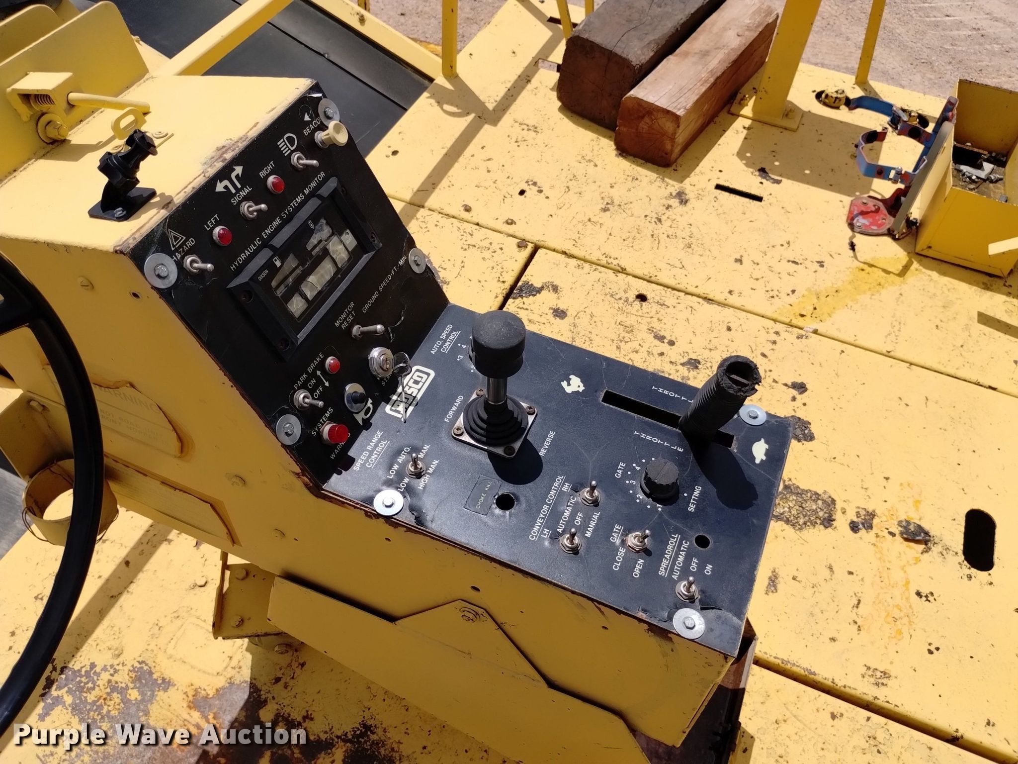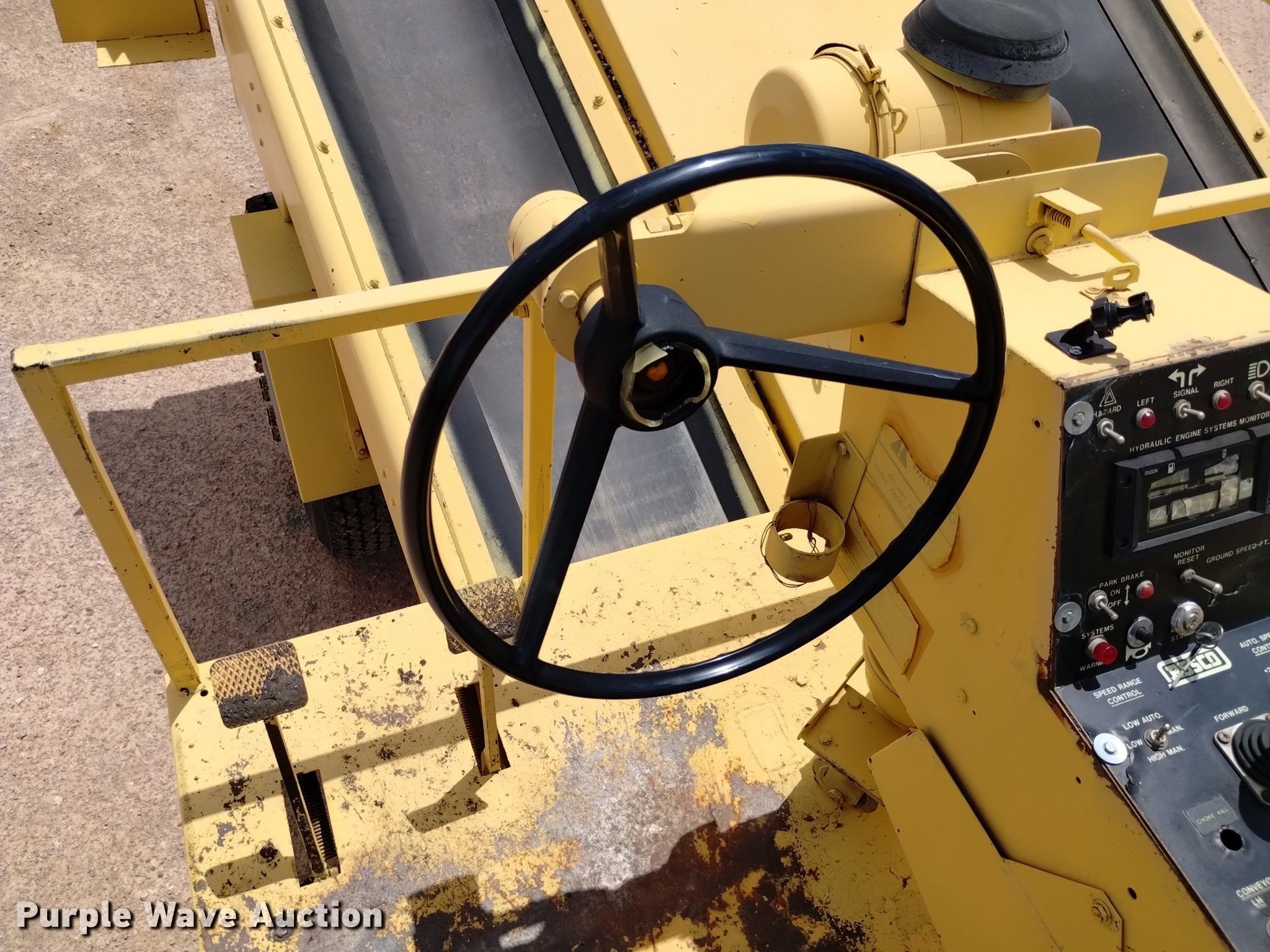 Rosco chip spreader. Hours: 1,619 on meter, Unit #: 21588. Engine Detroit Diesel, Cylinders: 4, Fuel type: Diesel. Transmission Hydrostatic. Features Paving width: to 14', Front spread hopper width: 9.5', Truck hitch. Tires Front: 11R24.5, Rear: 385/65R22.5. Notes Dead battery. Croell Inc.. 230 Croell Drive. Sundance, WY 82729