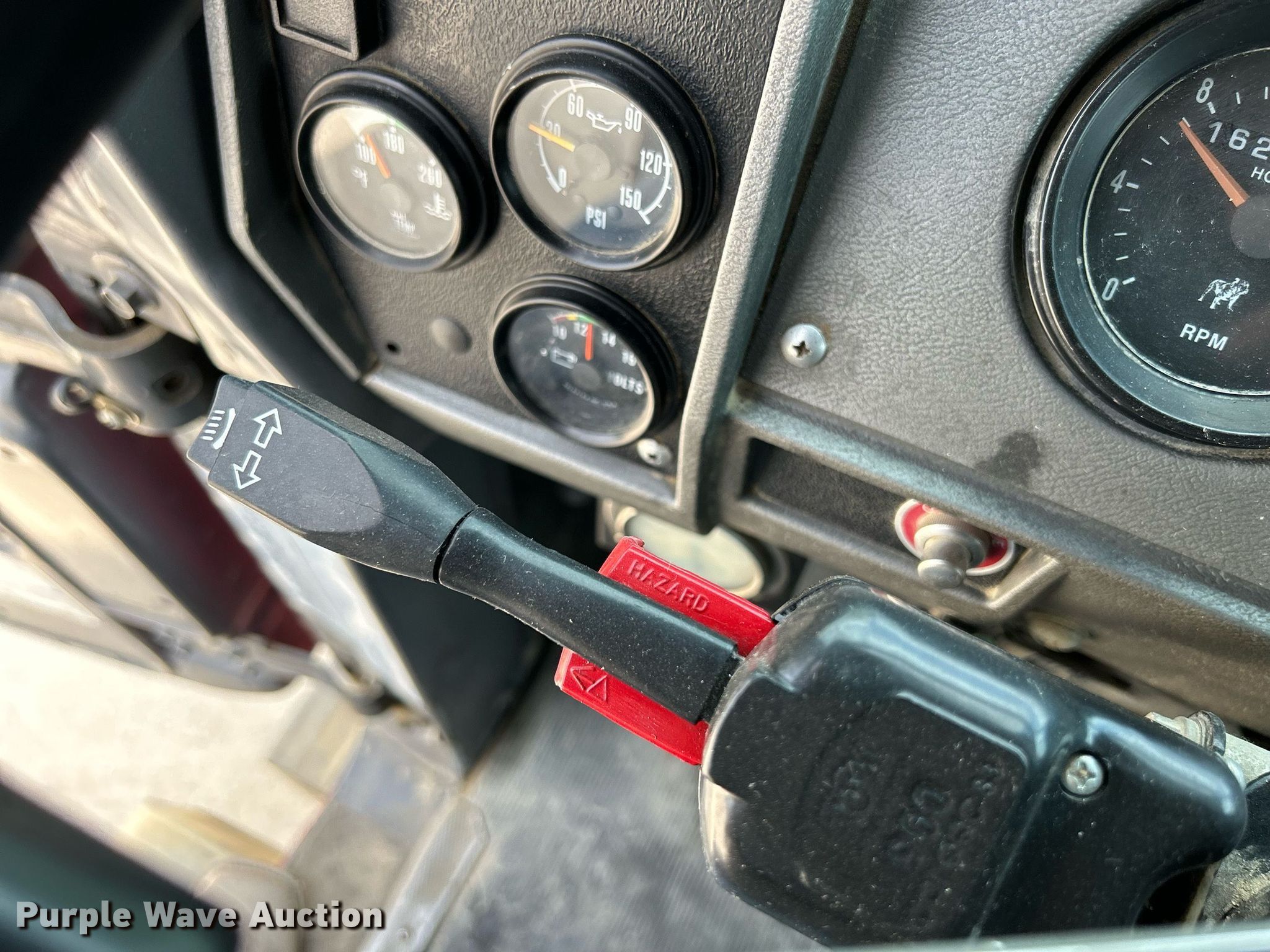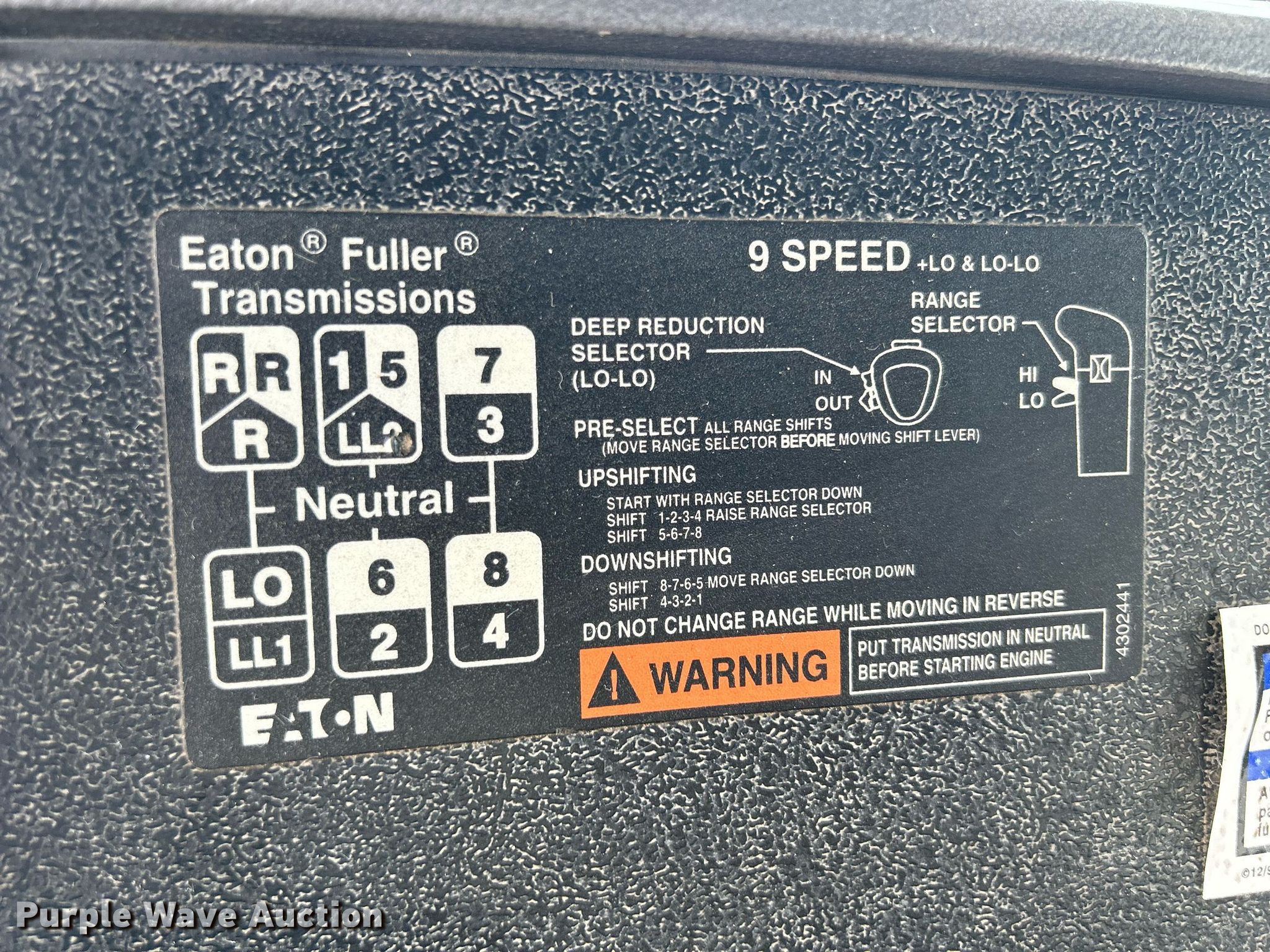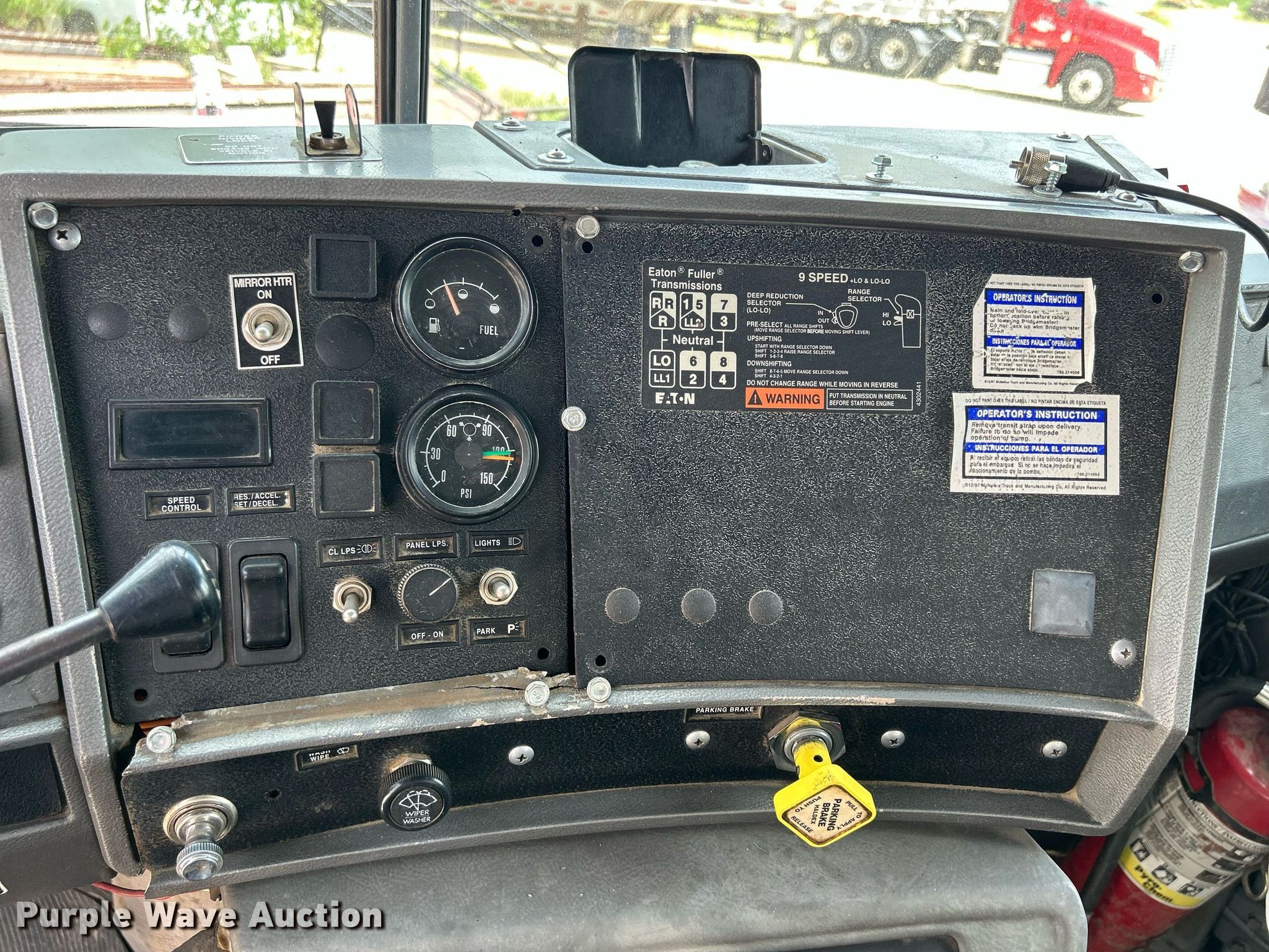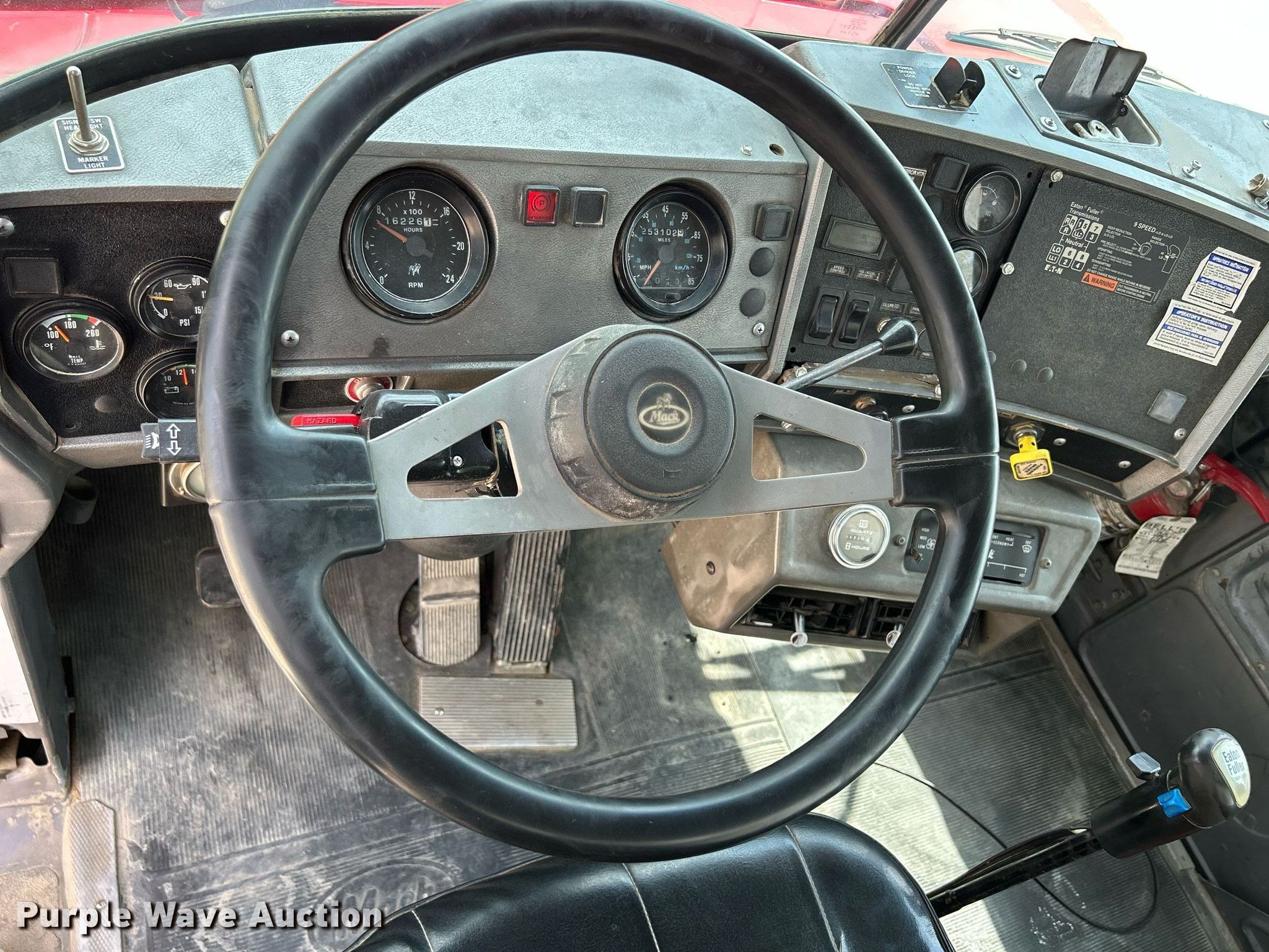 1999 Mack RD690S dump truck. Miles: 253,103 on odometer, Hours: 16,226 on meter, Hours: 3,422 on second meter, VIN: 1M2P264C3XM029829, Unit #: 5209917. Engine Mack, Displacement: 12.0L, Cylinders: 6, Fuel type: Diesel. Transmission Eaton Fuller, Manual, Speed: 9. Chassis Axles: 4, Pusher axle Steerable, Tag axle Steerable, Differential lock: Inter-axle, Suspension: Spring over walking beam, Brakes: Air, PTO, GVWR: 80,000 lbs, Wheelbase: 250". Interior AC, Heat, Cruise control. Features Side dump bed SmithCo Side-Dump, 15' x 8' W, Bed type: Steel, Ram: Dual. Tires Front: 425/65R22.5, Rear: 11R22.5, Lift axle: 11R22.5. Notes Non-operational original hour meter. Iowa title. Croell Redi-Mix. 2010 Kenwood Ave. New Hampton, IA 50659
