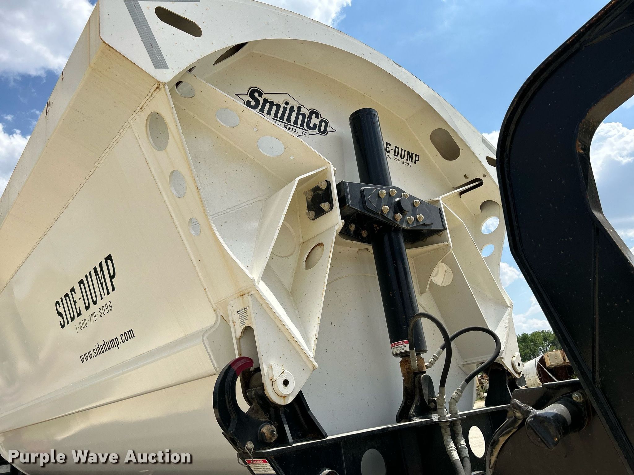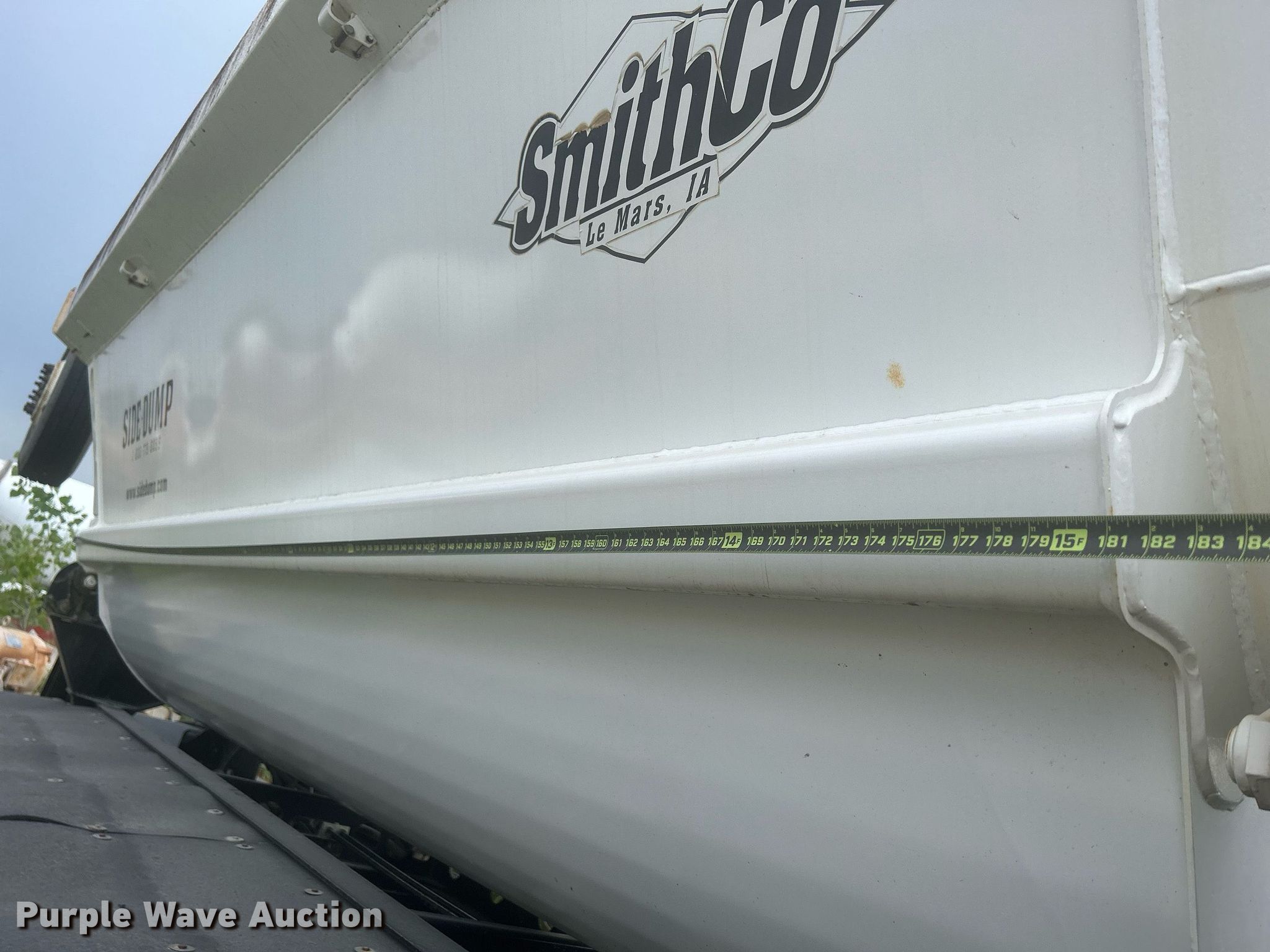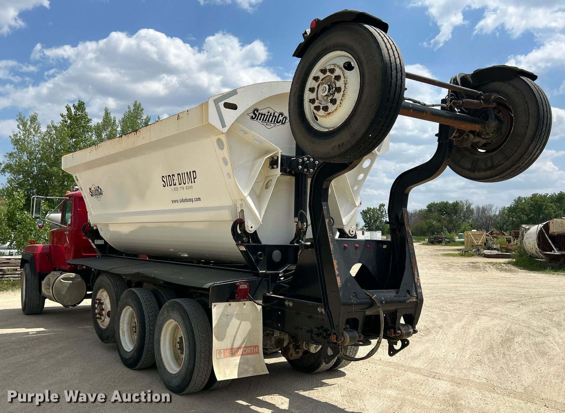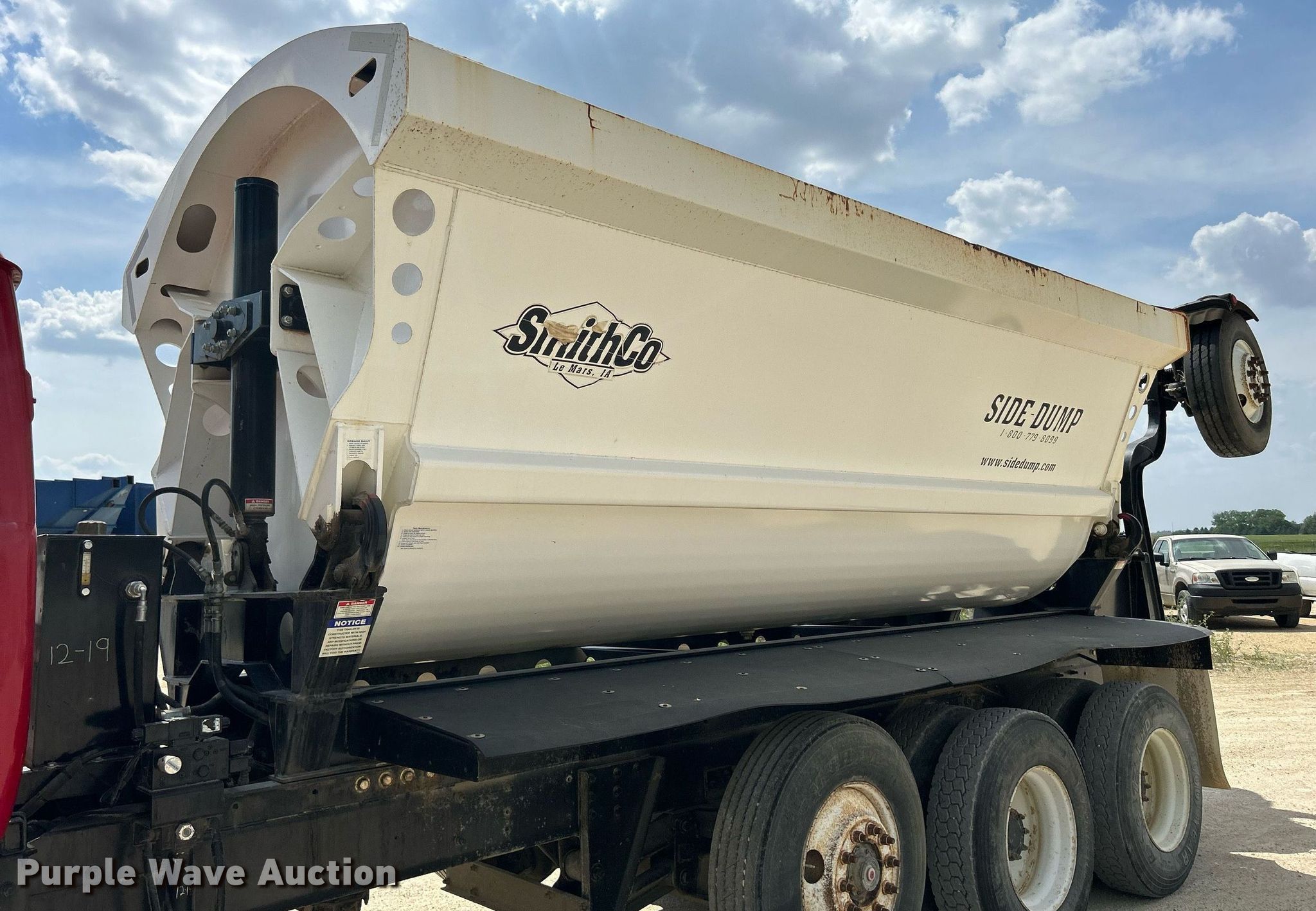 1999 Mack RD690S dump truck. Miles: 253,103 on odometer, Hours: 16,226 on meter, Hours: 3,422 on second meter, VIN: 1M2P264C3XM029829, Unit #: 5209917. Engine Mack, Displacement: 12.0L, Cylinders: 6, Fuel type: Diesel. Transmission Eaton Fuller, Manual, Speed: 9. Chassis Axles: 4, Pusher axle Steerable, Tag axle Steerable, Differential lock: Inter-axle, Suspension: Spring over walking beam, Brakes: Air, PTO, GVWR: 80,000 lbs, Wheelbase: 250". Interior AC, Heat, Cruise control. Features Side dump bed SmithCo Side-Dump, 15' x 8' W, Bed type: Steel, Ram: Dual. Tires Front: 425/65R22.5, Rear: 11R22.5, Lift axle: 11R22.5. Notes Non-operational original hour meter. Iowa title. Croell Redi-Mix. 2010 Kenwood Ave. New Hampton, IA 50659