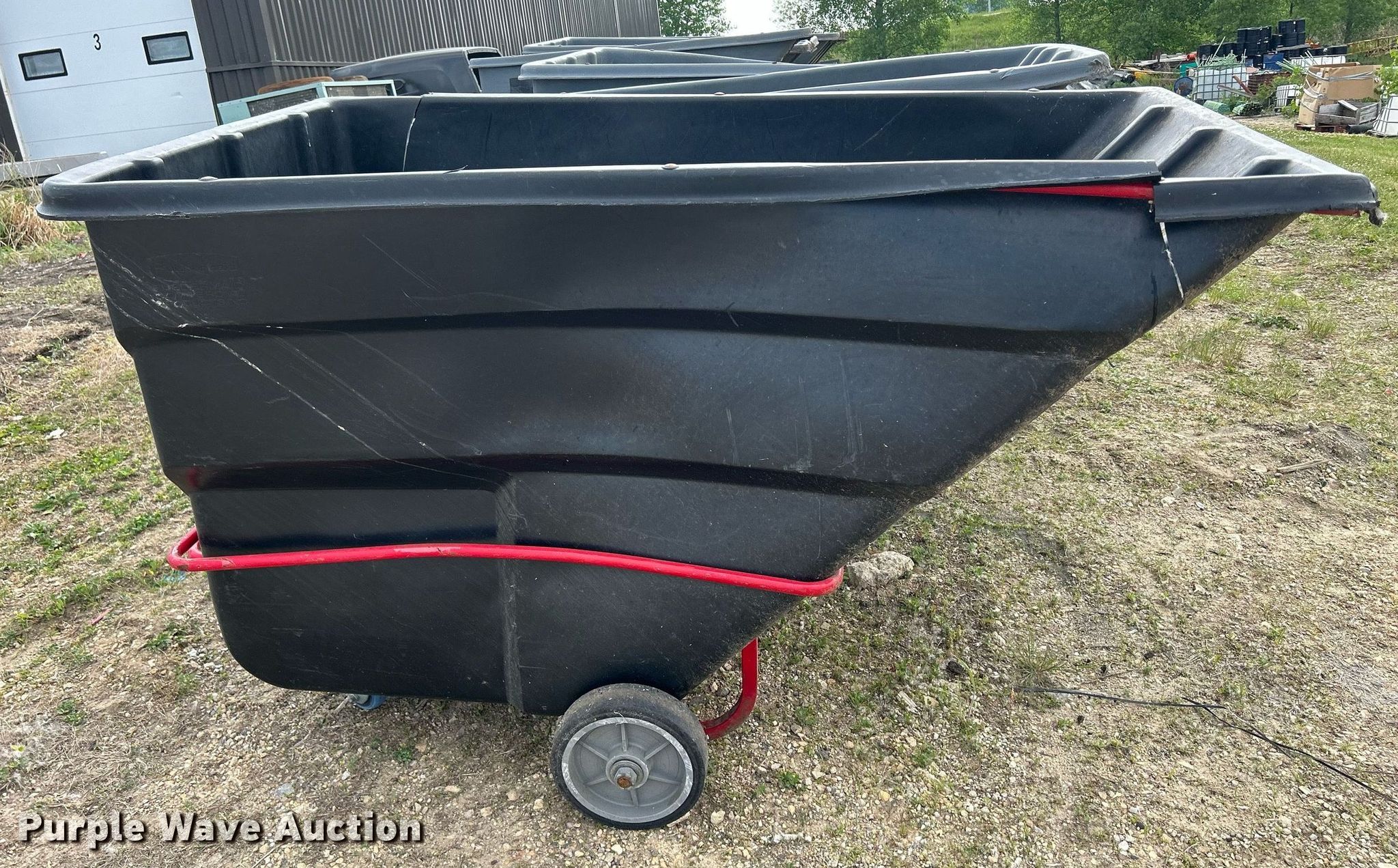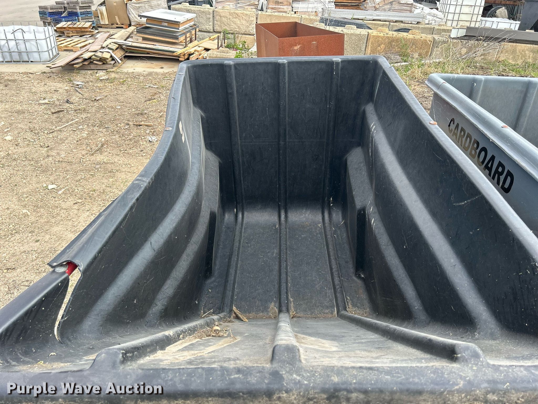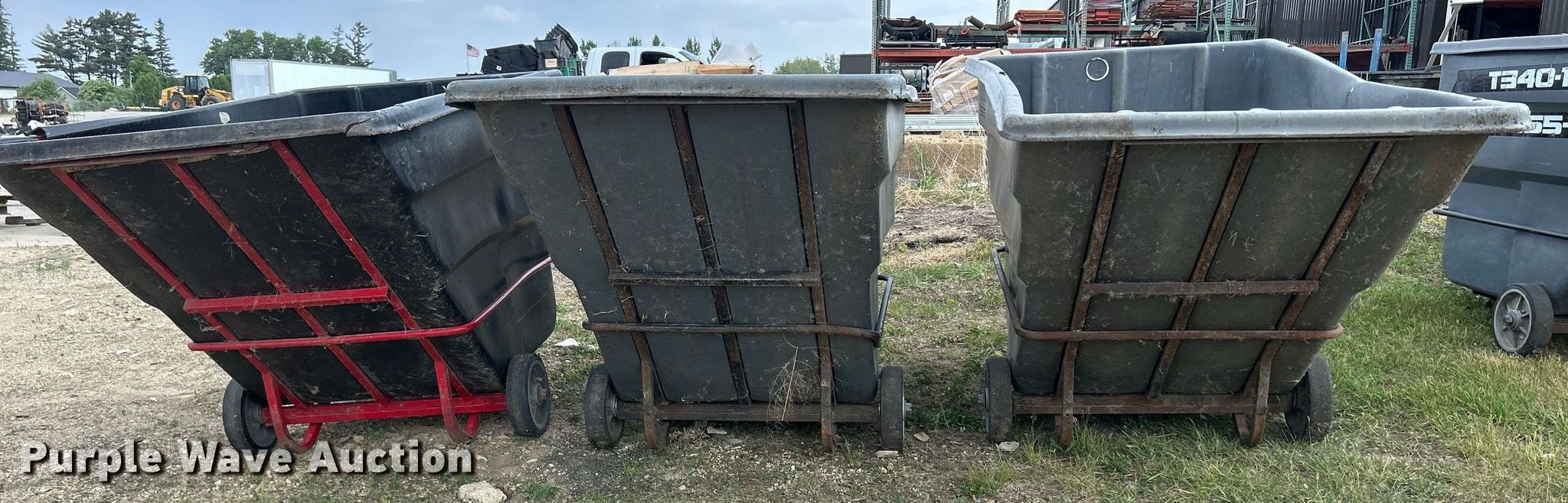 Purple Wave is selling a used Refuse or Compaction Equip. in Iowa. This item is a (3) Rubbermaid 1036 refuse totes with the following: 80" L x 45" W, Capacity: 2 cu.yd., Capacity: 2,300 lbs