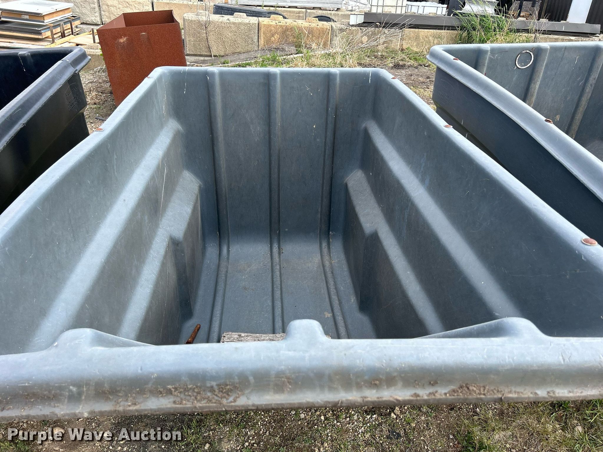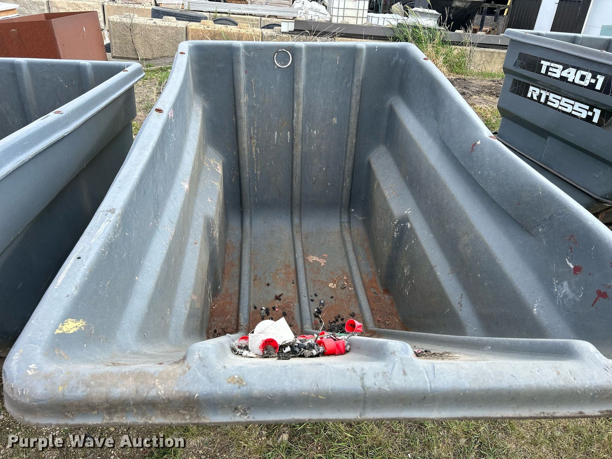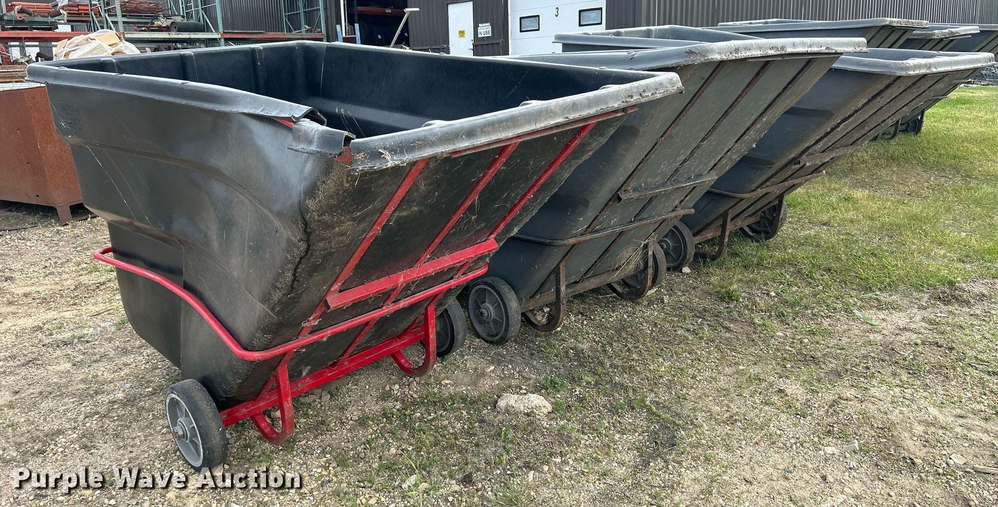 Purple Wave is selling a used Refuse or Compaction Equip. in Iowa. This item is a (3) Rubbermaid 1036 refuse totes with the following: 80" L x 45" W, Capacity: 2 cu.yd., Capacity: 2,300 lbs