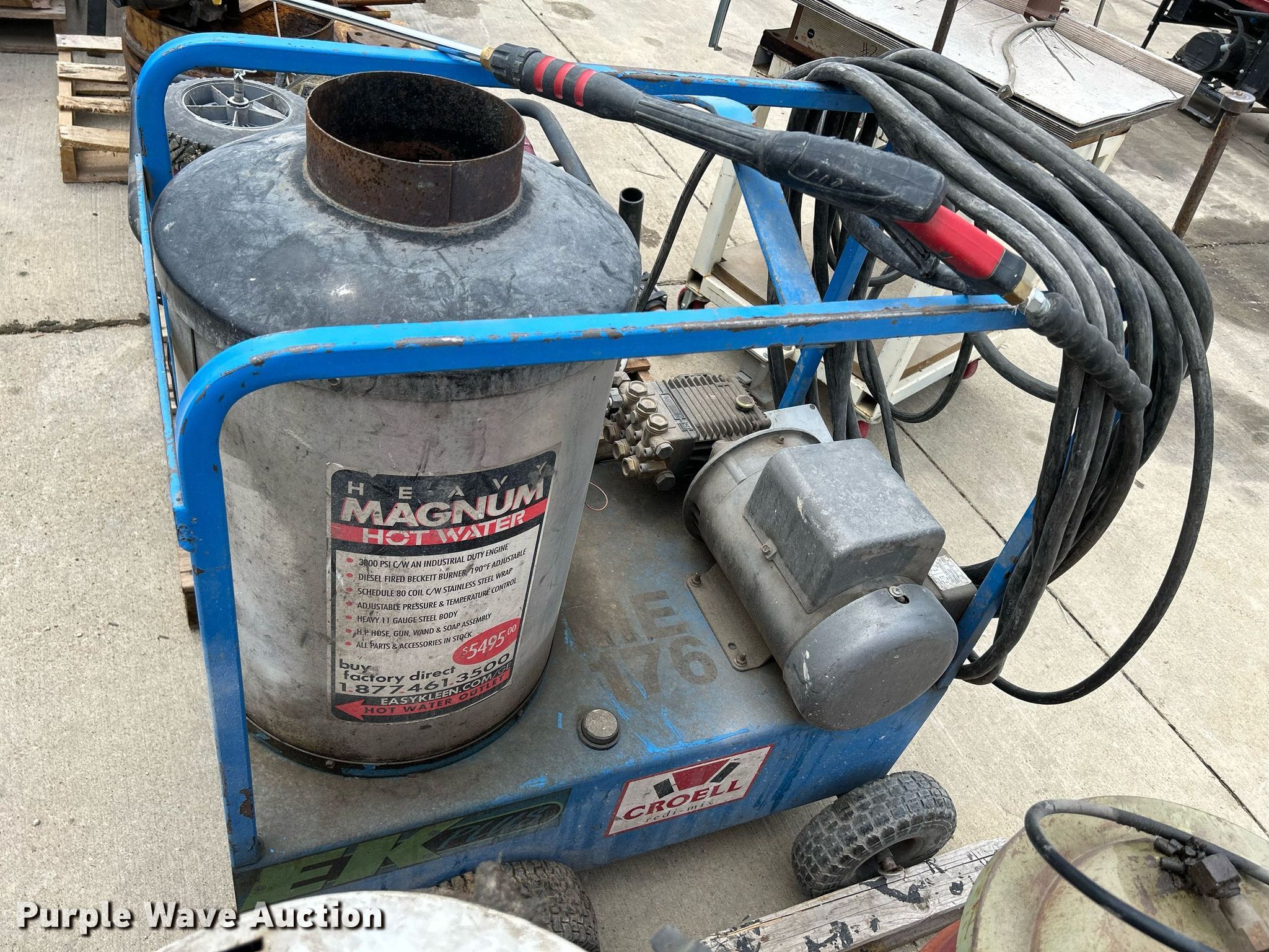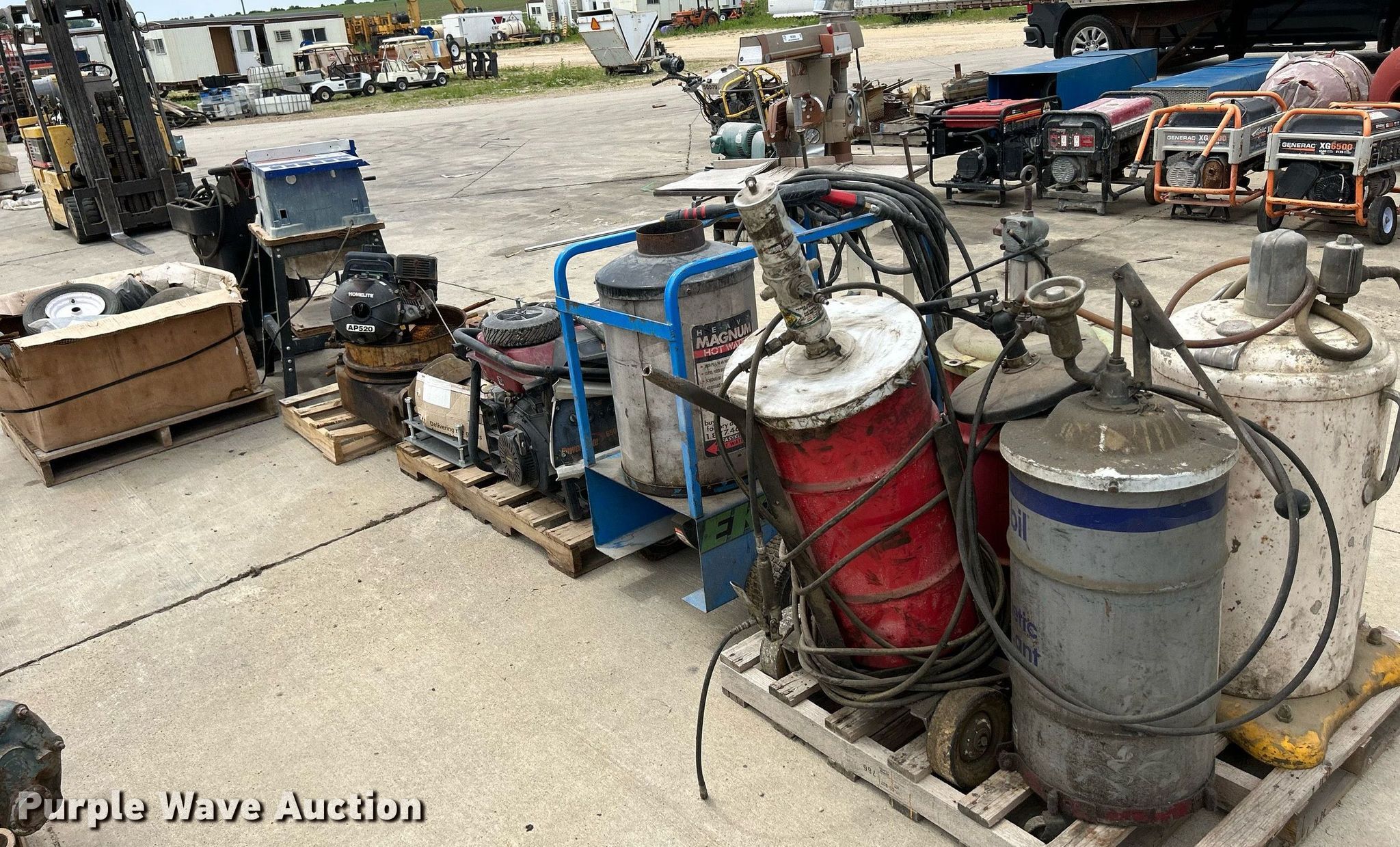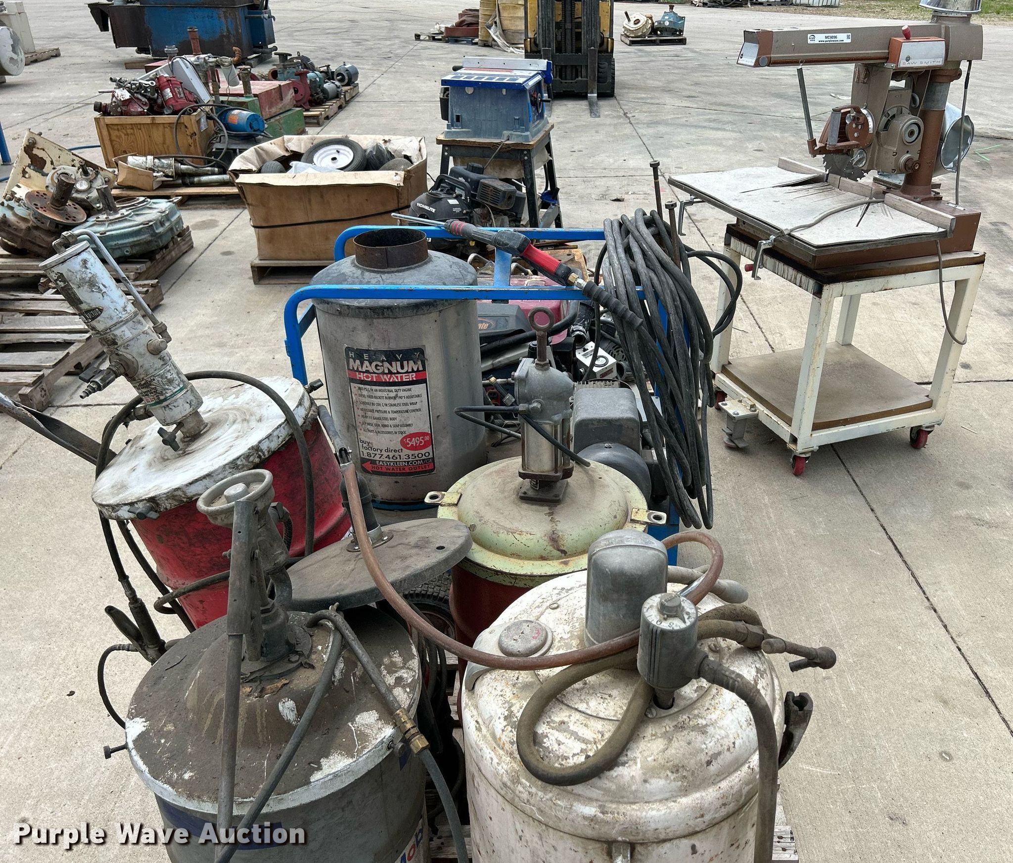 Purple Wave is selling a used Tools in Iowa. This item is a Tools with the following: Easy Kleen EK Plus pressure washer, (4) oil containers, Pumps, Yuba Saw Smith arm saw, Tires and wheels, Electric concrete vibrator, Homelite AP520 pump, Powermate 8125 generator, Benchtop Pro table saw, Wynn's transmission service cart, Unknown operating conditions