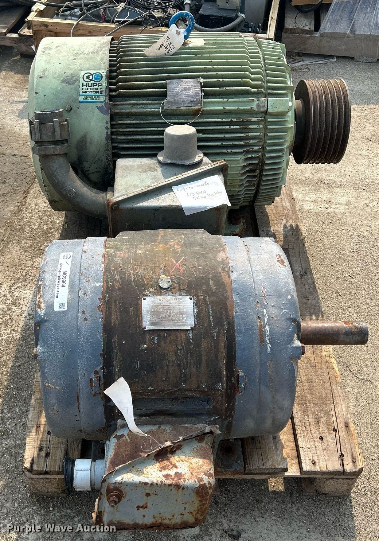 Purple Wave is selling a used Electric Motor in Iowa. This item is a (2) electric Motors with the following: Phase: Three, GE, HP: 40, Hico, HP: 75