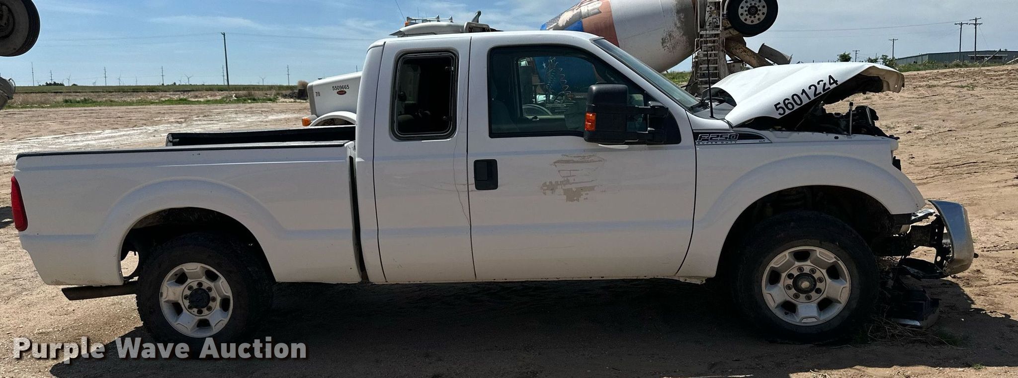 2012 Ford F250 Super Duty XLT SuperCab pickup truck. Miles: Unknown, VIN: 1FT7X2A60CEA17784, Unit #: 5601224. Engine Displacement: 6.2L V8 OHV, Cylinders: 8, Fuel type: Gas. Transmission Automatic. Interior AC, Heat, Power windows, Power locks, Cruise control. Tires Size: LT245/70R17. Notes Battery missing, Collision damage, Rear bumper missing, Air bags deployed, Lug nuts missing, Non-operational unit. Kansas title. Mileage has not been verified. Odometer discrepancy will be marked on the title. Croell Redi-Mix. 11257 109 Road. Dodge City, KS 67801
