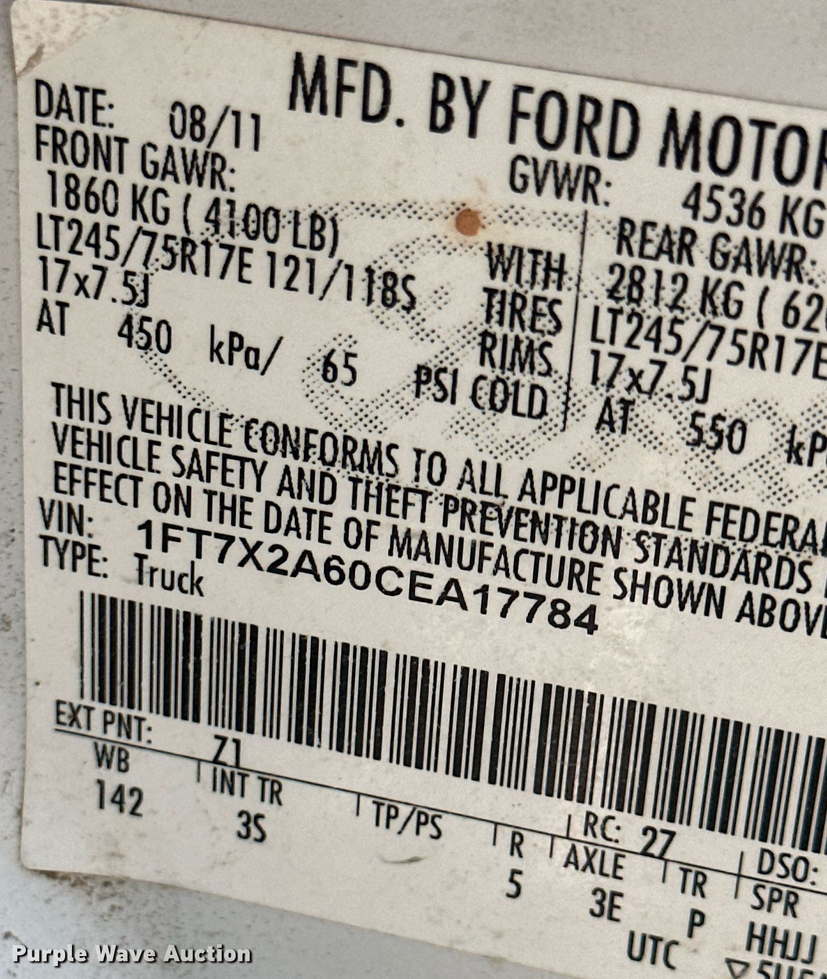 - VIN: 1FT7X2A60CEA17784