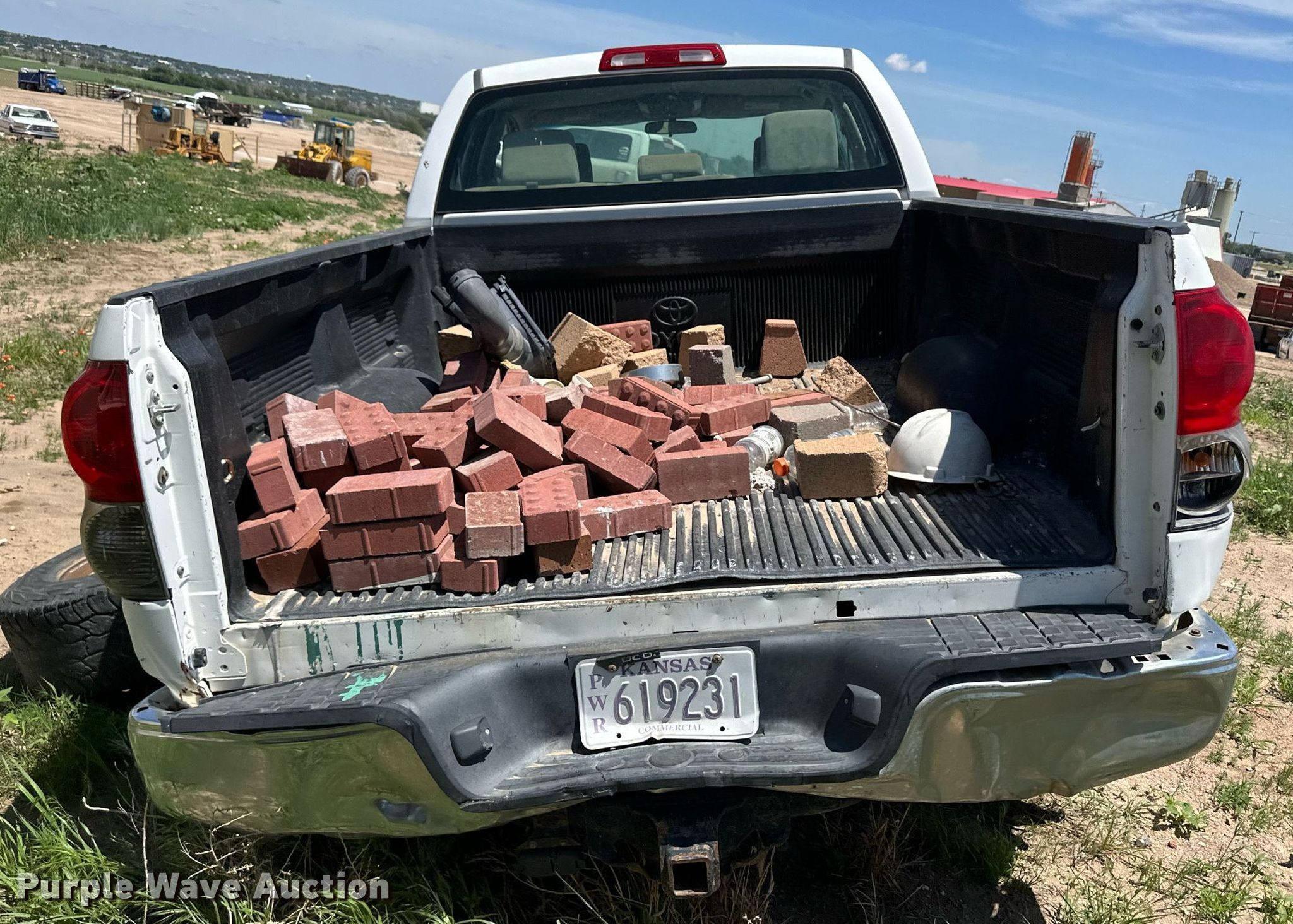 2007 Toyota Tundra Double Cab pickup truck. Miles: Unknown, VIN: 5TFRT54197X013684. Engine Displacement: 4.7L V8 DOHC, Cylinders: 8, Fuel type: Gas. Transmission Automatic. Interior AC, Heat, Power windows, Power locks, Cruise control. Tires Size: LT275/65R18. Notes Engine parts missing, Driver side tire missing, Non-operational unit. Iowa title. Mileage has not been verified. Exempt will be written in the odometer disclosure on the title. Croell Redi-Mix. 11257 109 Road. Dodge City, KS 67801