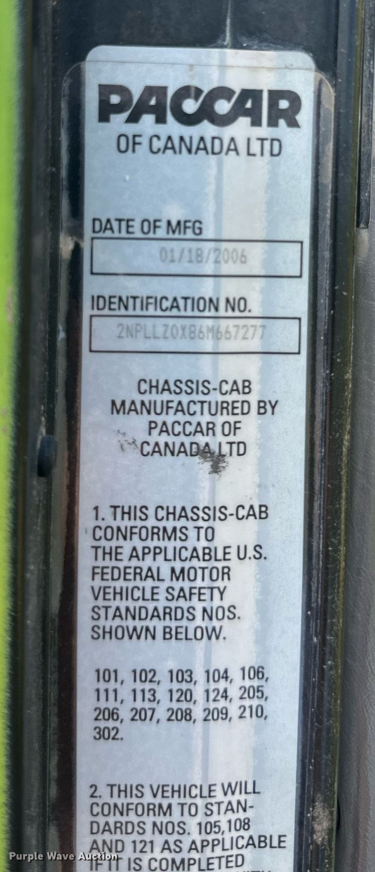 2006 Peterbilt 335 ready mix truck. Miles: 86,835 on odometer, VIN: 2NPLLZ0X86M667277, Unit #: 5700630. Engine Cummins ISC, Displacement: 8.3L, Cylinders: 6, Fuel type: Diesel. Transmission Eaton Fuller, Manual, Speed: 10. Chassis Axles: Tandem, Differential lock: Full, Suspension: Spring, Brakes: Air, PTO. Interior AC, Heat, Heated mirrors, Cruise control. Features Mixer KMC, Capacity: 10 cu.yd., Discharge: Rear, In-cab controls, Rear drum controls, Water tank capacity: 120 gallons, Chute Extensions: 3, Chute type: Steel.. Tires Front: 425/65R22.5, Rear: 11 R 22.5. Notes Hydraulic pump leak. Iowa title. Croell Inc.. Perryton, TX 79070