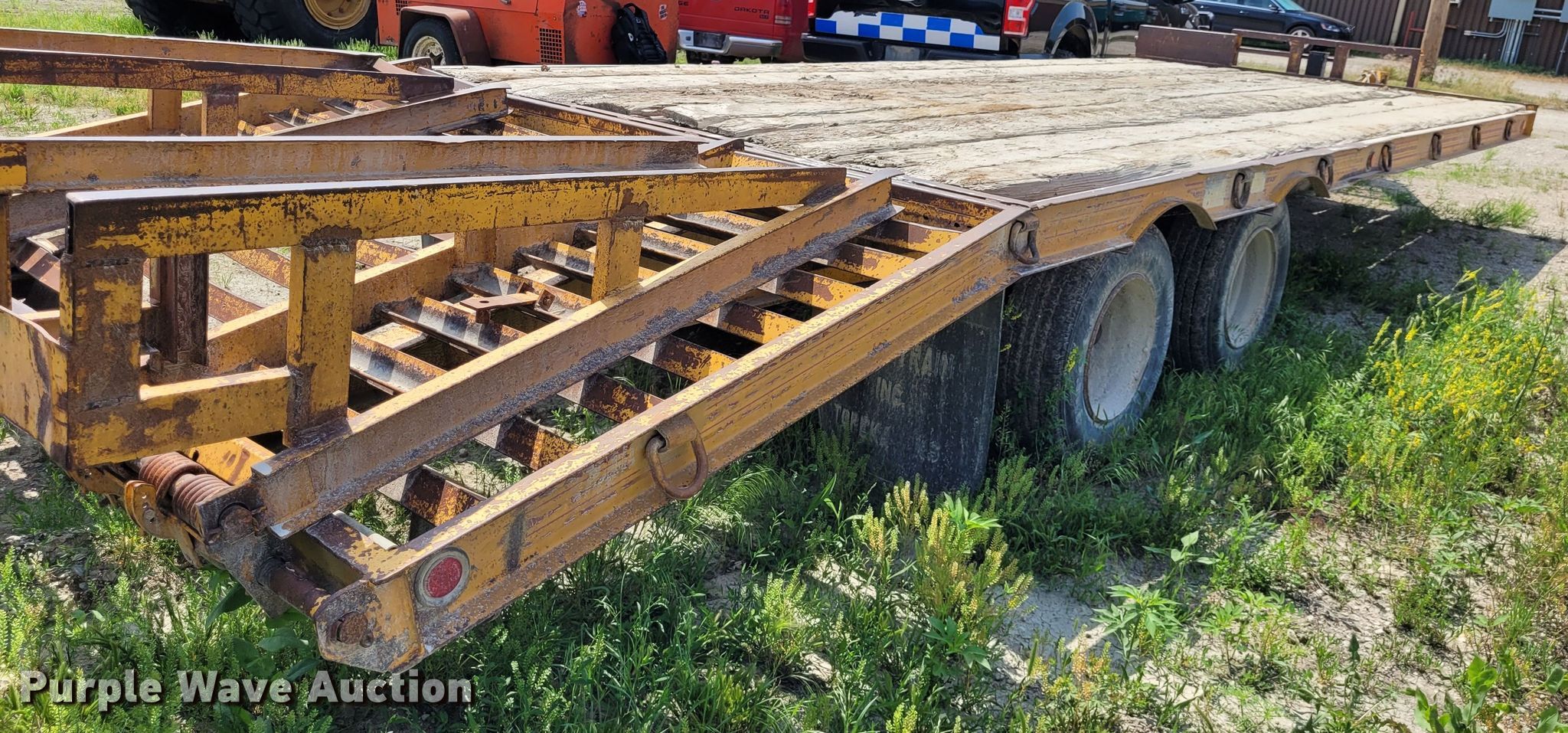 1993 CZ Engineering CZ24KT equipment trailer. VIN: 4CZTD302XN120K343. Dimensions Overall: 31' 6" L x 102" W, Deck: 20' L x 102" W, Tail length: 6', Ramps: Manual Length: 5' 8". Features Deck type: Wood. Chassis Hitch: Pintle, Landing gear: Single, Suspension: Spring, Brakes: Electric, Axles: Tandem, GVWR: 30,000 lbs, GAWR: 12,000 lbs. Tires Steel wheels, Size: 9.50R16.5. Kansas title. Title distribution may be delayed up to 14 days from verification of funds. Emporia, KS 66801