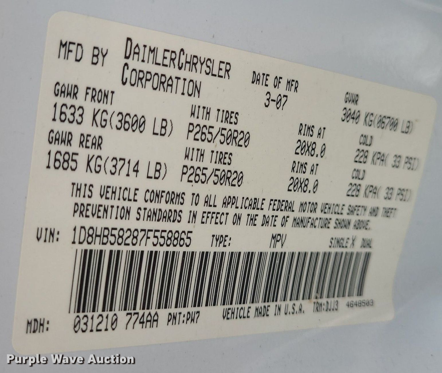 Purple Wave is selling a used Passenger Vehicle in Kansas. This item is a 2007 Dodge Durango Limited SUV with the following: Miles: 93,634 on odometer, VIN: 1D8HB58287F558865