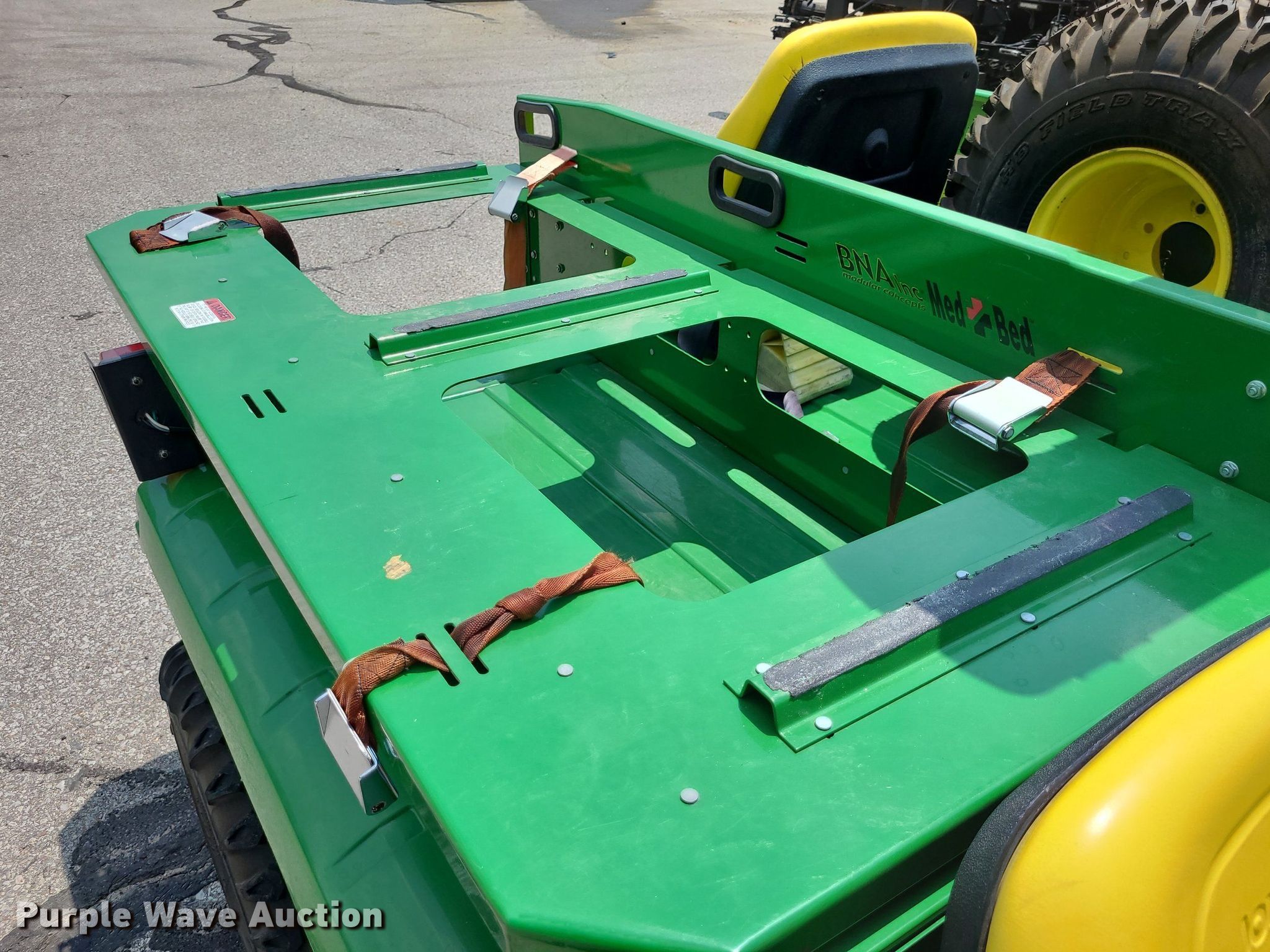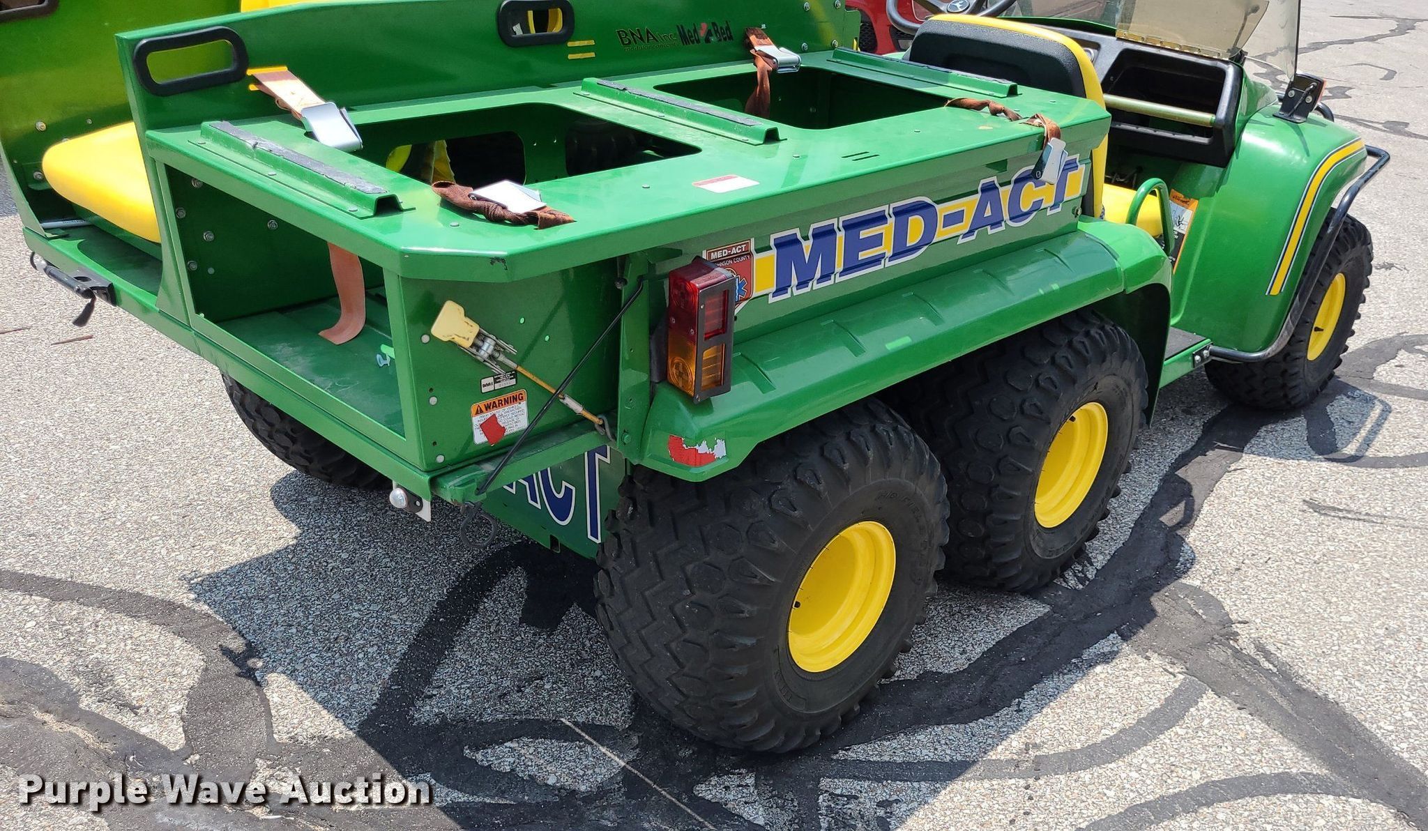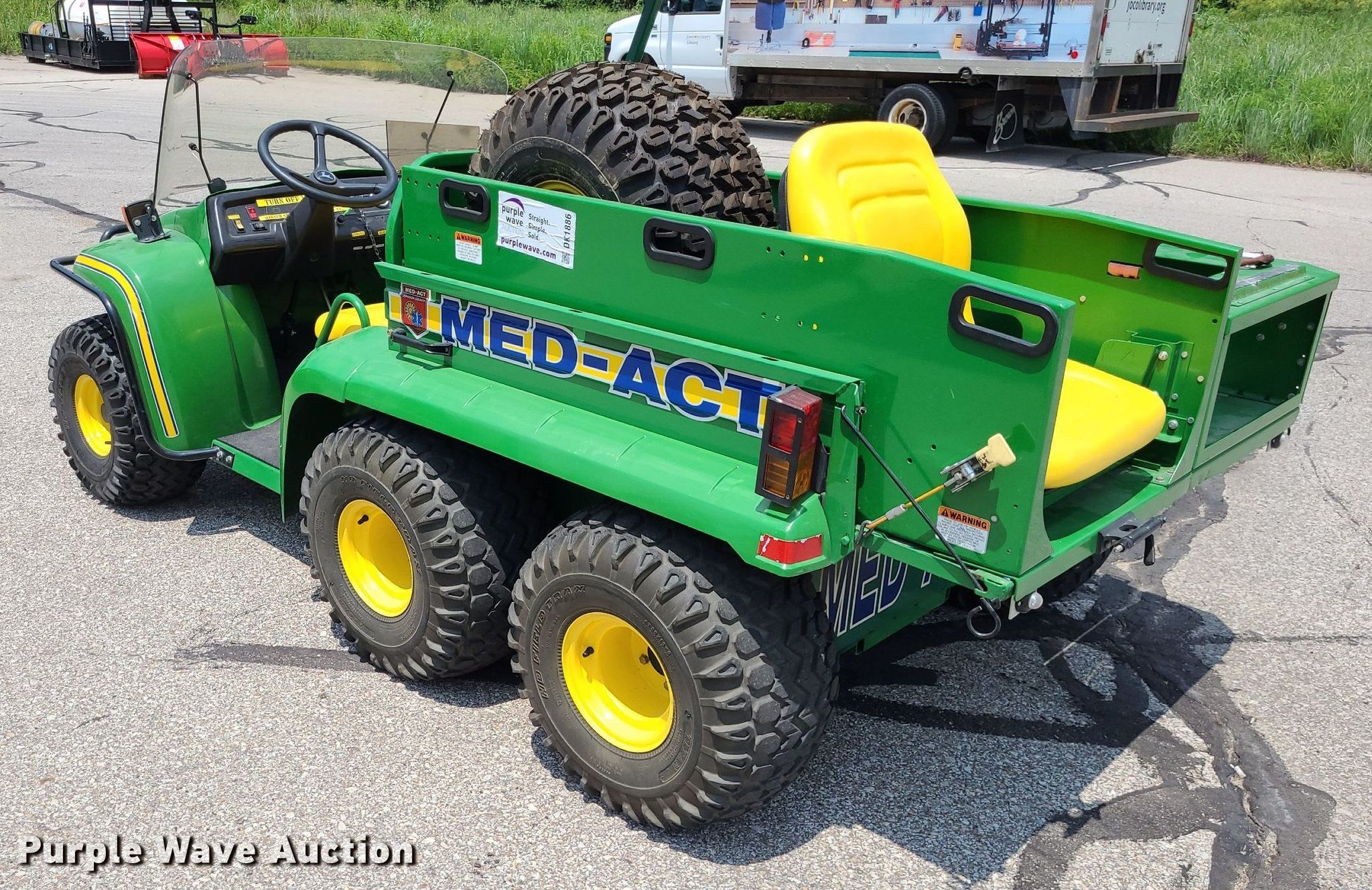 2001 John Deere Gator utility vehicle. Hours: 693 on meter, VIN: W006X4X057463. Engine Fuel type: Gas. Transmission Hydrostatic. Features Med bed BNA, Rear seat, Emergency lights and sirens. Tires Size: 10.00-8, Brand: Titan. Notes Former MED-ACT unit. Transfer of ownership documentation will be a bill of sale. Johnson County, KS. 1800 W Old 56 Hwy. Olathe, KS 66061