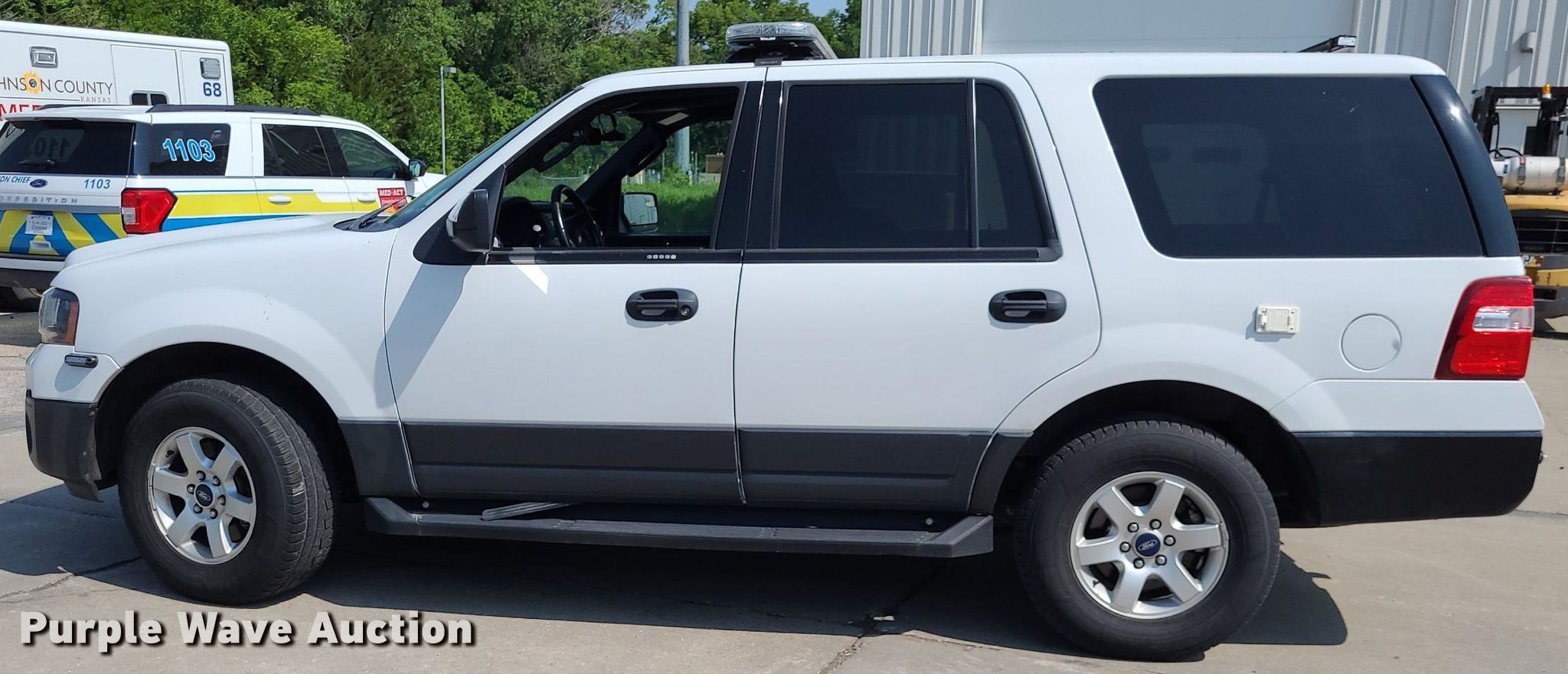 2016 Ford Expedition SUV. Miles: 138,956 on odometer, VIN: 1FMJU1GT2GEF46337, Unit #: EMS1190. Engine Displacement: 3.5L V6 DOHC, Cylinders: 6, Fuel type: Gas. Transmission Automatic, Four wheel drive. Interior AC, Heat, Seat: Power driver, Heated mirrors, Power windows, Power locks, Cruise control, Backup camera, Whelen siren controller. Tires Size: 285/70R17. Kansas title. Johnson County, KS. 1800 W Old 56 Hwy. Olathe, KS 66061