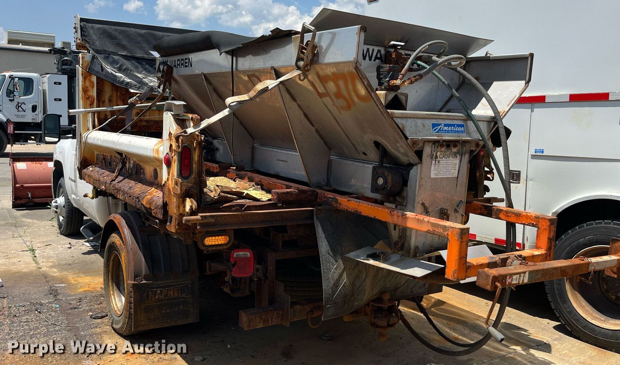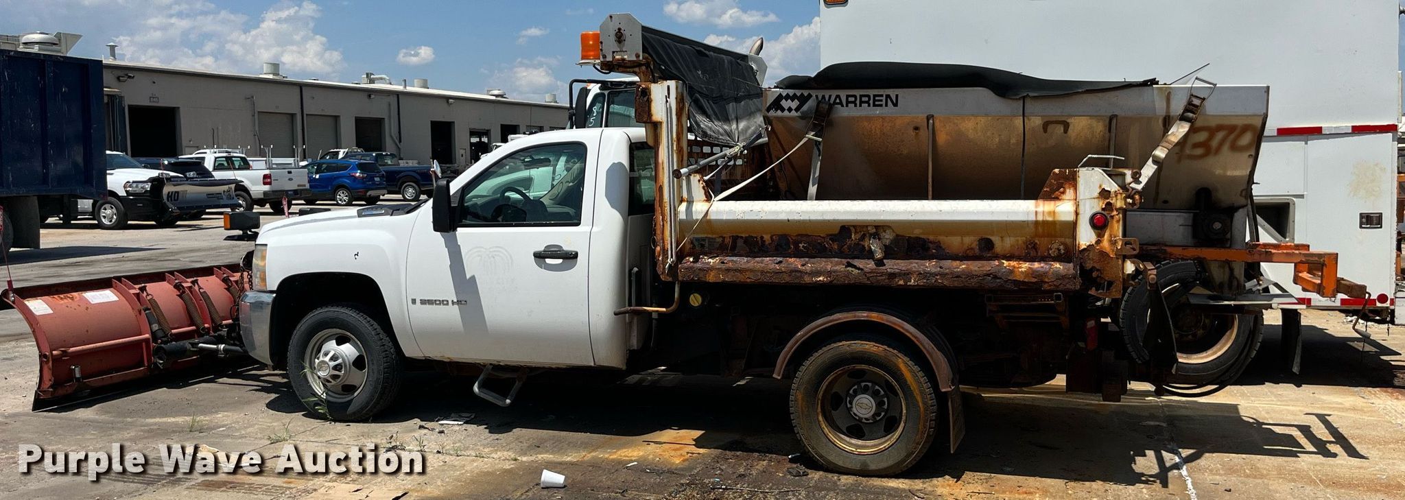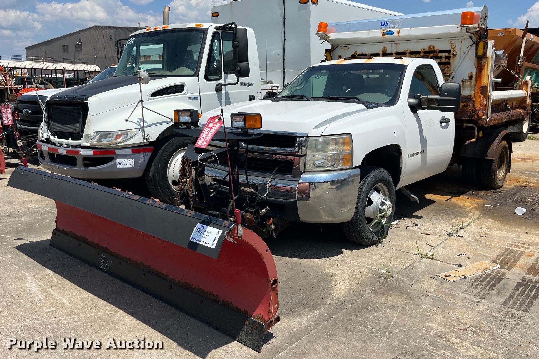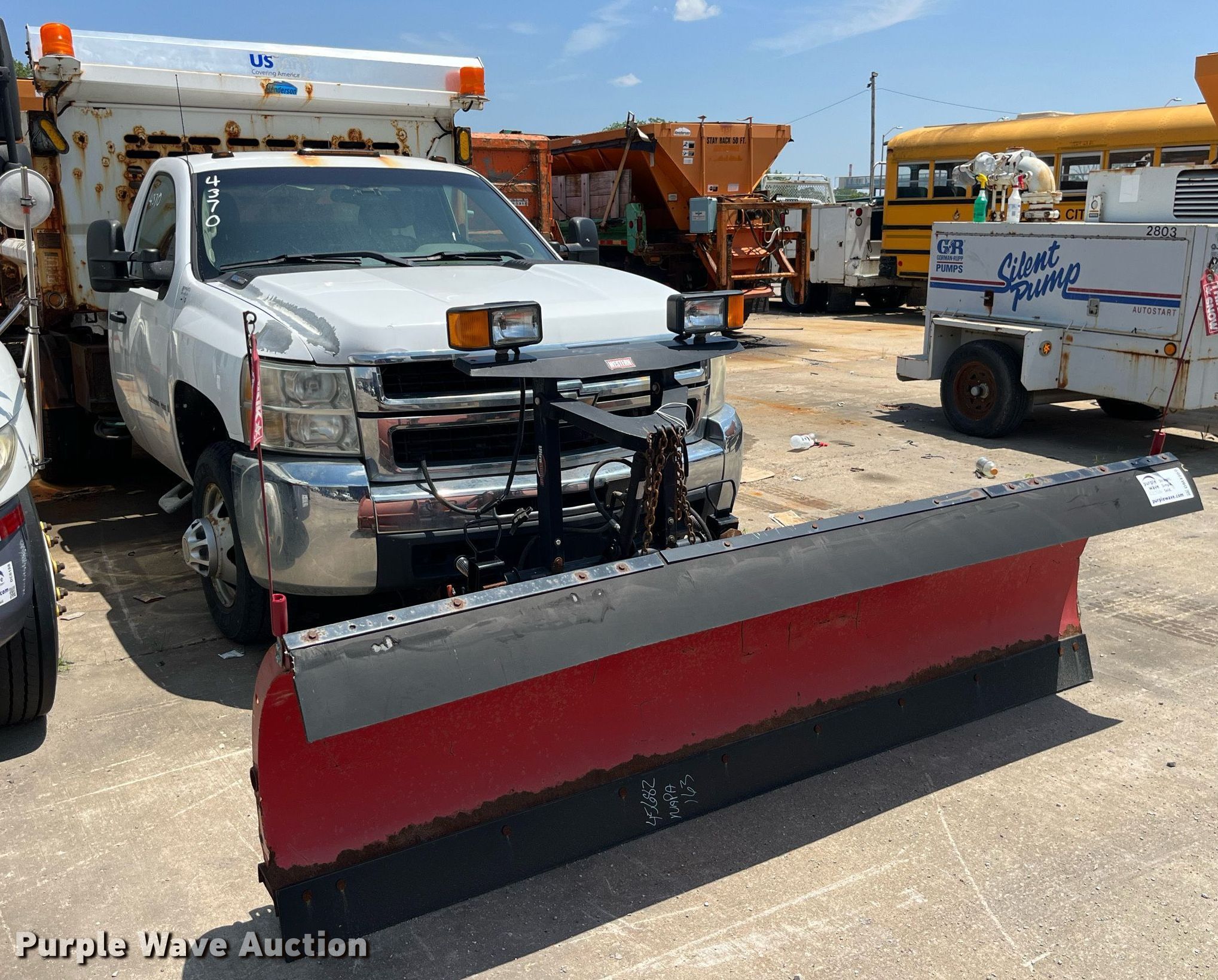 2009 Chevrolet Silverado 3500HD dump bed pickup truck. Miles: Unknown, VIN: 1GBJK74609E108967, Unit #: 4370. Engine Displacement: 6.6L V8 OHV, Cylinders: 8, Fuel type: Diesel. Transmission Automatic, Four wheel drive. Interior AC, Heat, Power windows, Power locks, Cruise control. Features Dump bed Henderson 8x13xQRSxUBxMK3, 94" L x 95" W, Snow plow Western, Width: 108, Spreader Warren AC-1420-7-SS Capacity: 1.5 cu. yd... Tires Size: 225/75R17. Notes Dash warning indicator: Check engine, Clean exhaust filter, Service trailer brake system, Tailgate missing, Dead battery, Unknown operating condition of dump bed, Unknown operating condition of spreader, Unknown operating condition. Missouri title. Mileage has not been verified. Odometer discrepancy will be marked on the title. City of Kansas City. 5304 Municipal Ave. Kansas City, MO 64120