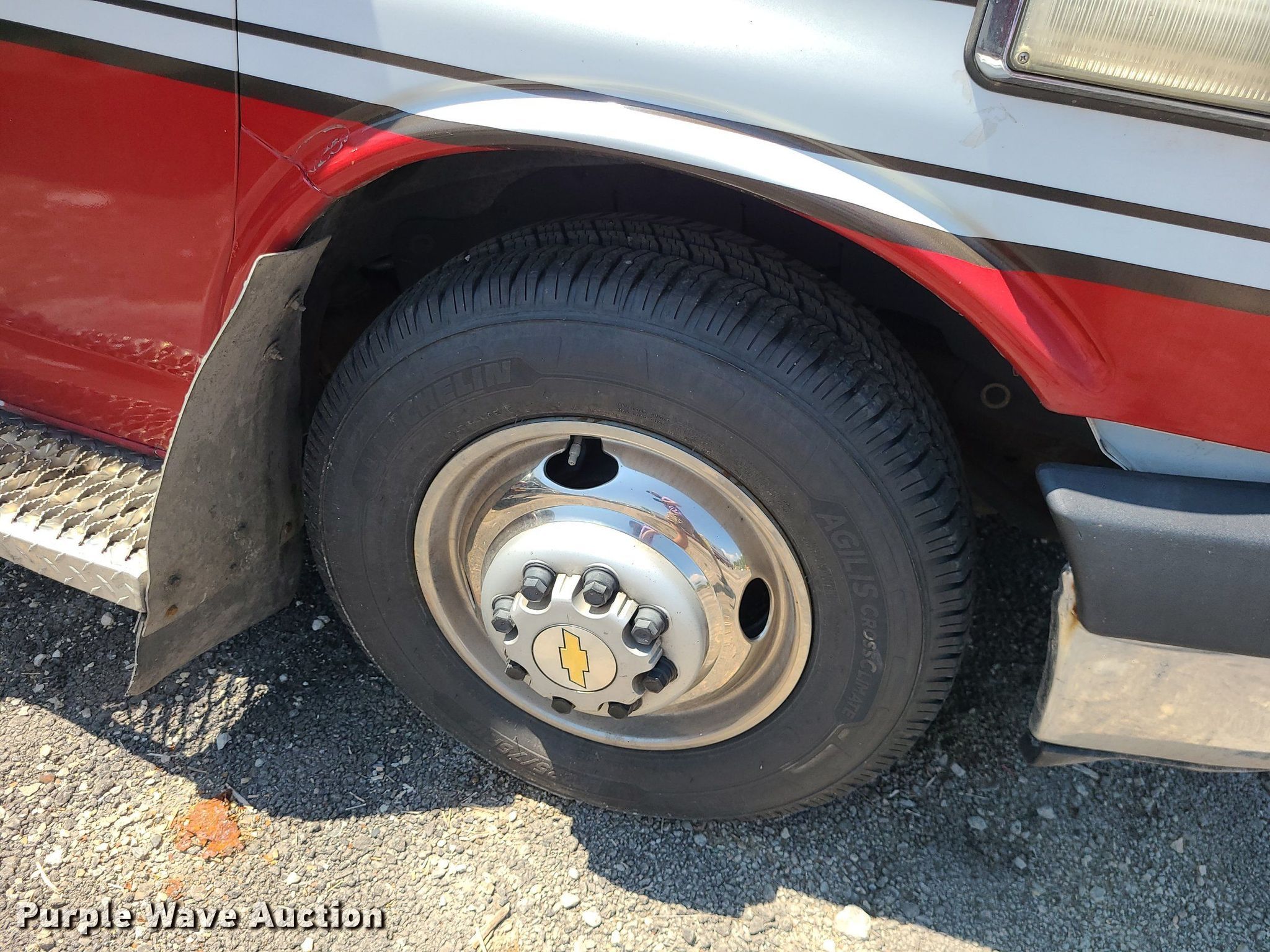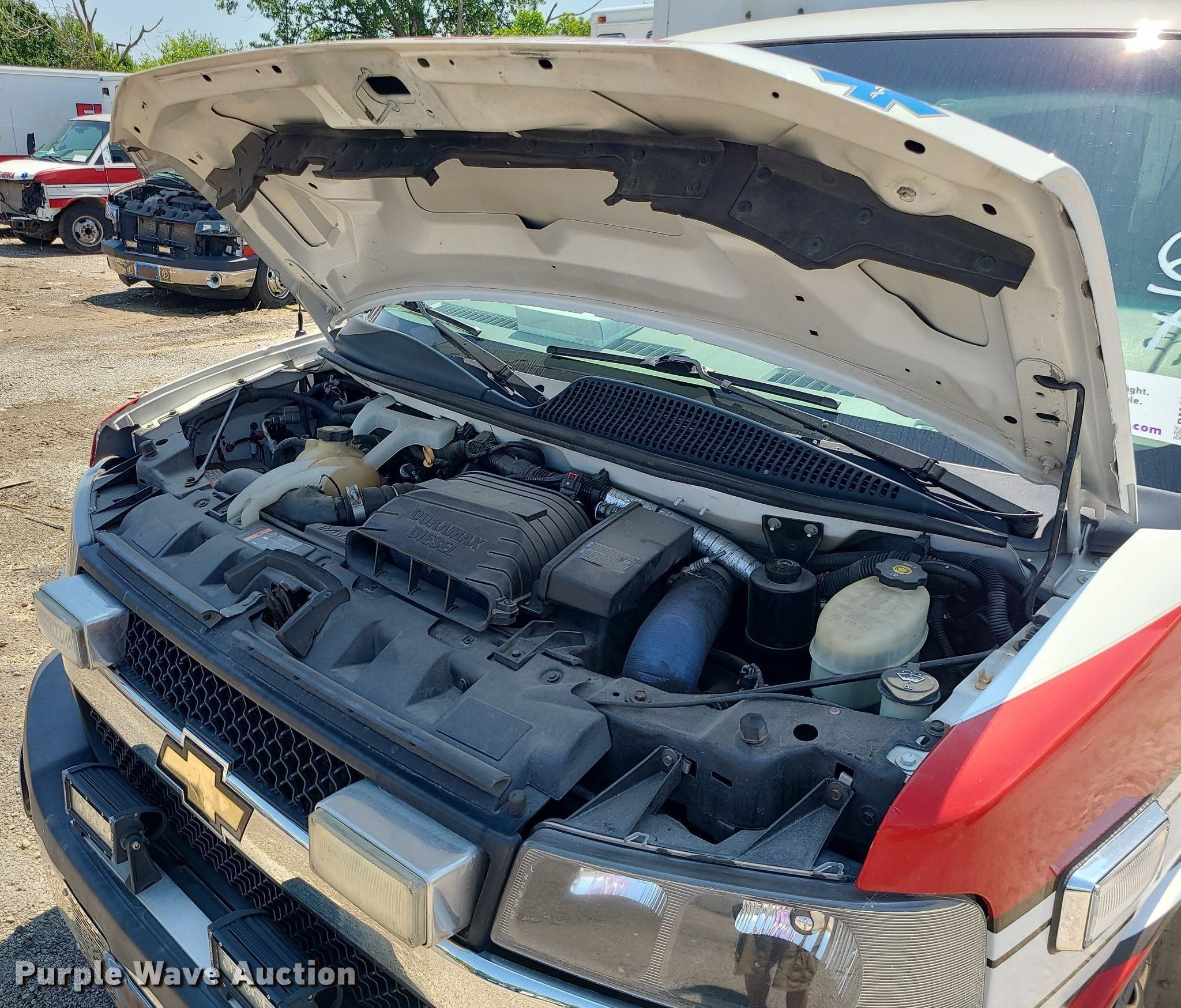 2016 Chevrolet Express G4500 ambulance. Miles: 151,521 on odometer, VIN: 1GB6GUCL5G1138337, Unit #: 5967. Engine Displacement: 6.6L, Cylinders: 8, Fuel type: Diesel. Transmission Automatic. Chassis Axles: Single, Suspension: Spring, Brakes: Hydraulic. Interior AC, Heat, Heated mirrors, Power windows, Power locks, Cruise control. Features Ambulance body AEV, Oxygen hookups. Tires Size: 225/75R16. Notes Dead battery, Unknown operating condition. Missouri municipality owned asset. No title will be provided. Transfer of ownership documentation will be a notarized bill of sale in accordance with MSR 301.260. Bidders are responsible for verifying if this is sufficient to obtain title in their jurisdiction prior to bidding. City of Kansas City. 5304 Municipal Ave. Kansas City, MO 64120