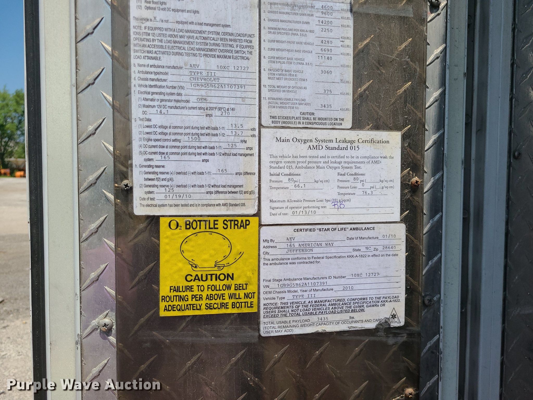 Purple Wave is selling a used Fire Truck or Emergency Vehicle in Missouri. This item is a 2016 Chevrolet Express G4500 ambulance with the following: Miles: 151,521 on odometer, VIN: 1GB6GUCL5G1138337, Unit #: 5967