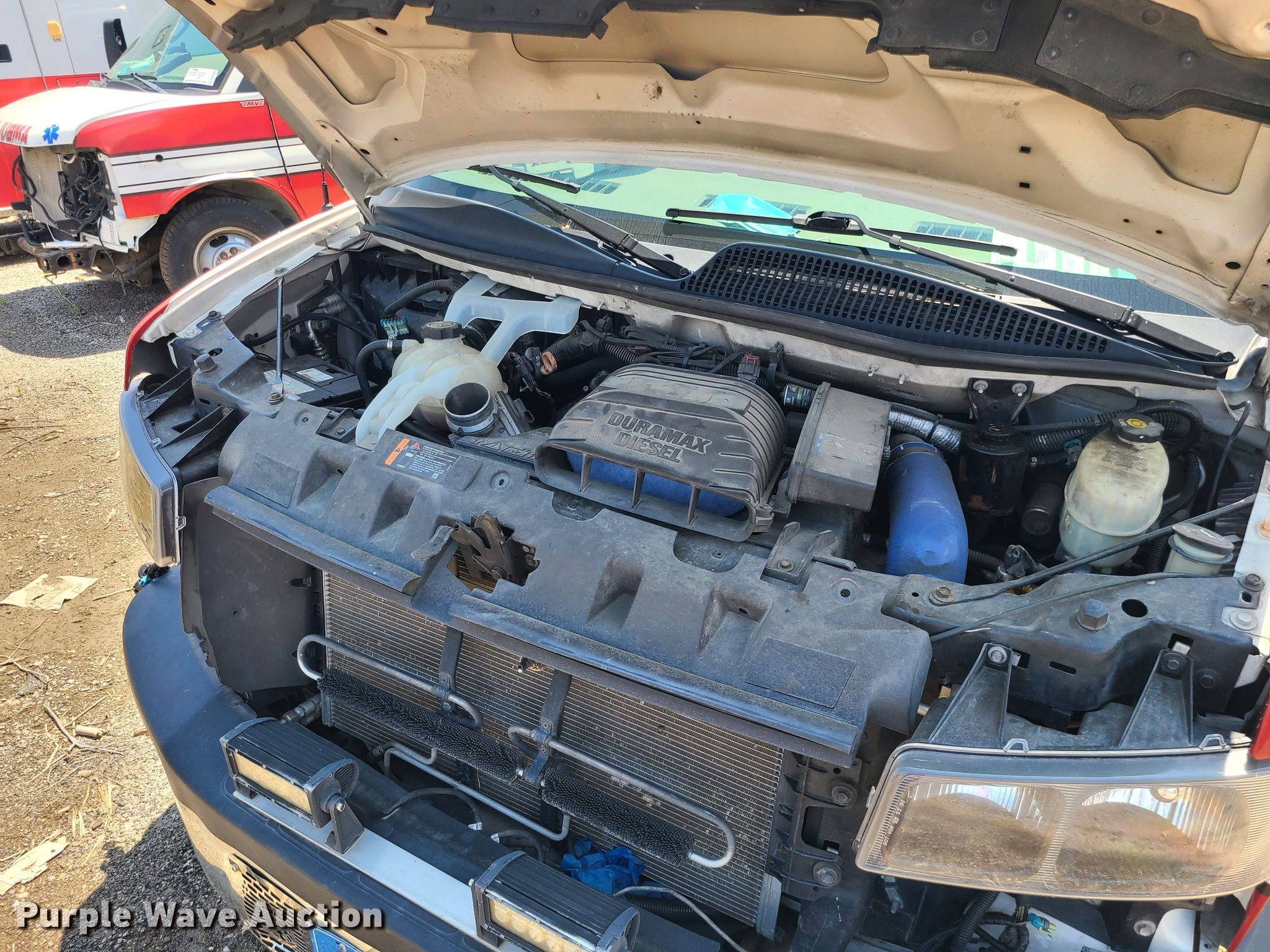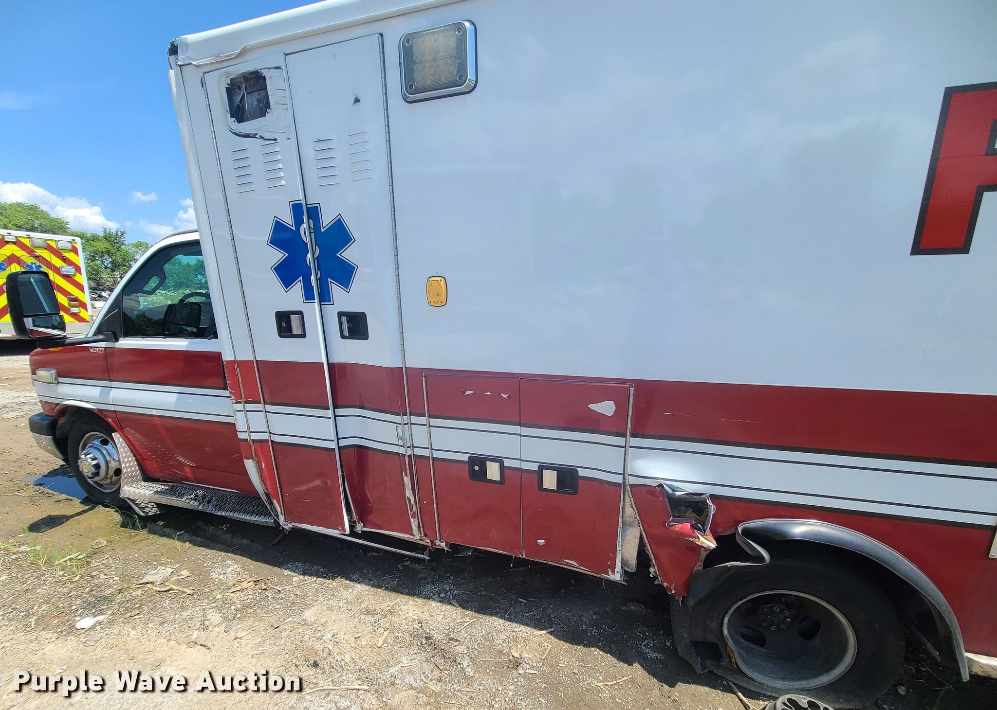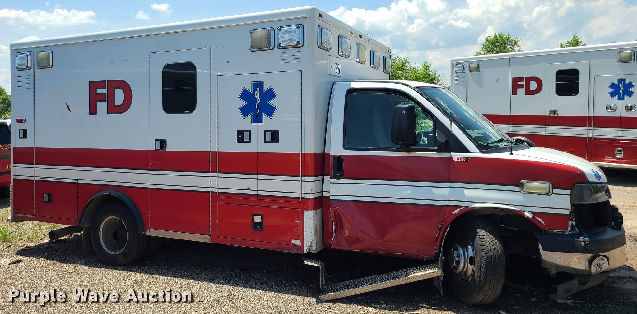 2016 Chevrolet Express G4500 ambulance. Miles: 229,753 on odometer, VIN: 1GB6GUCLXG1138625. Engine Displacement: 6.6L, Cylinders: 8, Fuel type: Diesel. Transmission Automatic. Chassis Axles: Single, Suspension: Spring, Brakes: Hydraulic. Interior AC, Heat, Heated mirrors, Power windows, Power locks, Cruise control. Features Ambulance body AEV, Oxygen hookups. Tires Size: 225/75R16. Notes Wreck damage, Unknown operating condition. Missouri municipality owned asset. No title will be provided. Transfer of ownership documentation will be a notarized bill of sale in accordance with MSR 301.260. Bidders are responsible for verifying if this is sufficient to obtain title in their jurisdiction prior to bidding. City of Kansas City. 5304 Municipal Ave. Kansas City, MO 64120