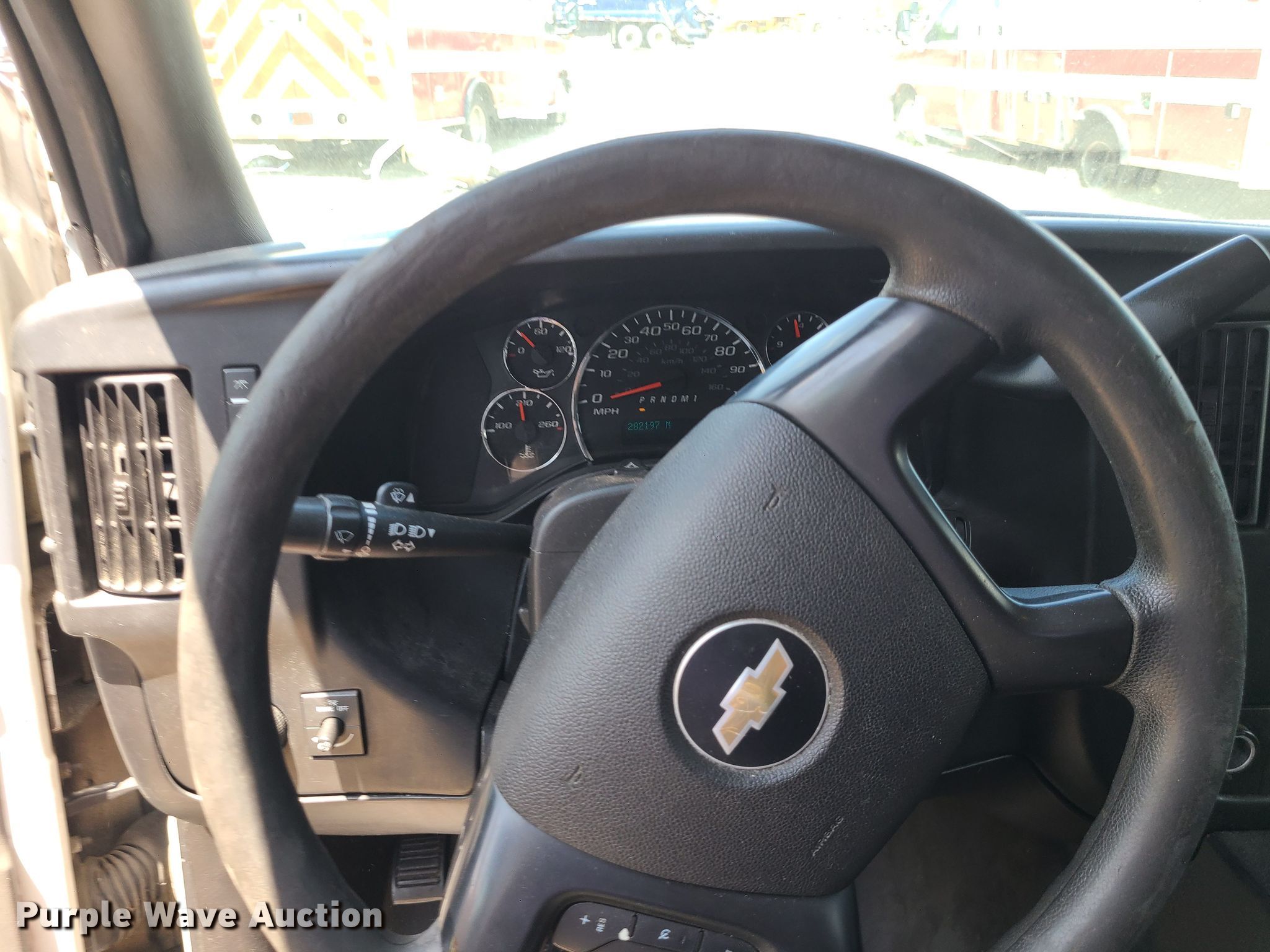 2014 Chevrolet Express G4500 ambulance. Miles: 282,197 on odometer, VIN: 1GB6G5CL6E1171852, Unit #: 5912. Engine Displacement: 6.6L, Cylinders: 8, Fuel type: Diesel. Transmission Automatic. Chassis Axles: Single, Suspension: Spring, Brakes: Hydraulic. Interior AC, Heat, Heated mirrors, Power windows, Power locks, Cruise control. Features Ambulance body AEV. Tires Size: 225/75R16. Notes Dash warning indicator: Brake, Dead battery, Transmission issues, non-operational forward gears. Missouri title. City of Kansas City. 5304 Municipal Ave. Kansas City, MO 64120