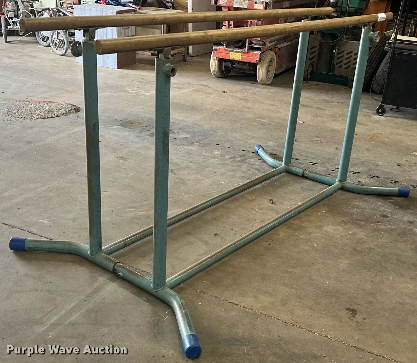 Purple Wave is selling a used Sporting Goods in Oklahoma. This item is a Parallel bars with the following: Length: 8', Adjustable height and width