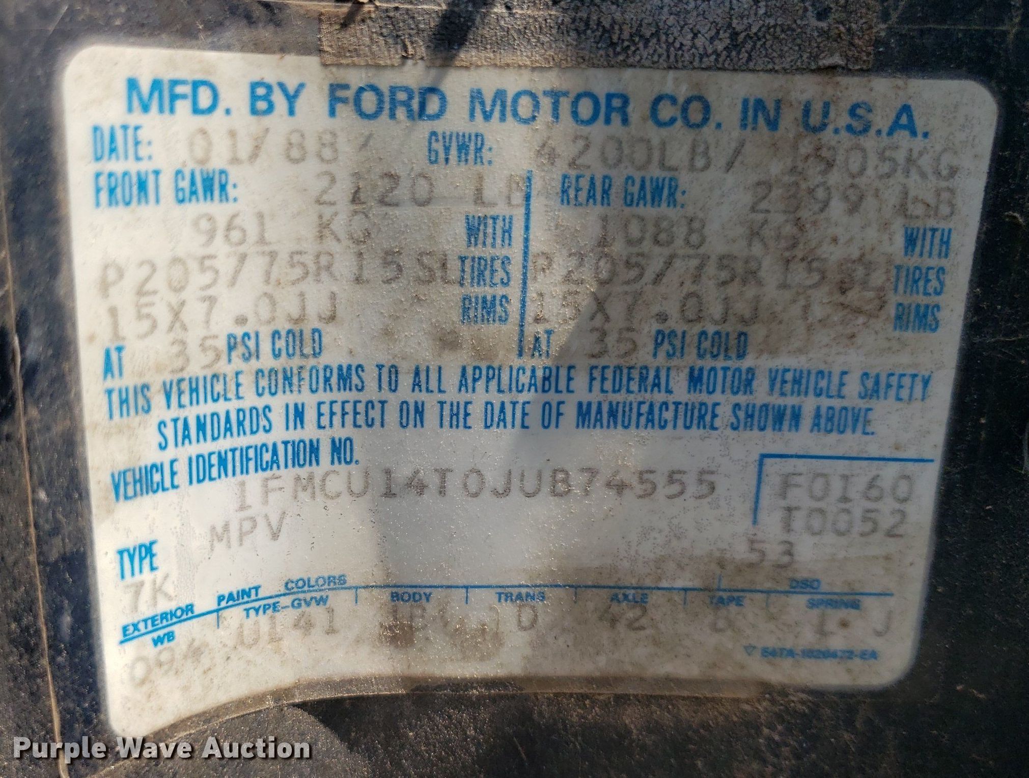 - VIN: 1FMCU14T0JUB74555