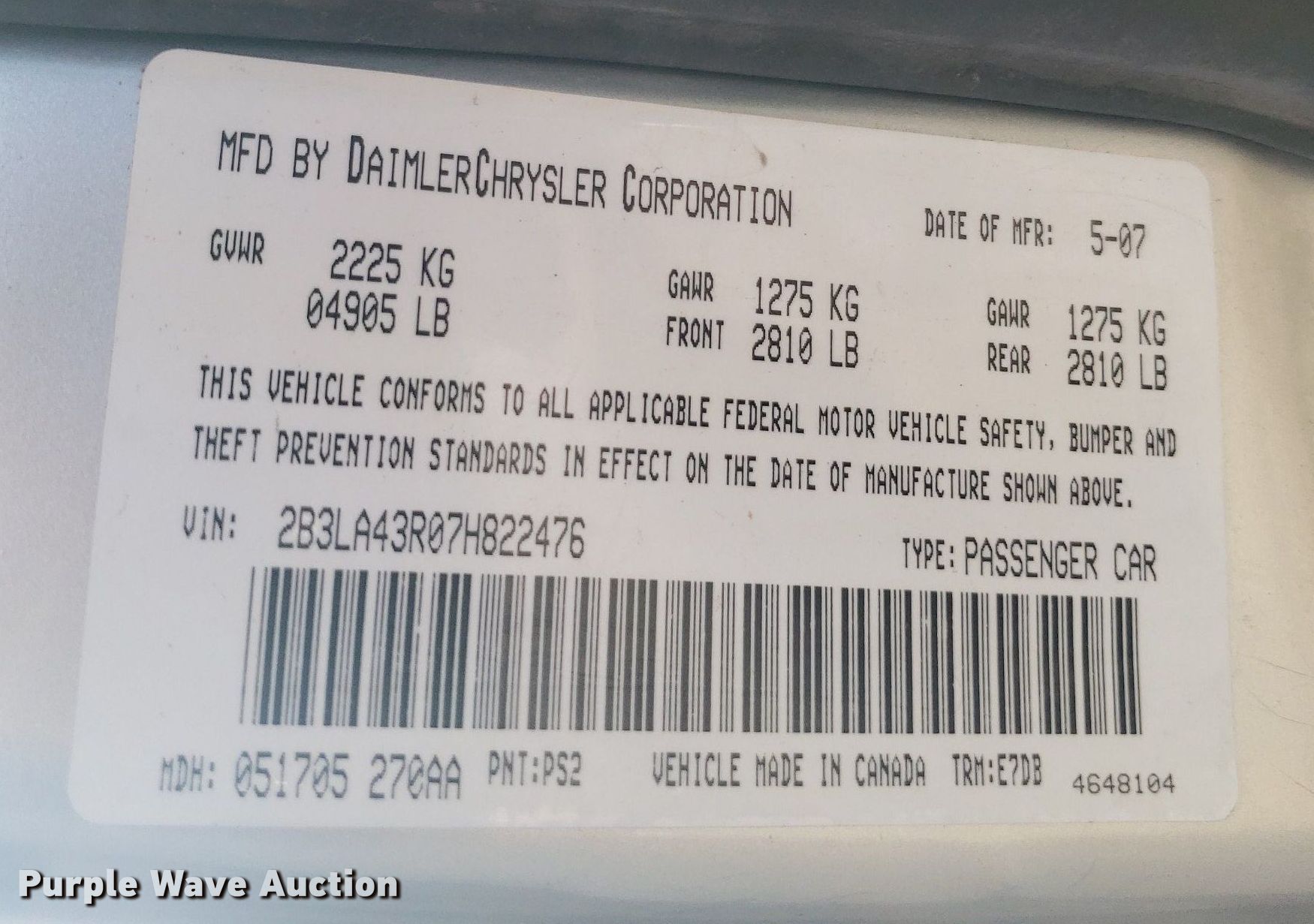 Purple Wave is selling a used Passenger Vehicle in Kansas. This item is a 2008 Dodge Charger with the following: Miles: 116,493 on odometer, VIN: 2B3LA43R07H822476
