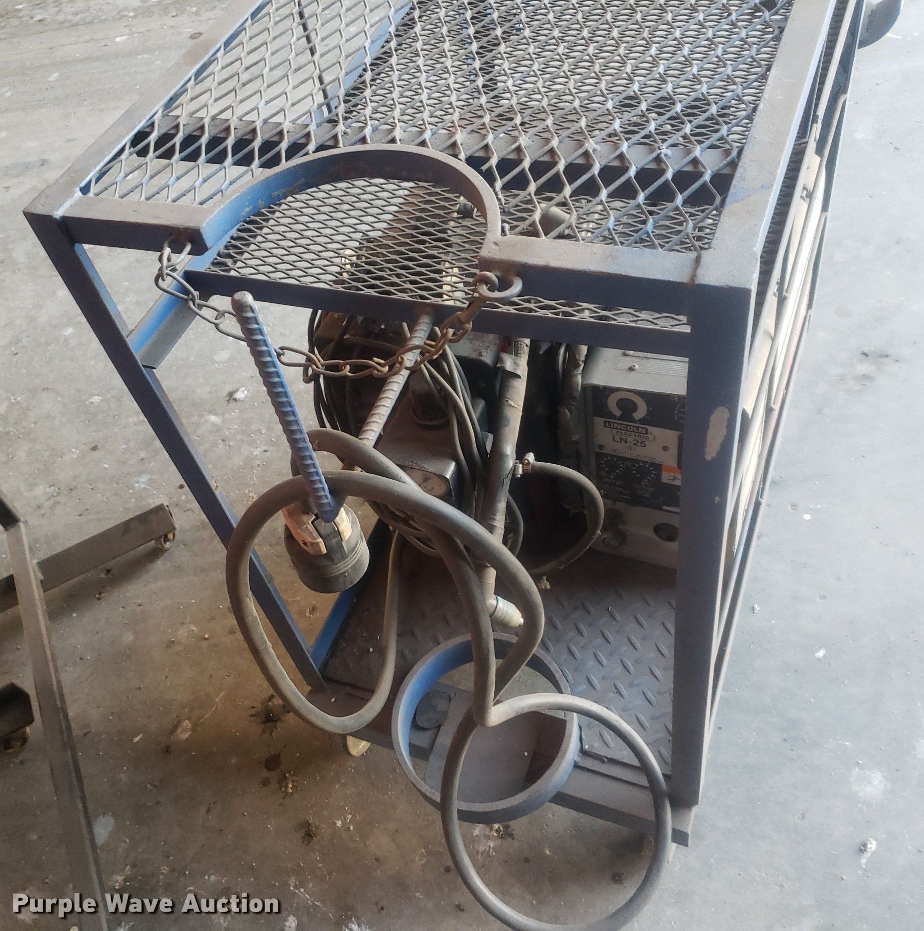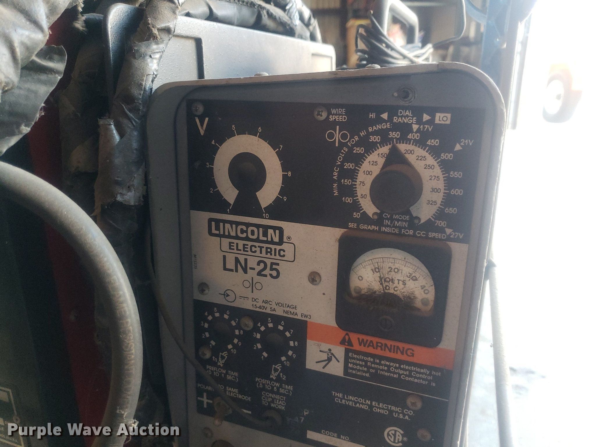 Purple Wave is selling a used Tools in Kansas. This item is a Tools with the following: Airco plasma cutter, Volts: 230, Phase: Single, Lincoln Electric LN-25 welder, Capabilities: DC, Arc, Wire, Stick, (2) welding shields, Cart