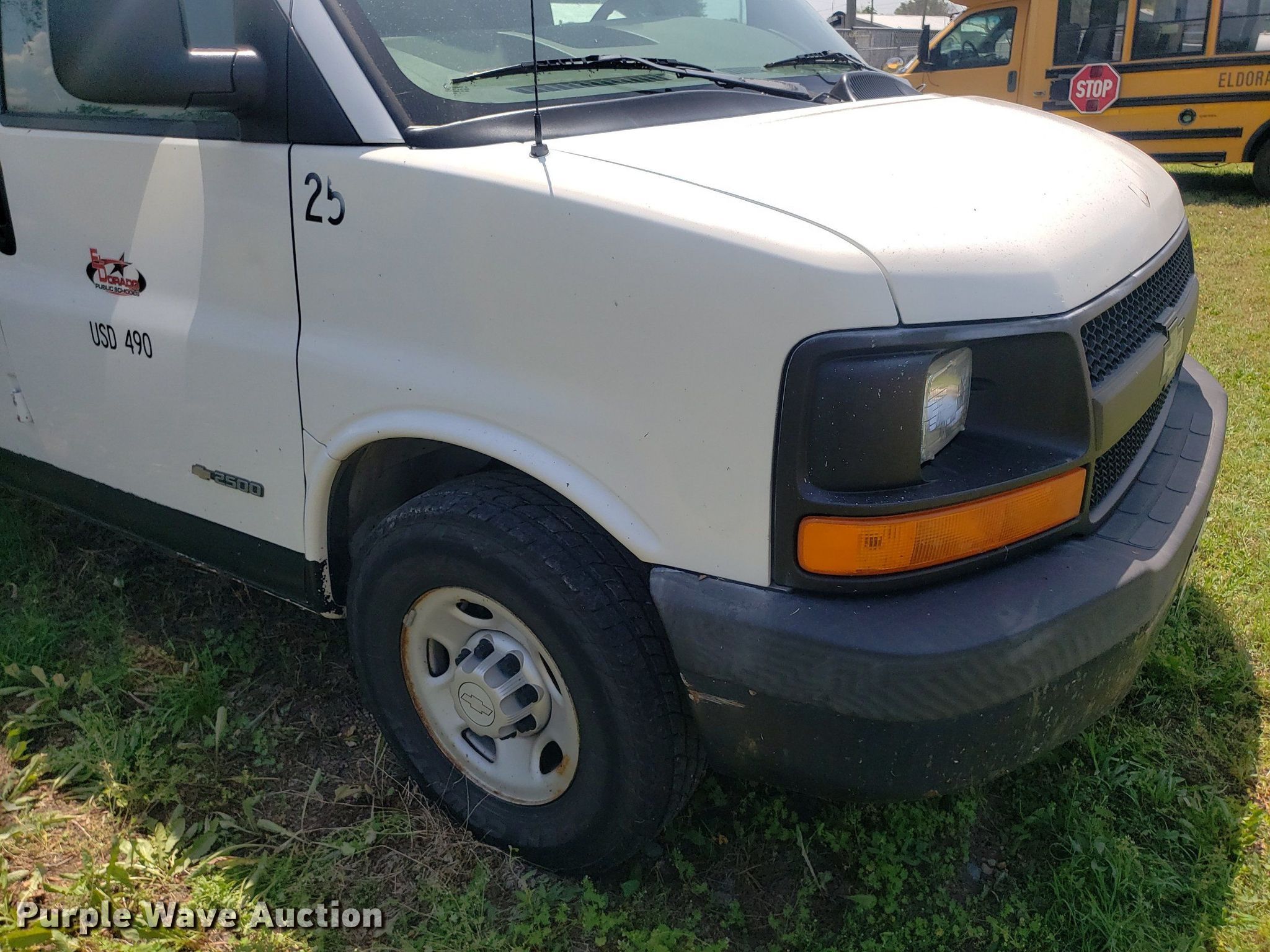 2006 Chevrolet Express 2500 van. Miles: 154,937 on odometer, VIN: 1GCGG25V661181361. Engine Displacement: 4.8L V8 OHV, Cylinders: 8, Fuel type: Gas. Transmission Automatic. Interior AC, Heat. Tires Size: 245/75R16. Notes Dead battery, Contents not included, Engine issues, possible lifter issues. Kansas title. Title distribution may be delayed up to 14 days from verification of funds. USD 490 El Dorado Bus Barn. 1518 W 6th Ave. El Dorado, KS 67042