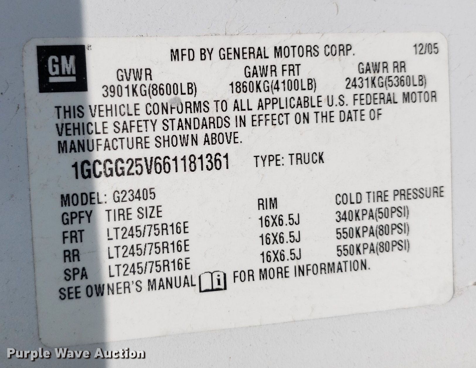 Purple Wave is selling a used 3/4 or 1 Ton Pickup or Van in Kansas. This item is a 2006 Chevrolet Express 2500 van with the following: Miles: 154,937 on odometer, VIN: 1GCGG25V661181361