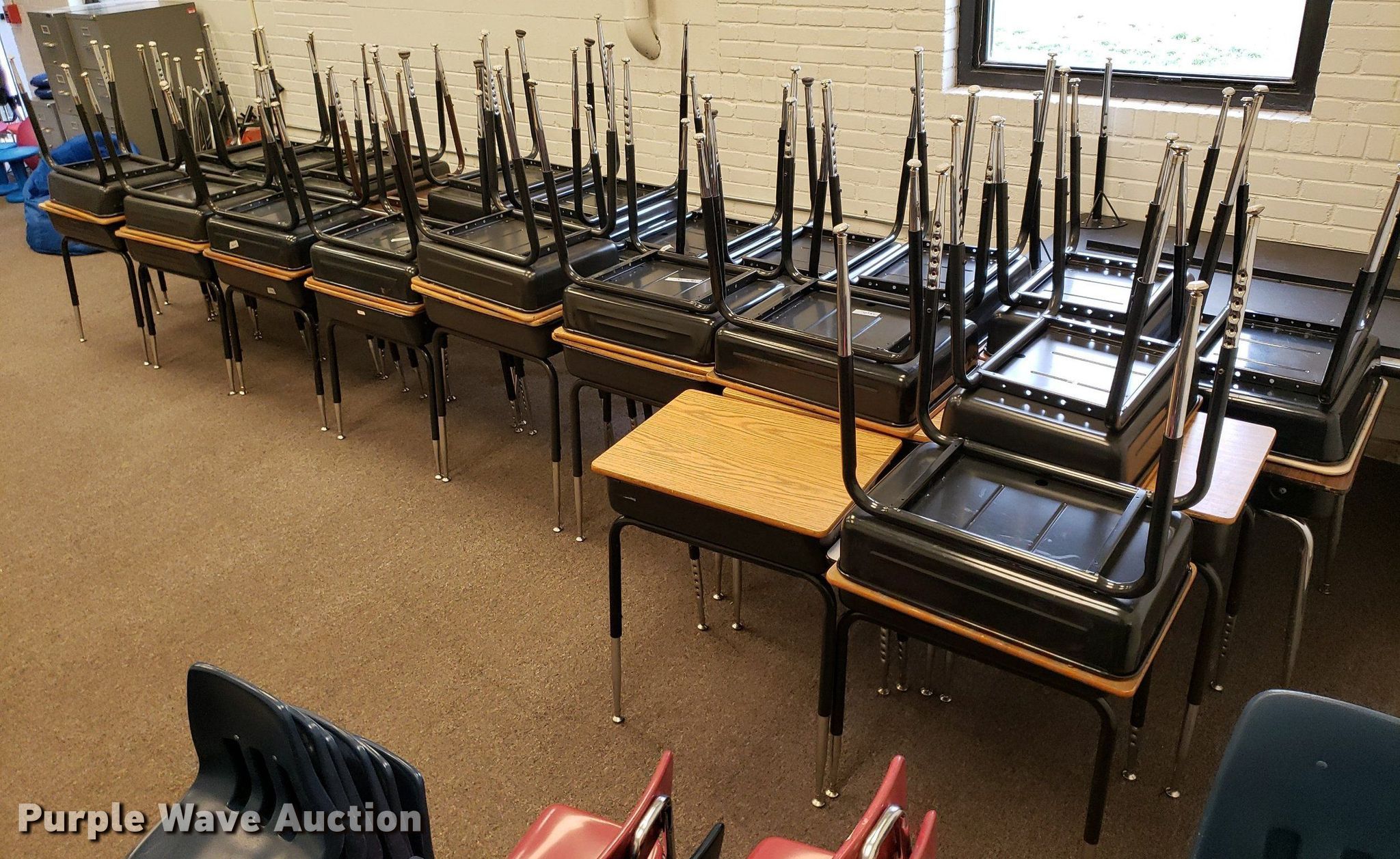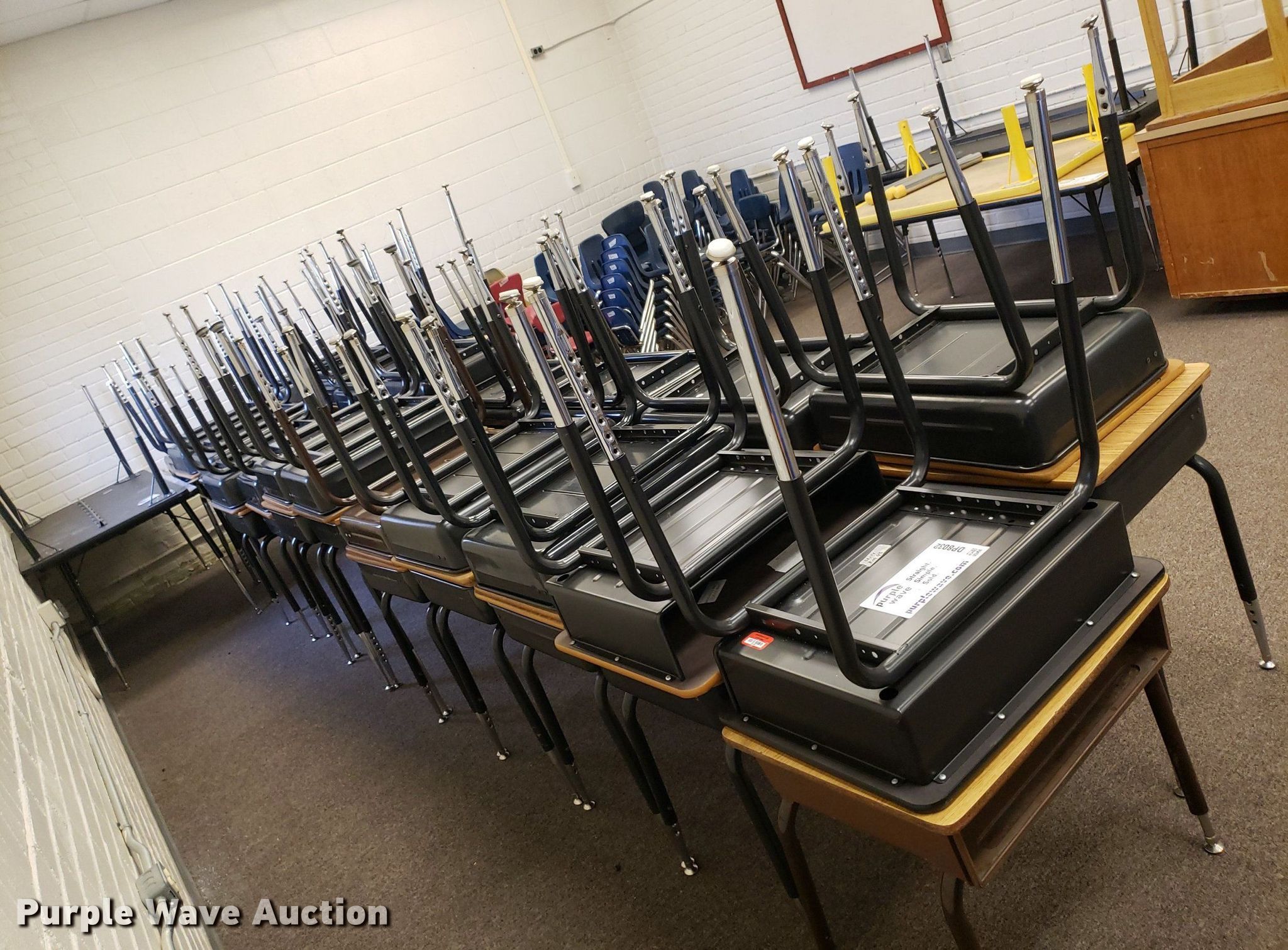 Purple Wave is selling a used Furniture in Kansas. This item is a Furniture with the following: (43) desks, (2) tables