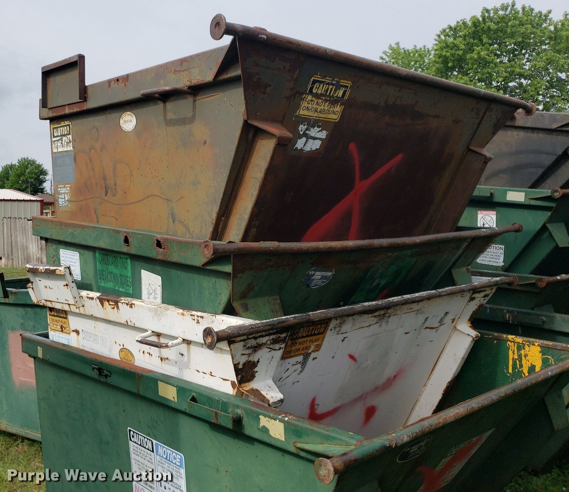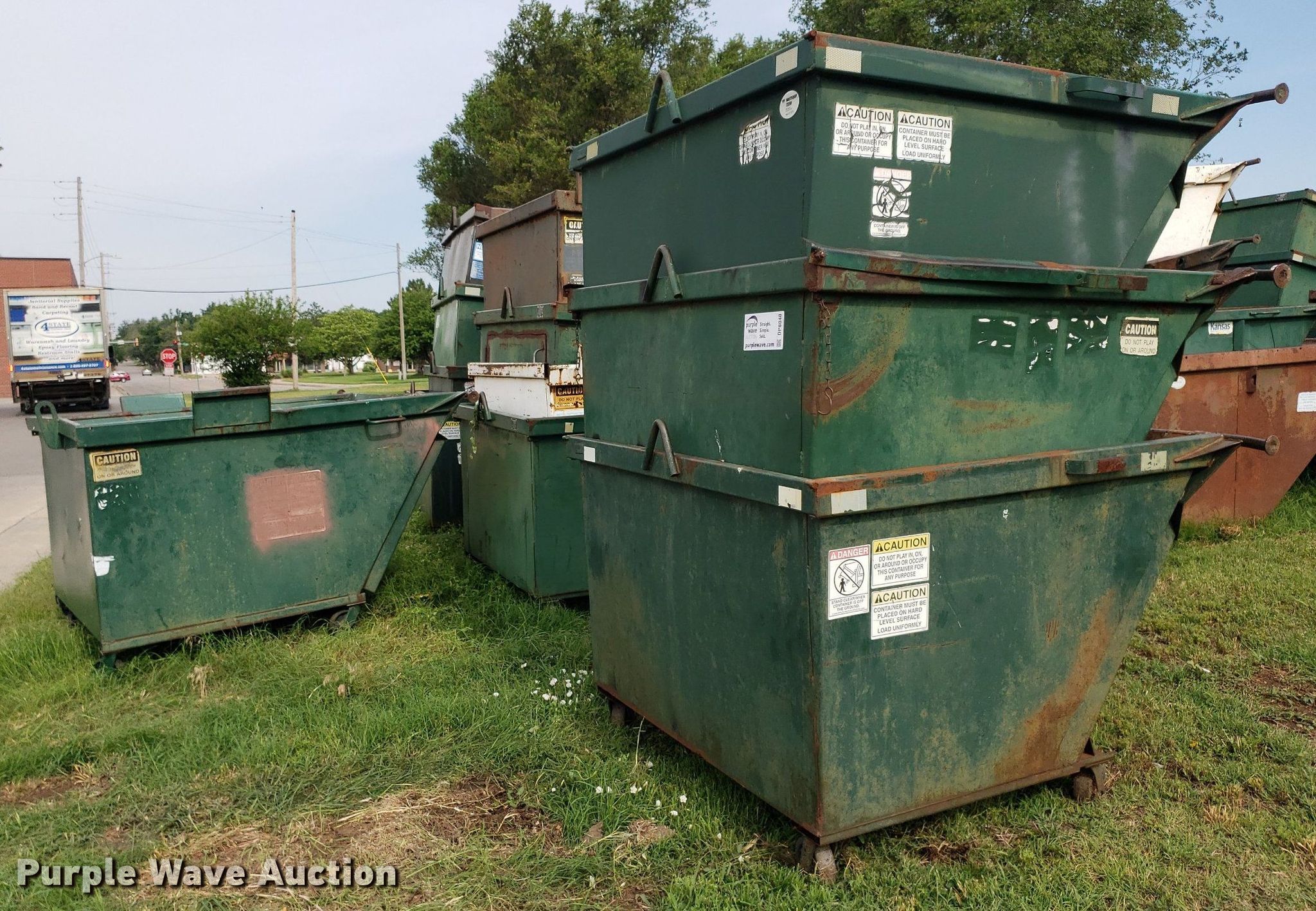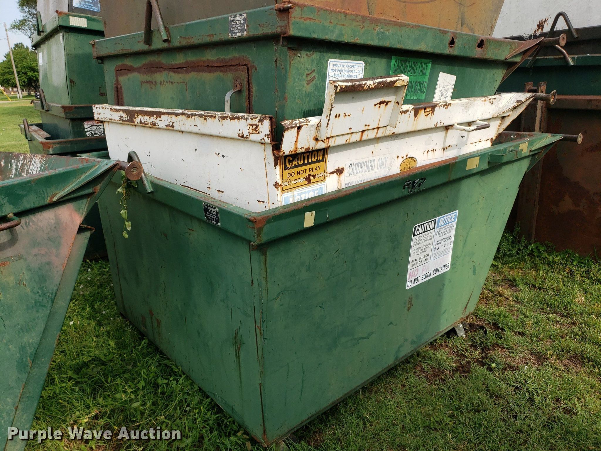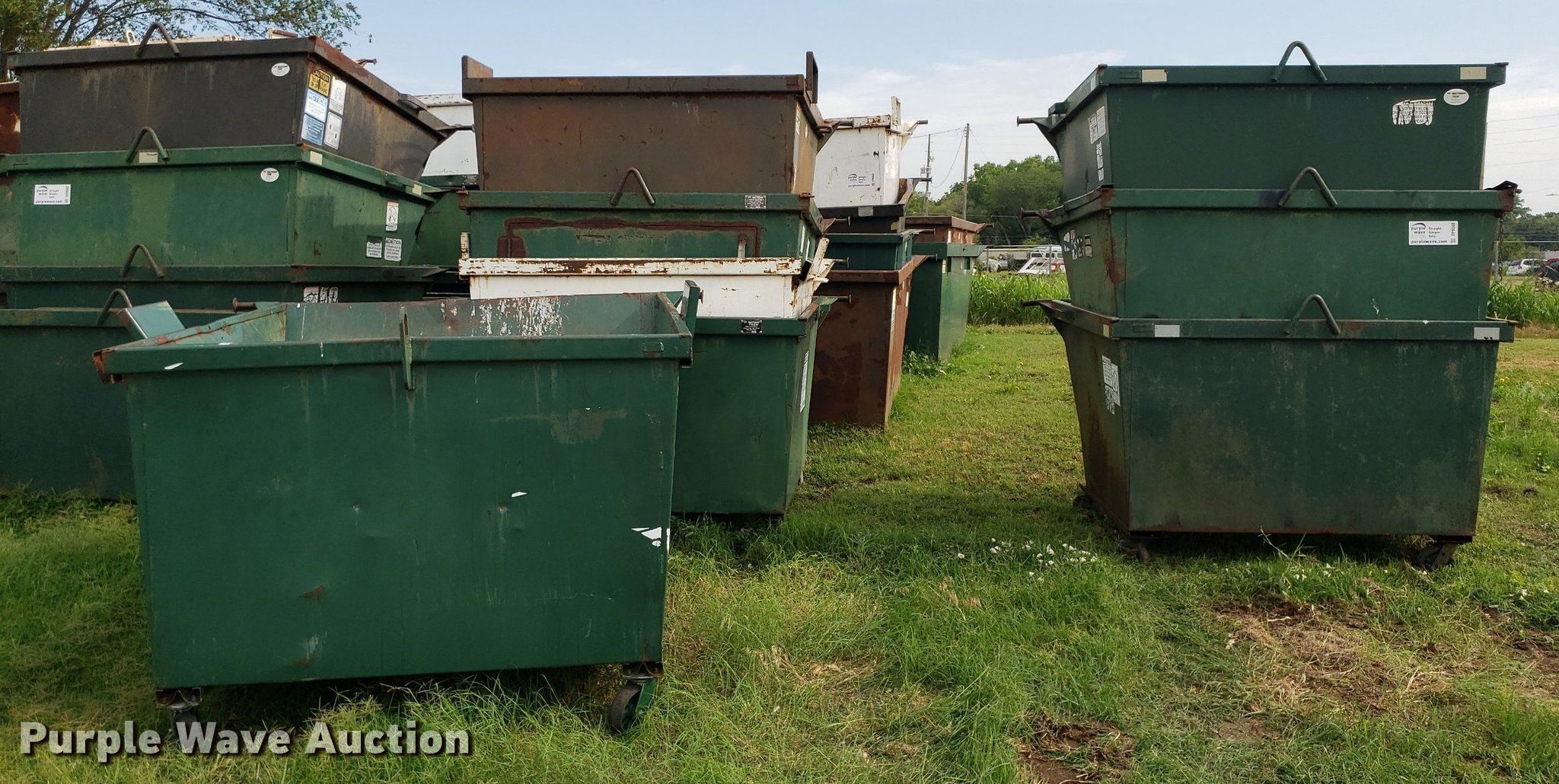 Purple Wave is selling a used Refuse or Compaction Equip. in Kansas. This item is a (8) dumpsters with the following: Bottoms rusted out