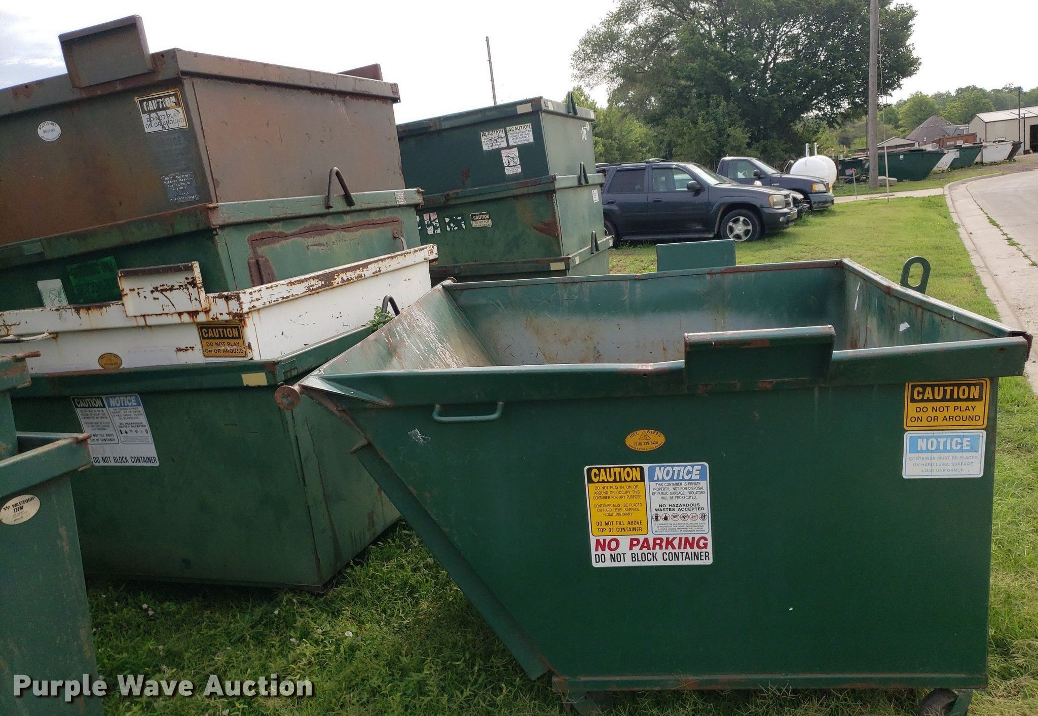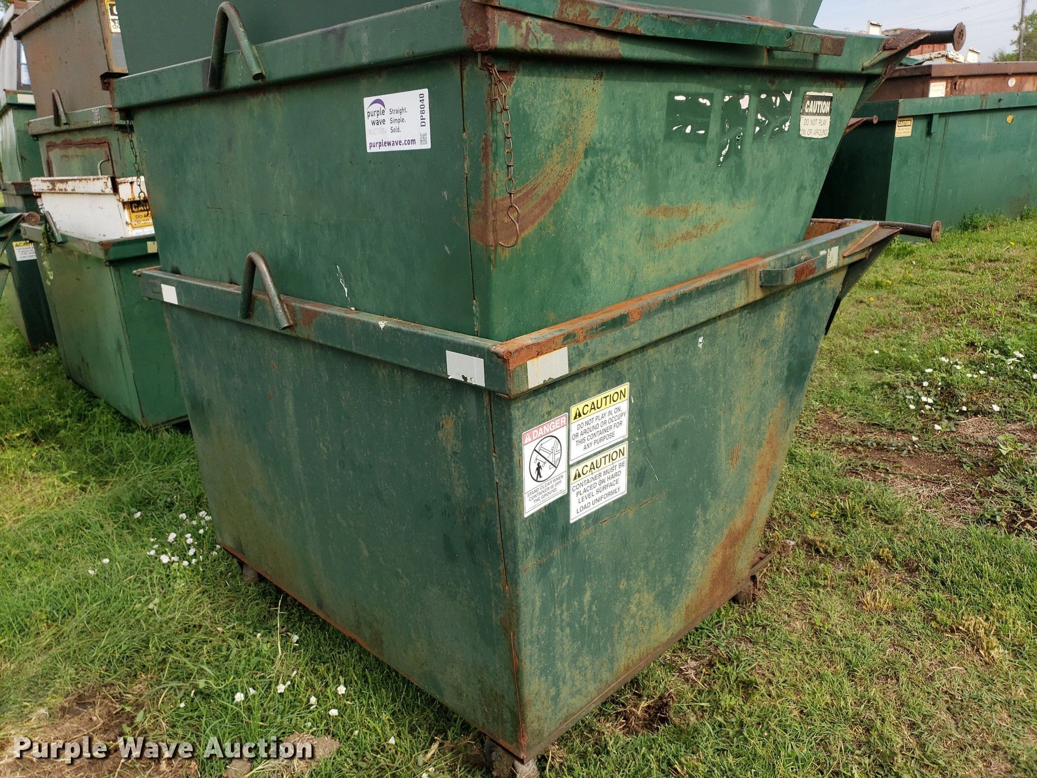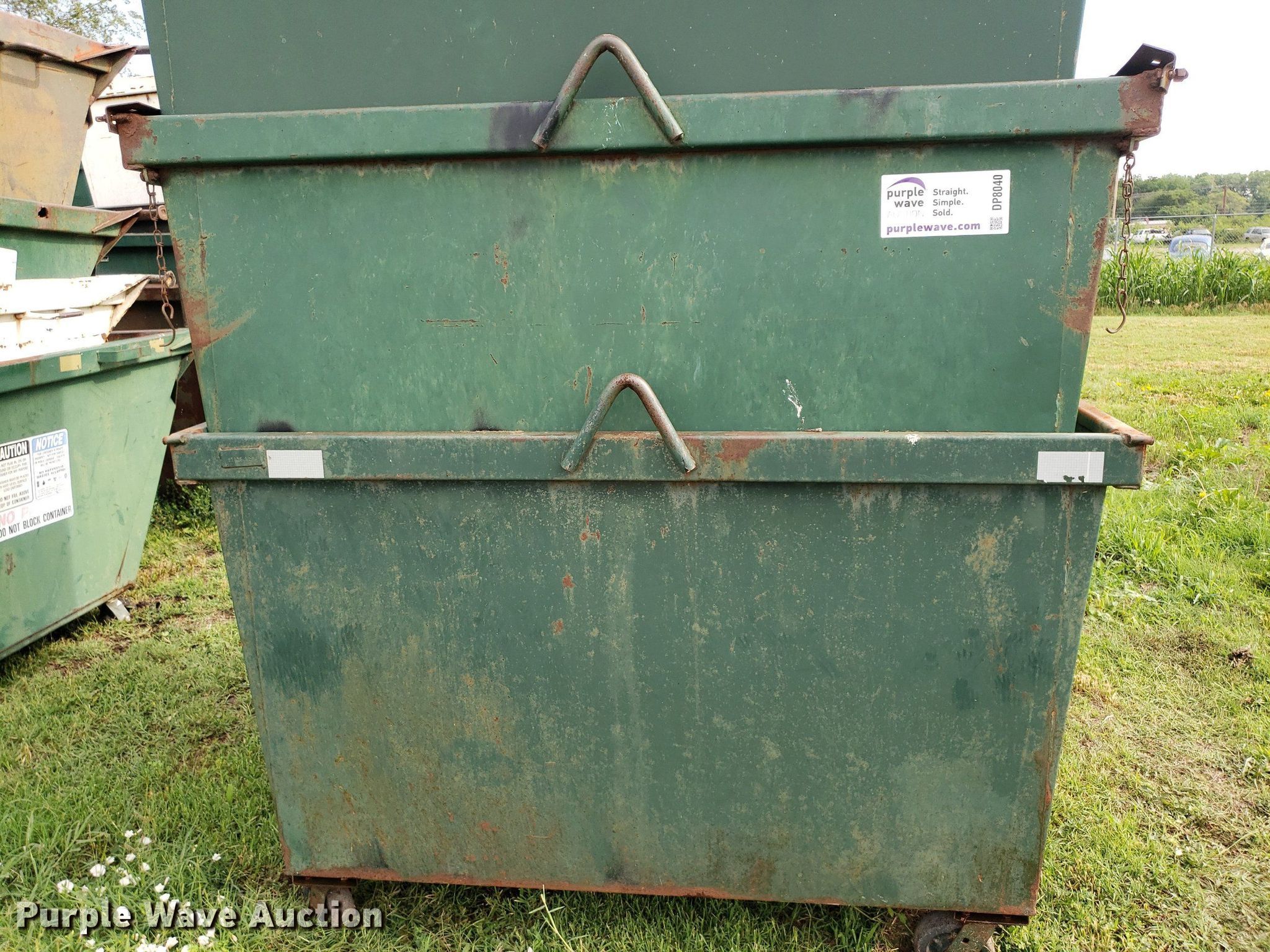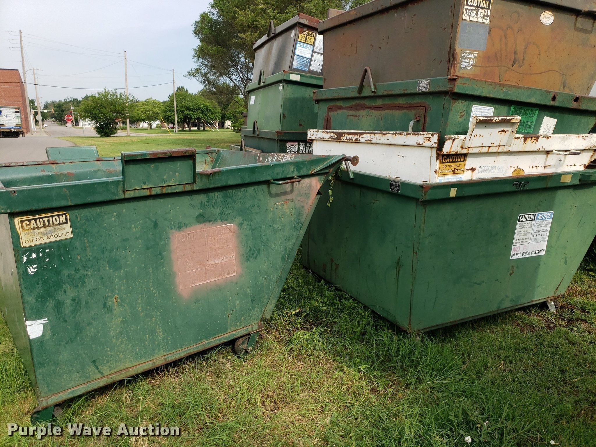 Purple Wave is selling a used Refuse or Compaction Equip. in Kansas. This item is a (8) dumpsters with the following: Bottoms rusted out