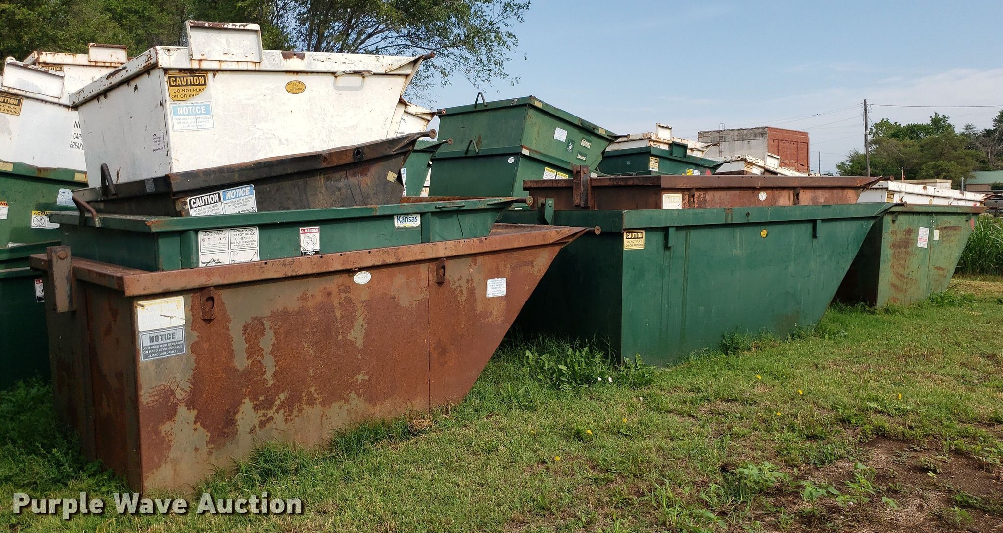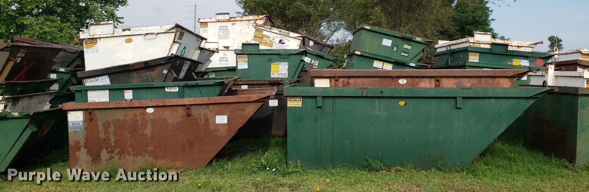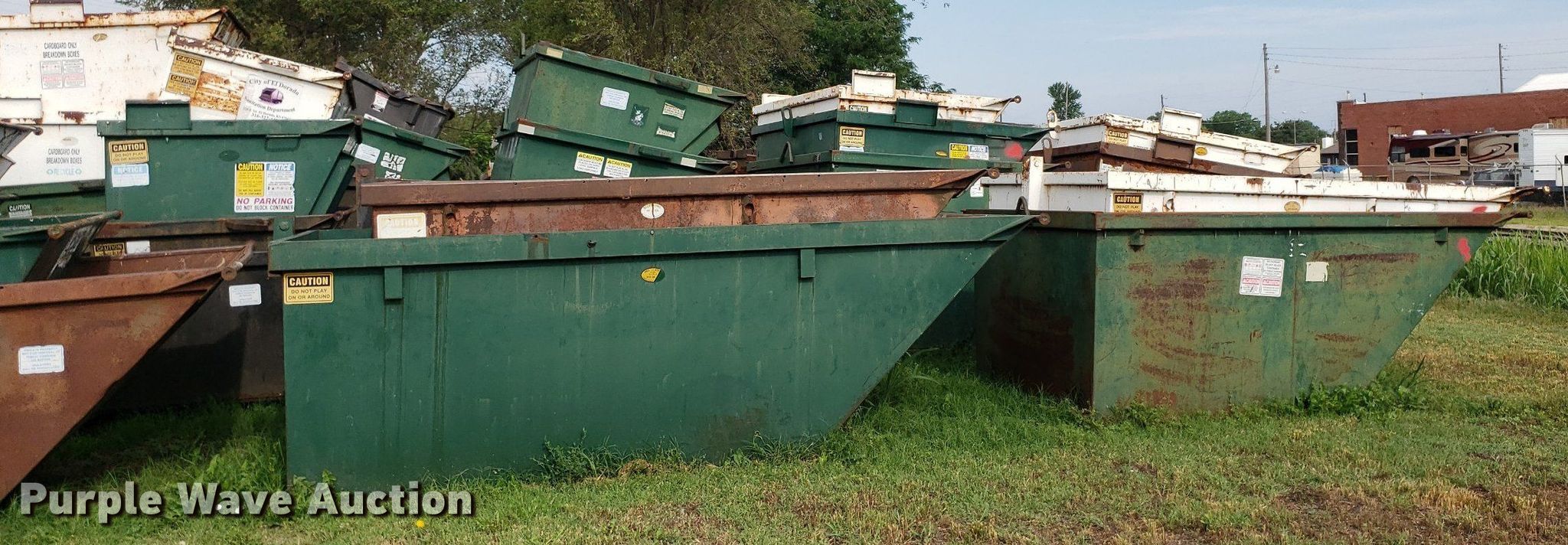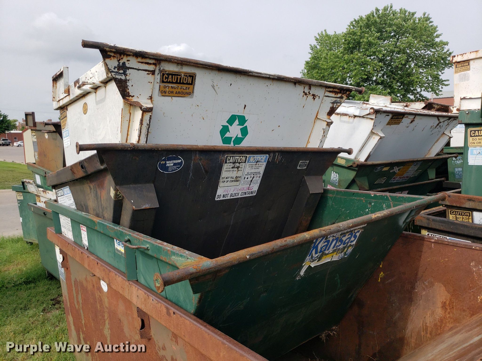 Purple Wave is selling a used Refuse or Compaction Equip. in Kansas. This item is a (8) dumpsters with the following: Bottoms rusted out