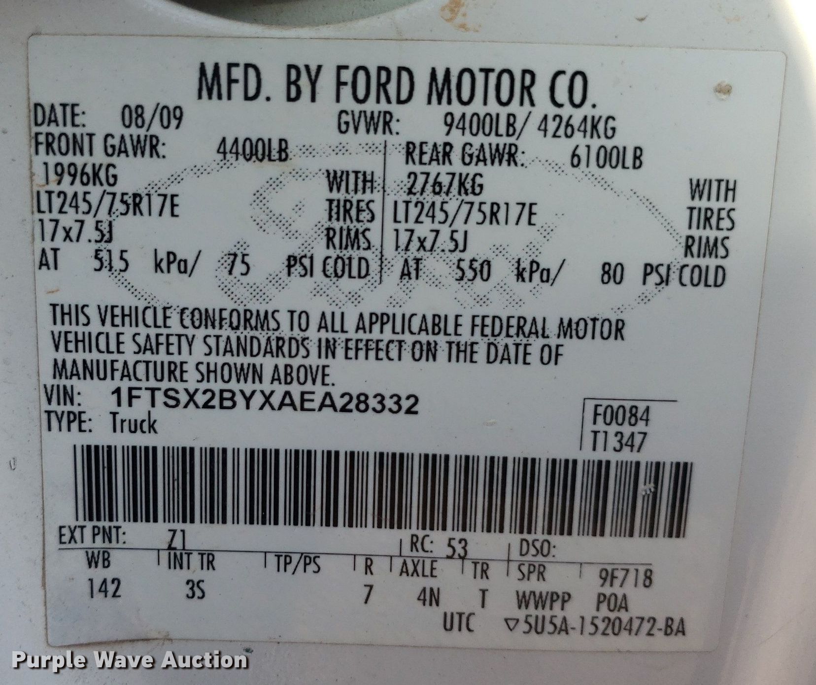 - VIN: 1FTSX2BYXAEA28332