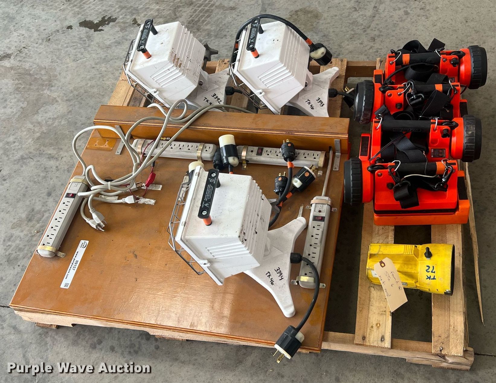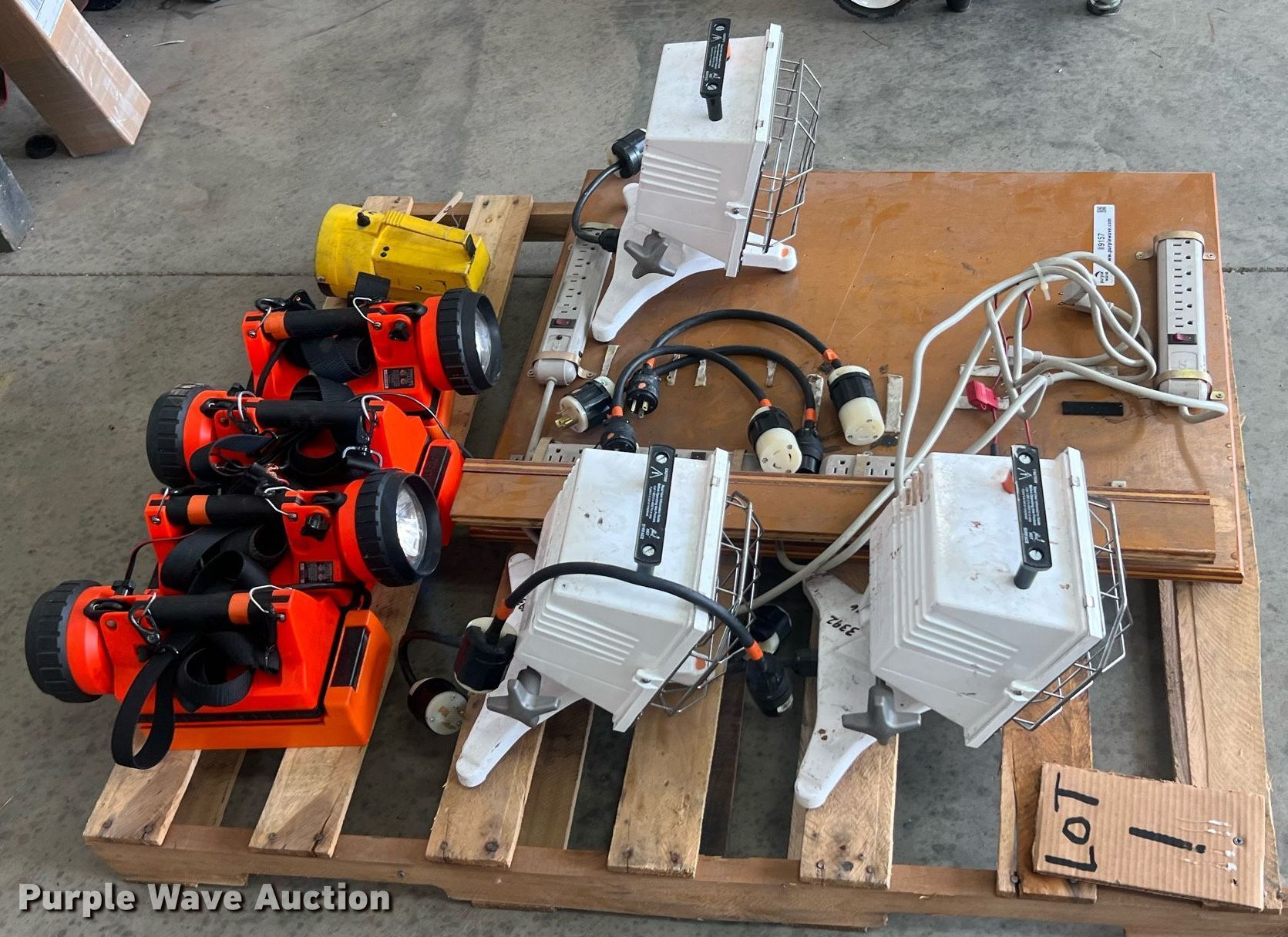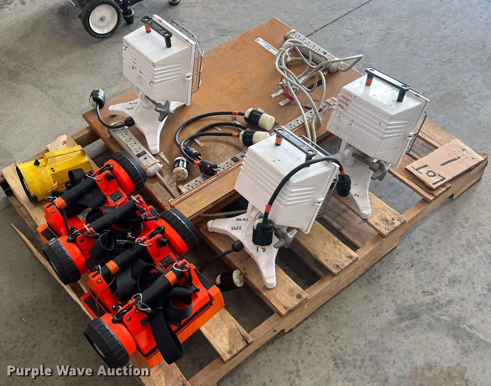 Purple Wave is selling a used Tools in Missouri. This item is a Tools with the following: (3) 500 watt flashlights, (4) Streamlight light boxes, Charger, Extension cords