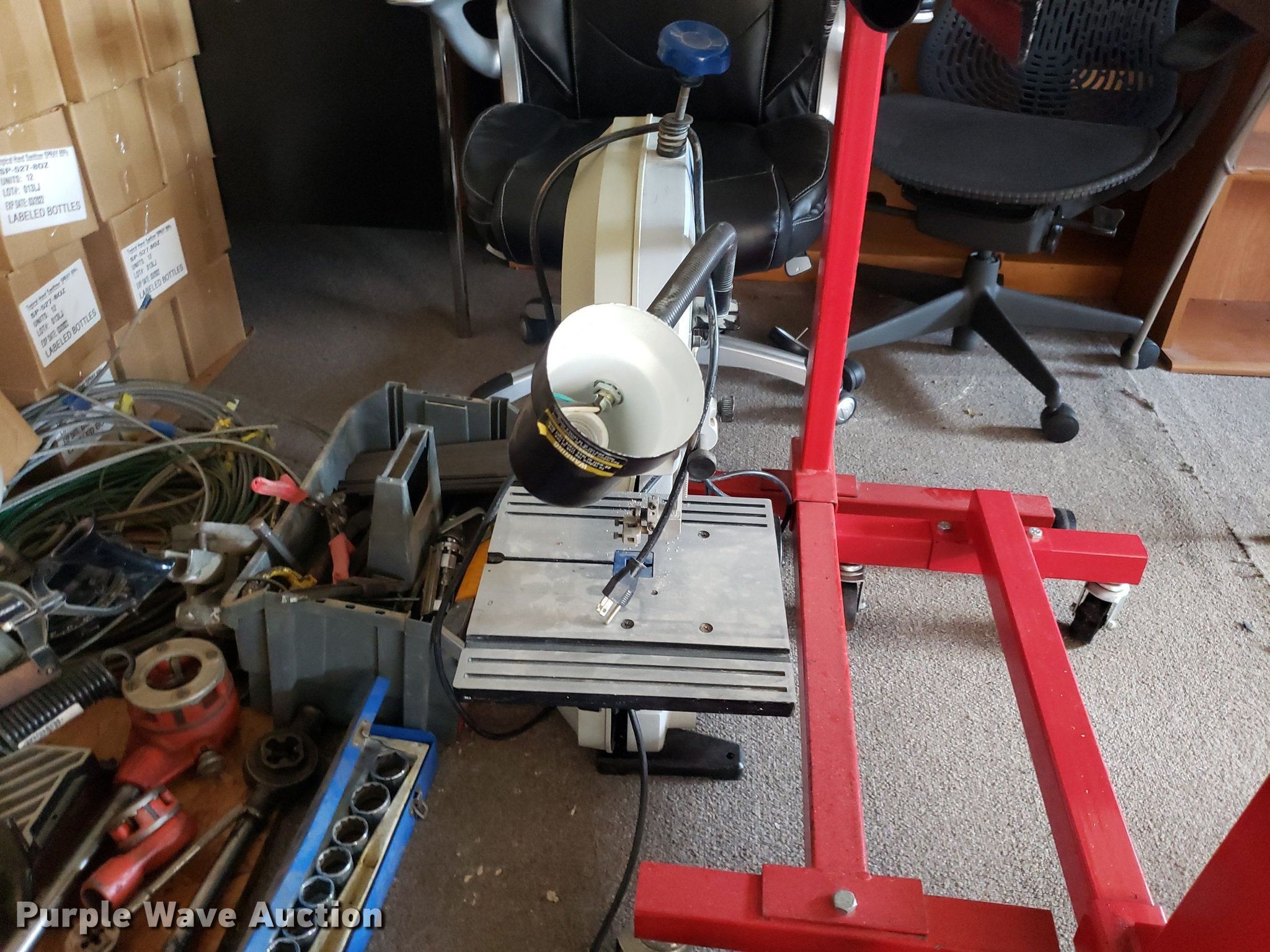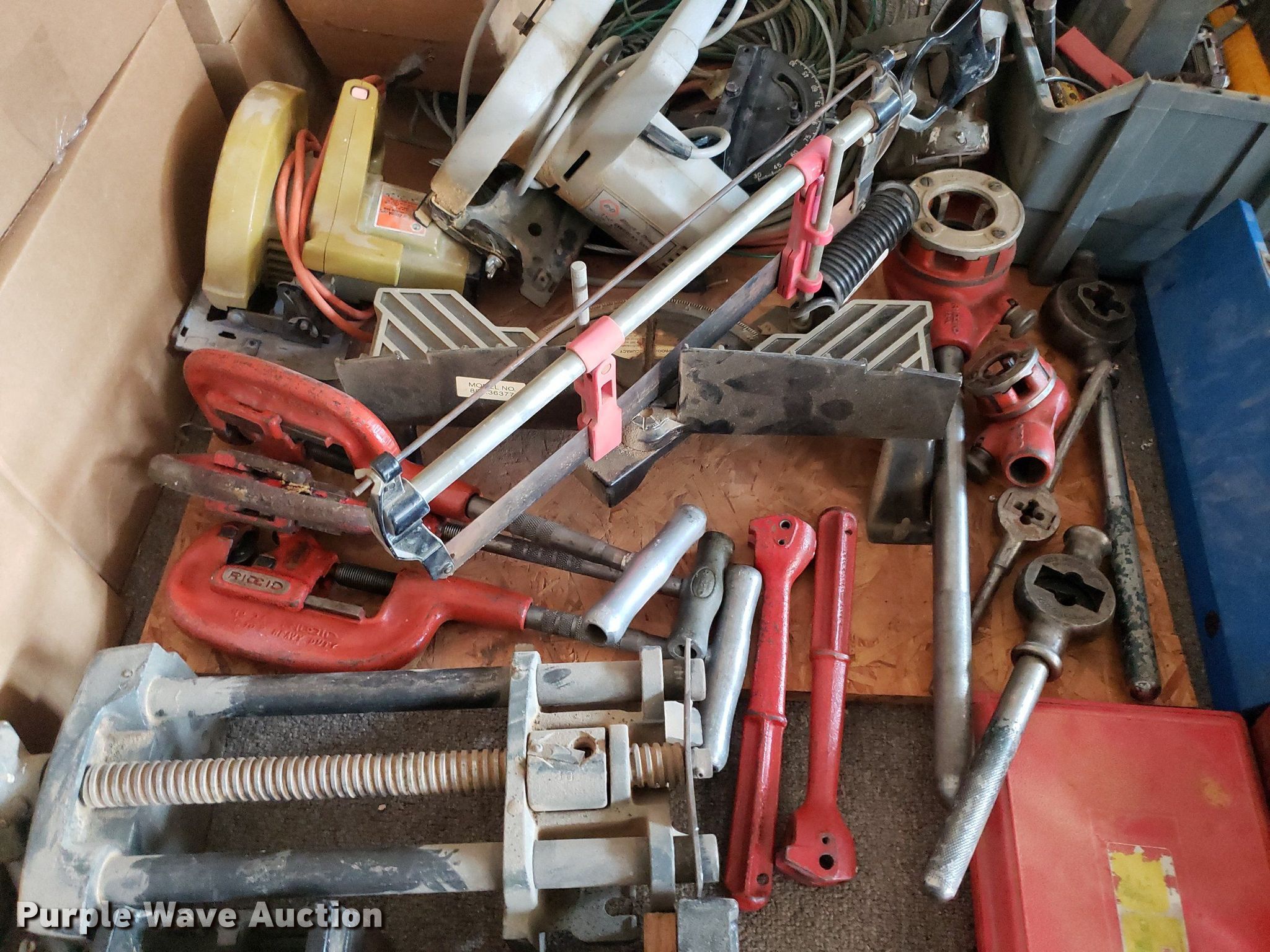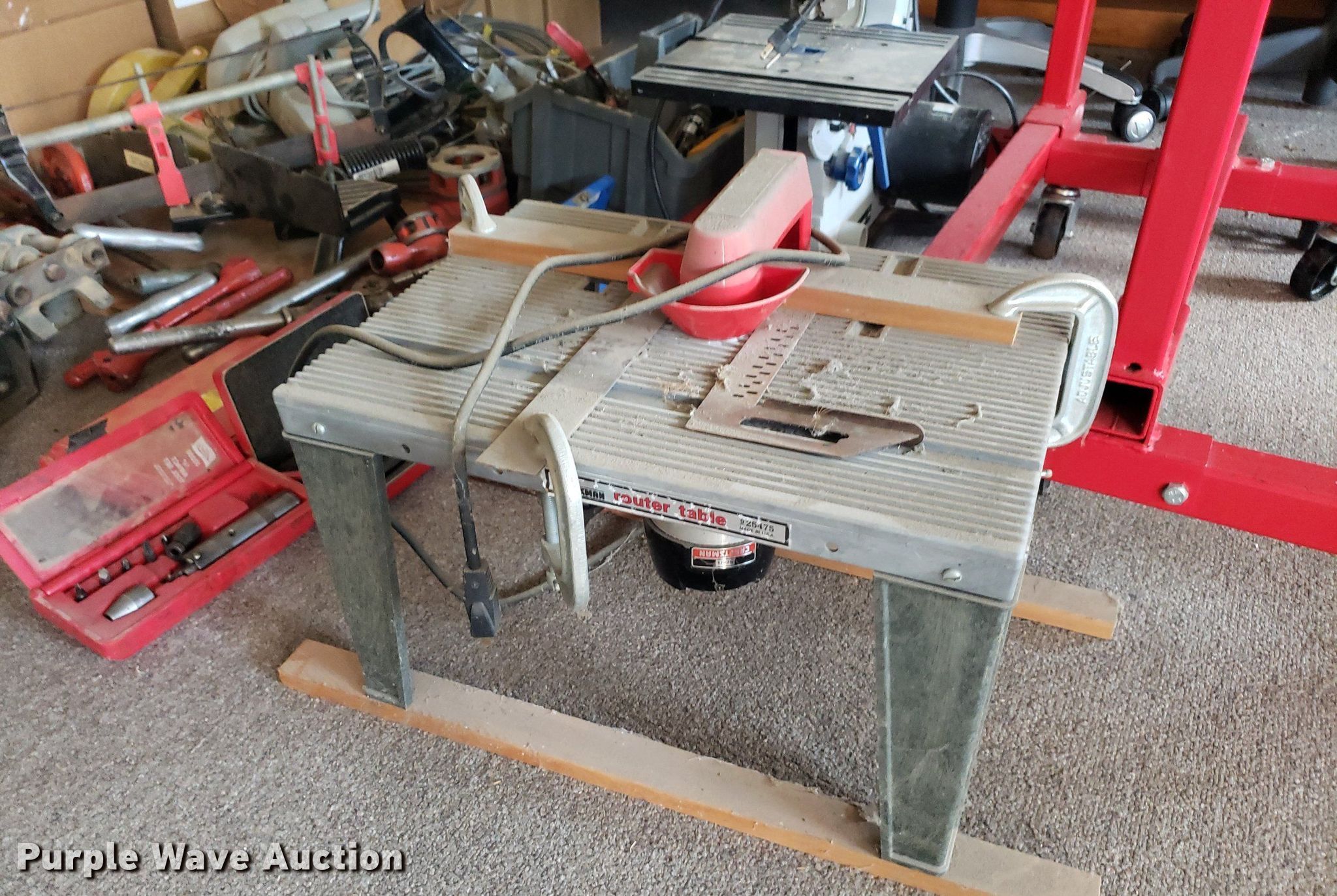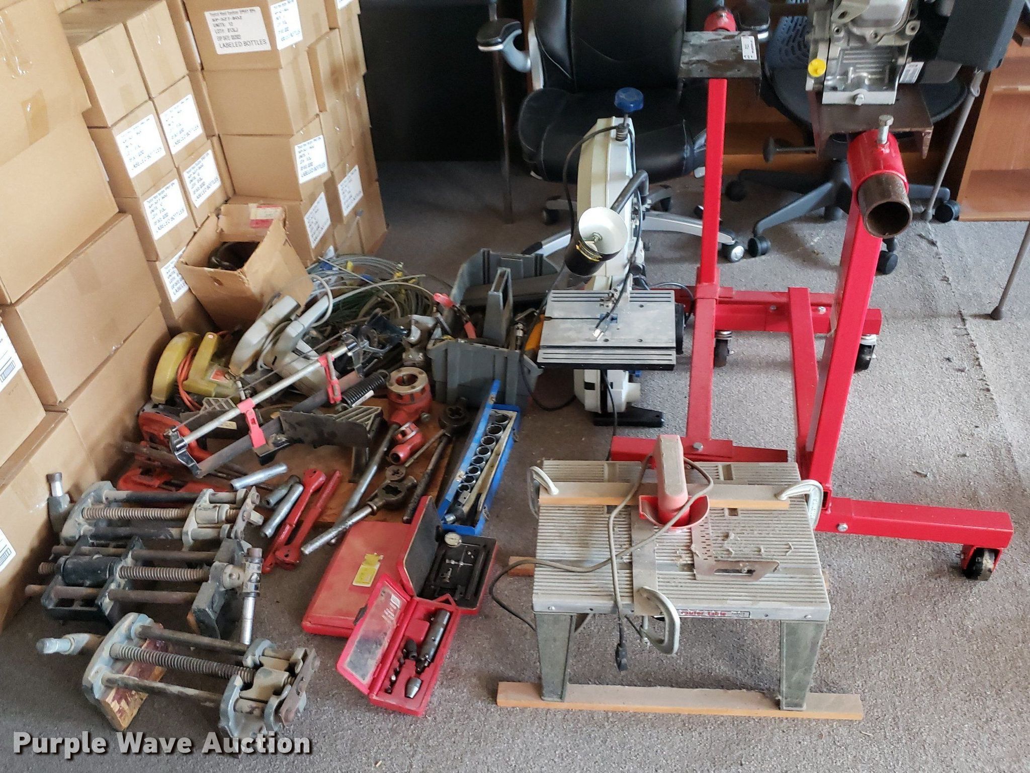 Purple Wave is selling a used Machine Shop Tools and Equip. in Kansas. This item is a Tools with the following: Briggs & Stratton engine, Displacement: 205 cc, (2) Pittsburgh engine stands, (2) saws, Router table, Delta band saw, Clamps, Pipe cutters and more, Unknown operating conditions