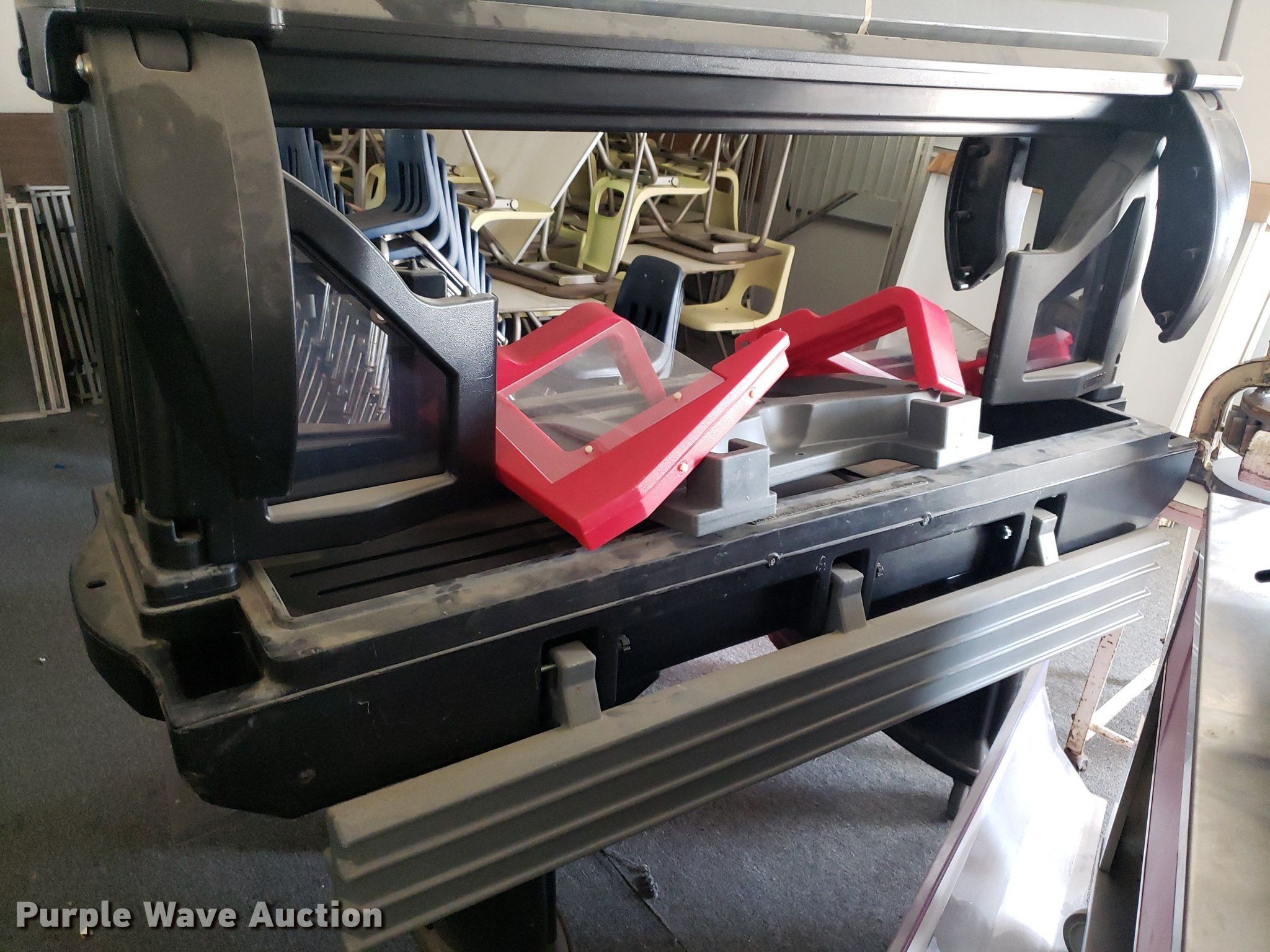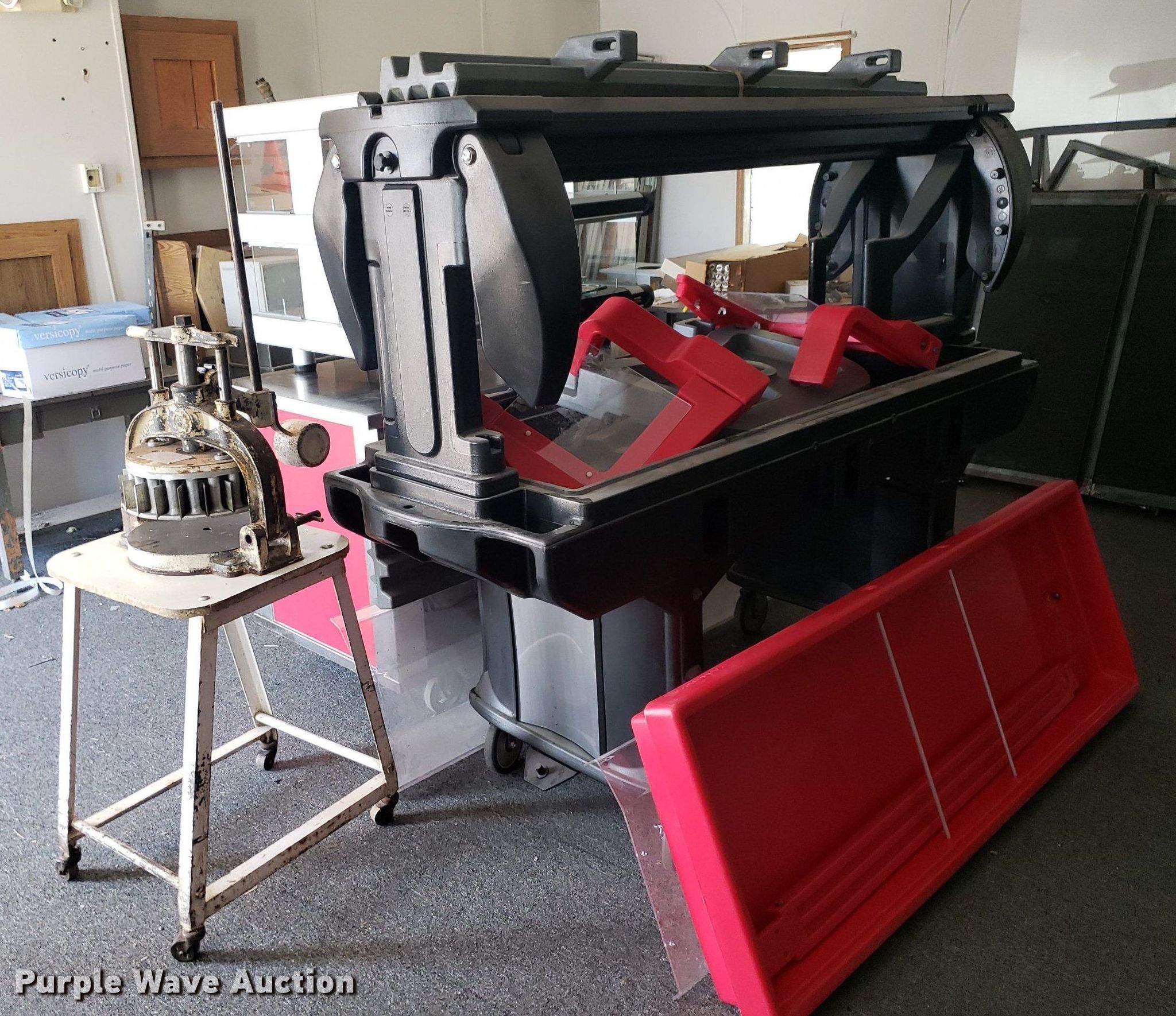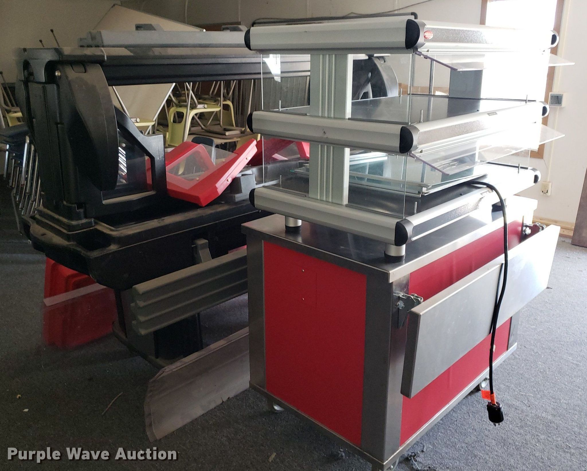 Restaurant equipment. (2) buffet tables, I. Kalfus Co. dough slicer, Piper Products 33ST warming tray Serial: 99859. USD 490 El Dorado Bus Barn. 1518 W 6th Ave. El Dorado, KS 67042