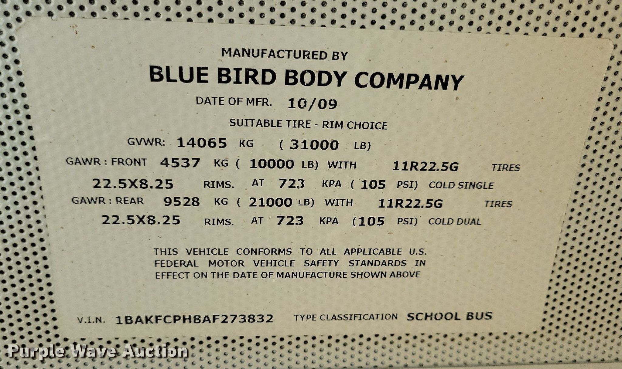 Purple Wave is selling a used Bus in Iowa. This item is a 2010 Blue Bird Vision school bus with the following: Miles: 61,223 on odometer, Hours: 5,573 on meter, VIN: 1BAKFCPH8AF273832