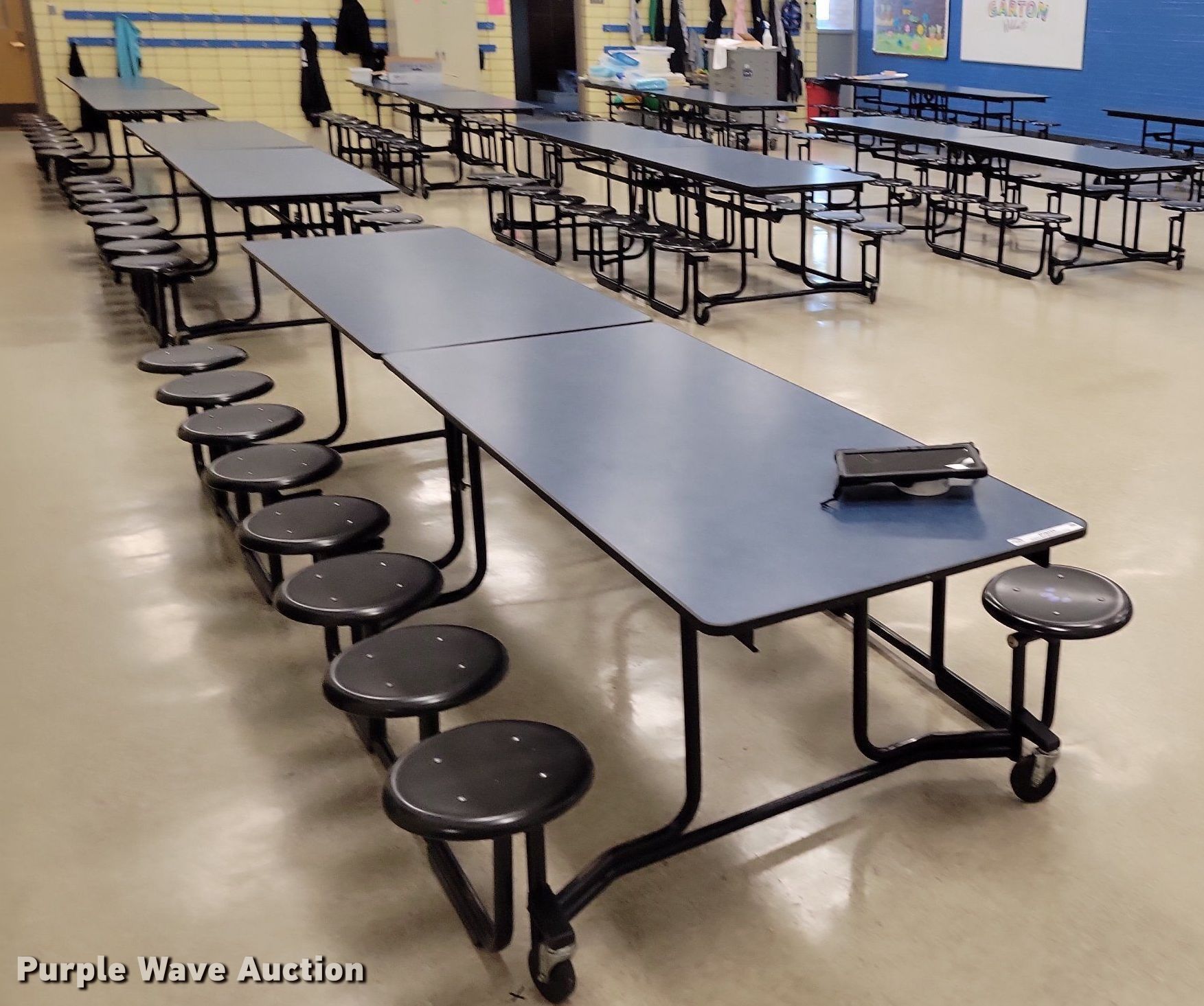 Purple Wave is selling a used Furniture in Iowa. This item is a (10) lunch tables with the following: 11'8" L x 5' W
