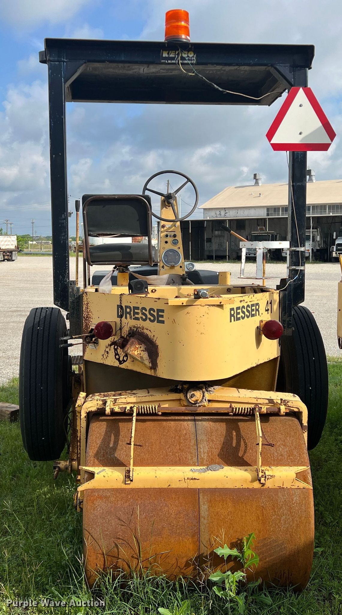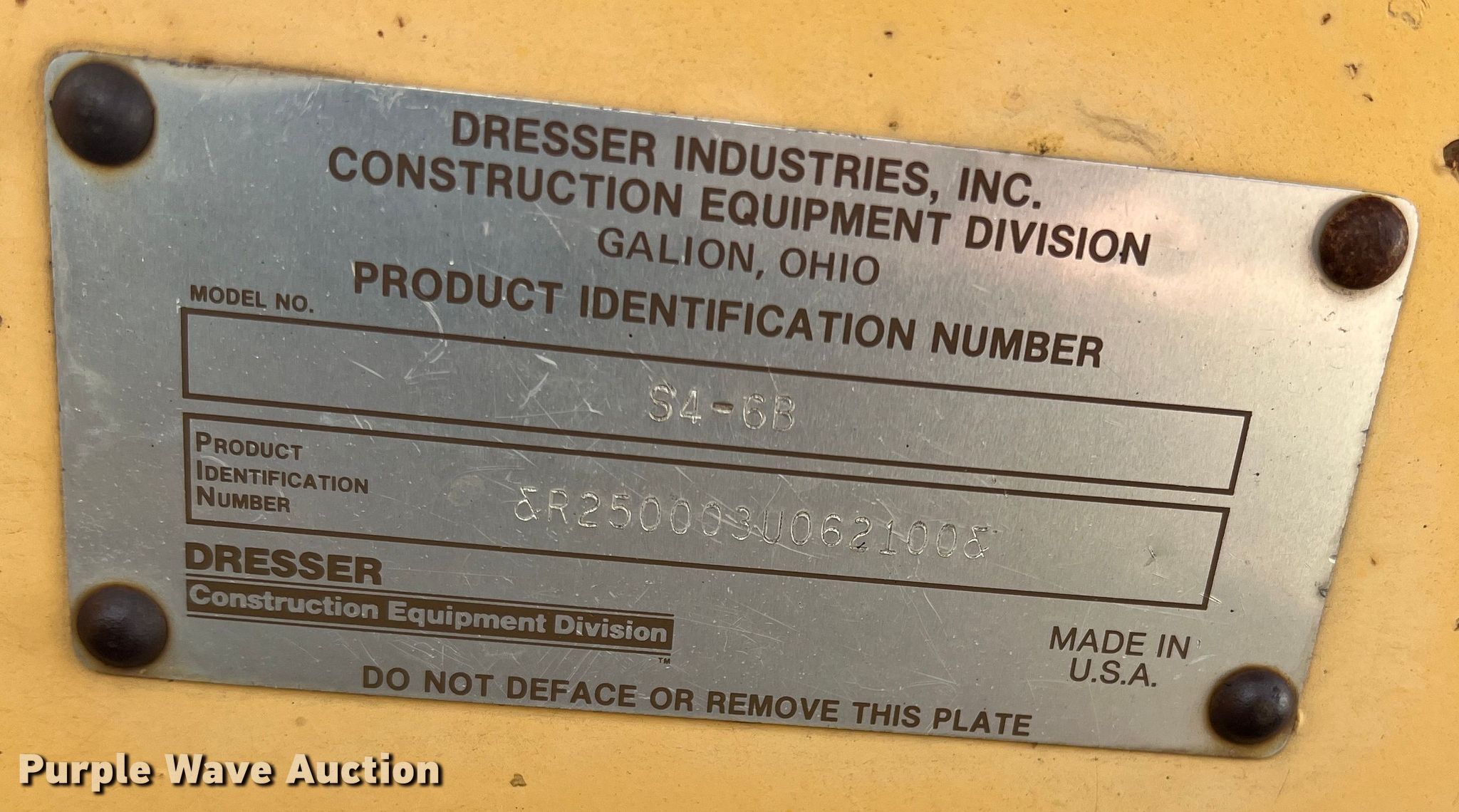Dresser S4-6B double drum roller. Serial: R250003U062100. Engine Cylinders: 4, Fuel type: Diesel. Transmission Hydrostatic. Features Drum: Smooth, Front drum Width: 44", Diameter: 48", Rear drum Width: 44", Diameter: 33", Drum scrapers: Front, Rear. Tires Size: 9.00R20. Notes Unknown operating condition. 1100 Webster Street. Wichita Falls, TX 76306