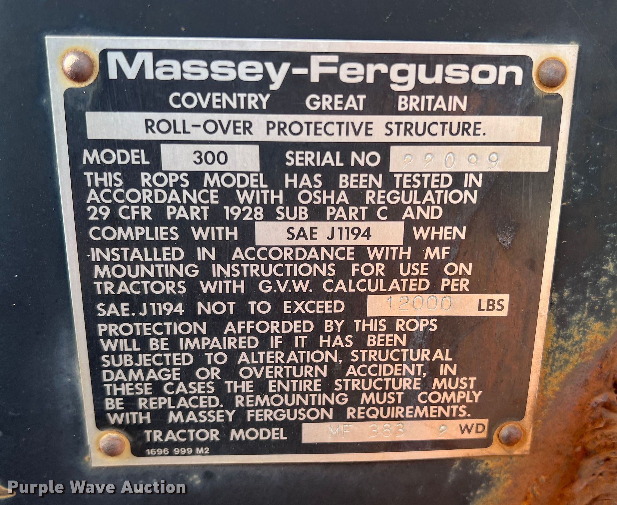 Purple Wave is selling a used Tractor in Texas. This item is a 1993 Massey Ferguson 383 tractor with the following: Hours: 703 on meter, Serial: B15248